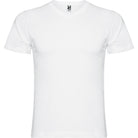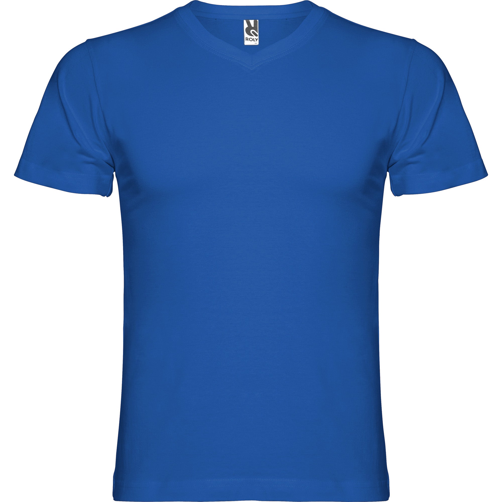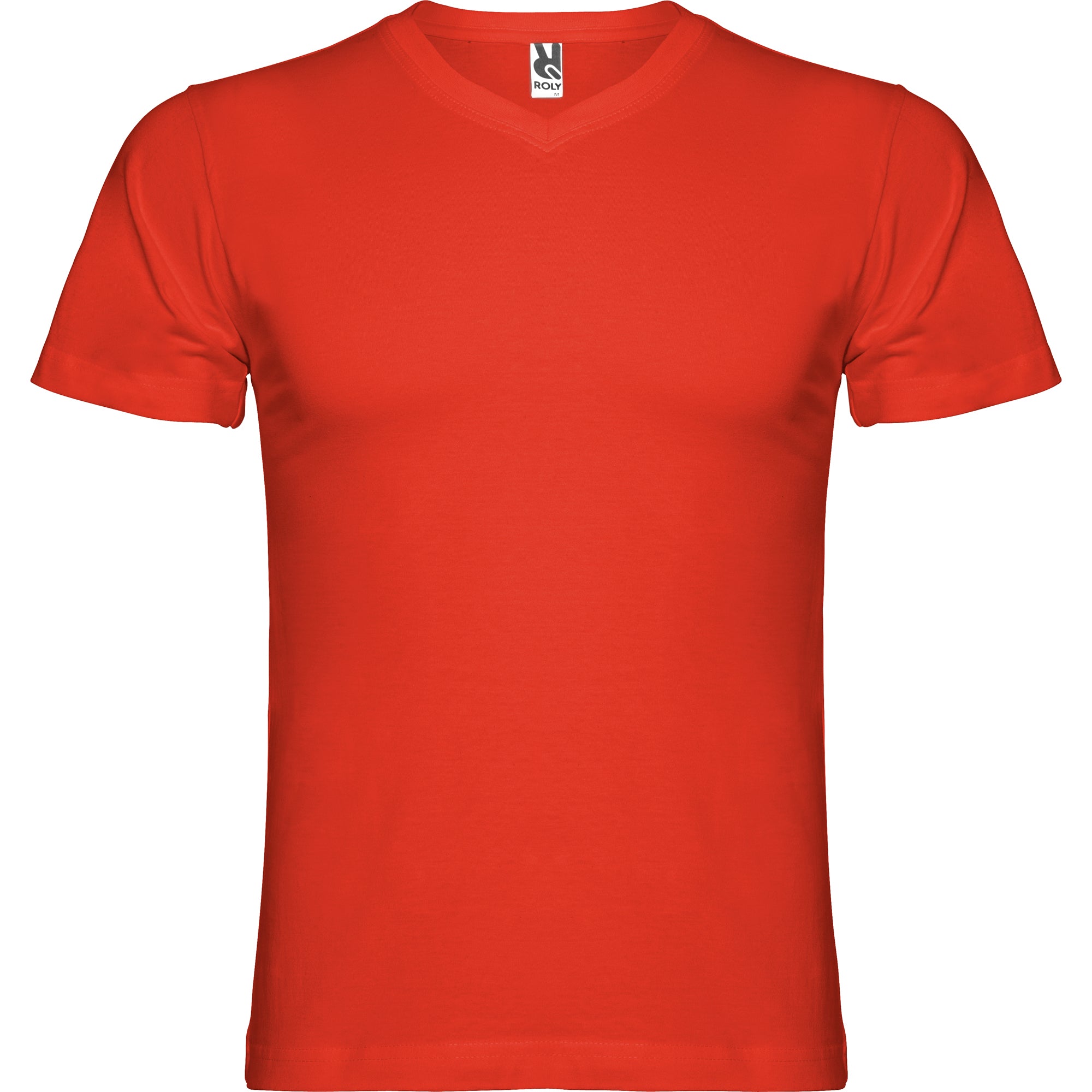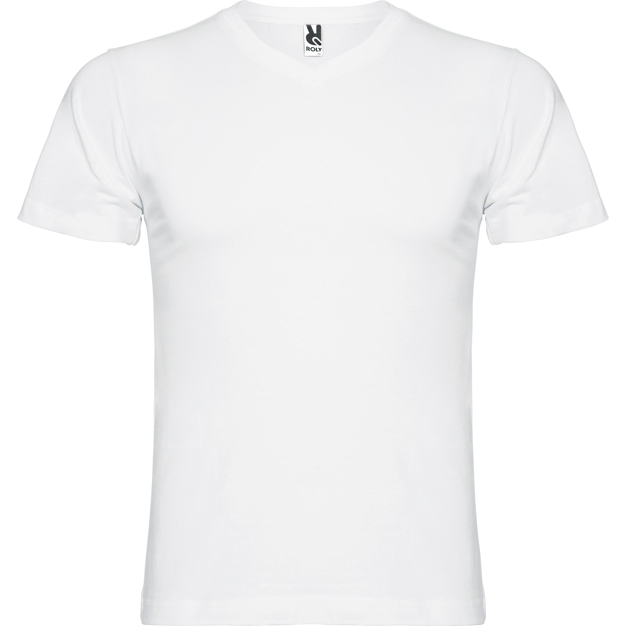 Camiseta de manga corta tubular y escote en pico de 2 capas. Cubrecosturas reforzado en cuello y hombros.