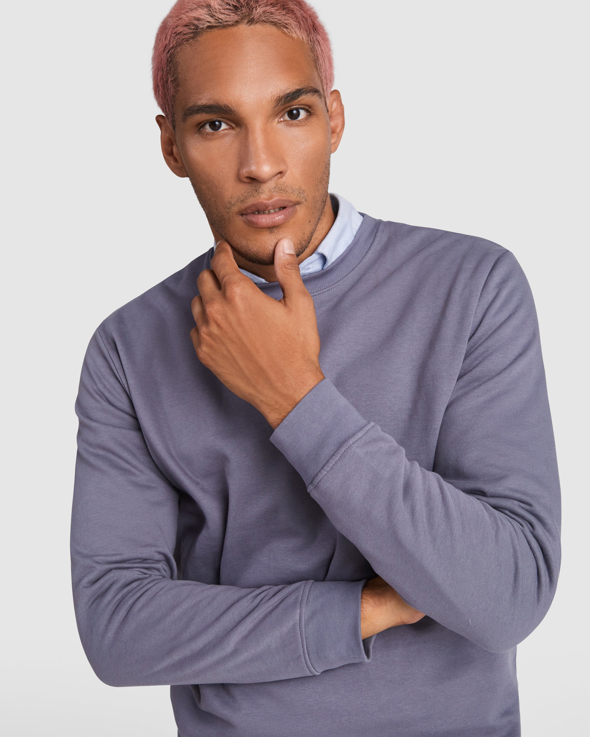 Sudadera de algodón con diseño clásico. Cuellos, puños y bajo con canalé 1x1. Cubrecosturas reforzado en el interior del cuello.