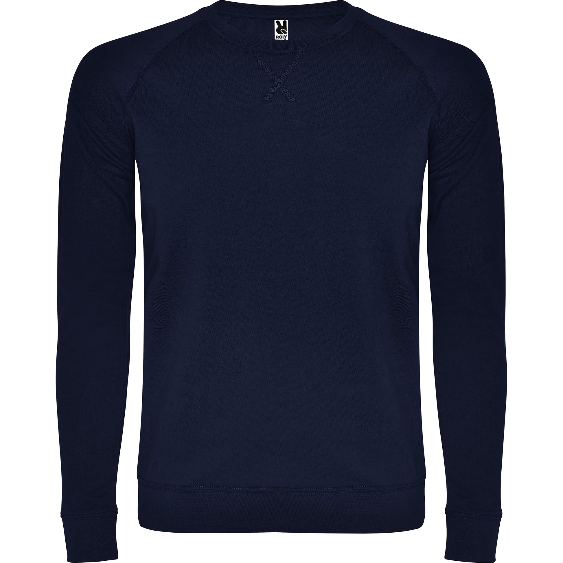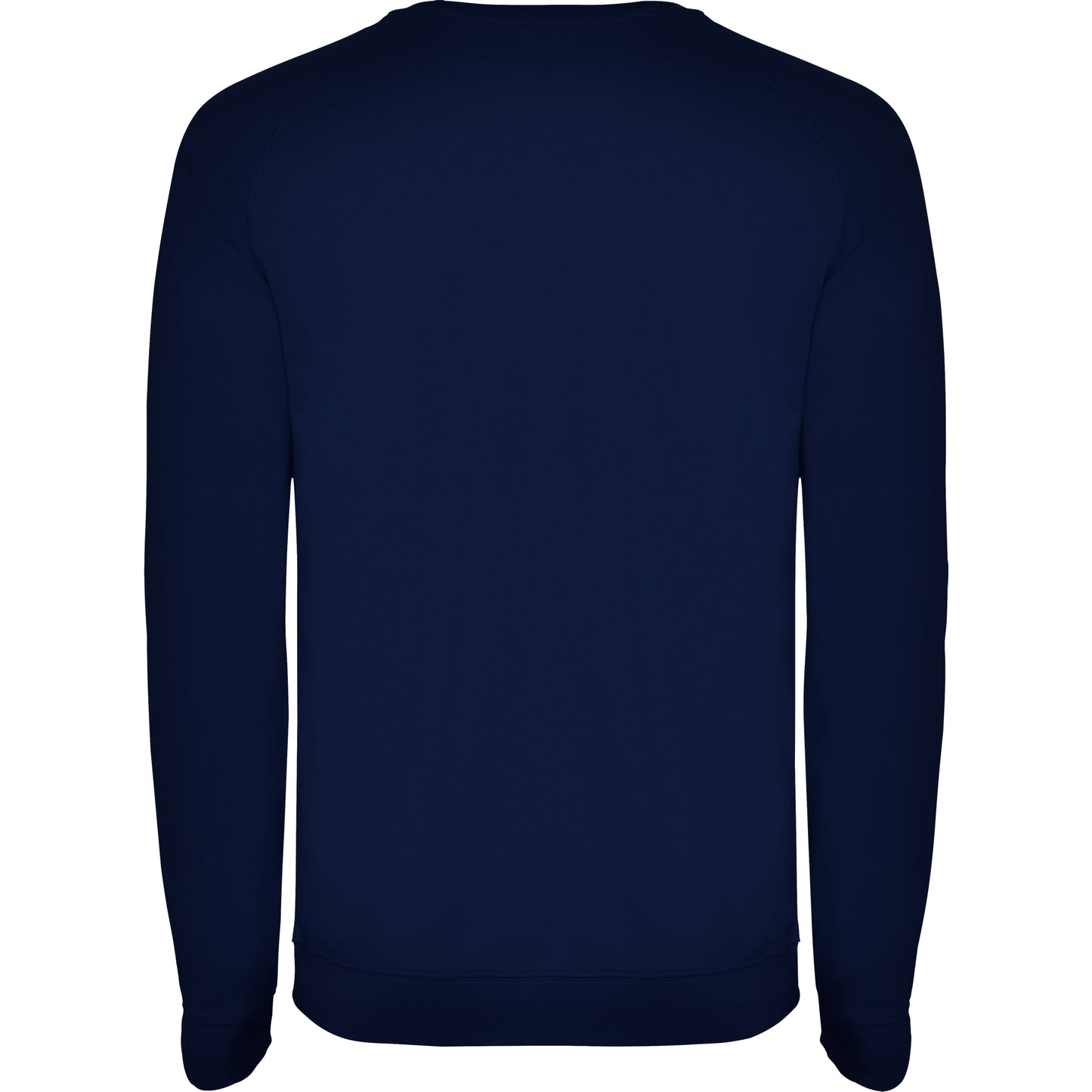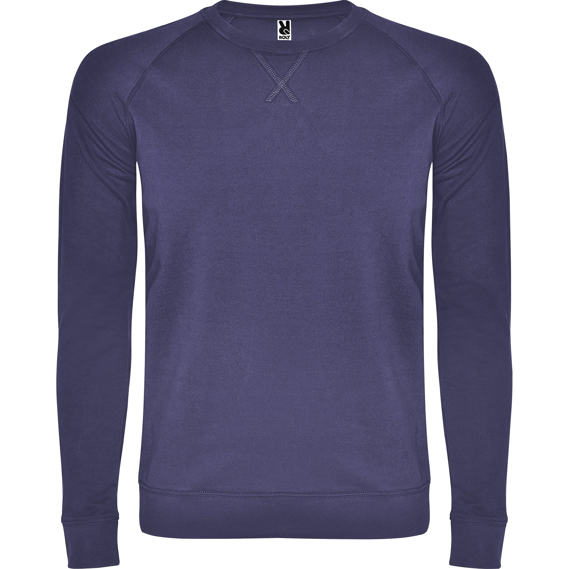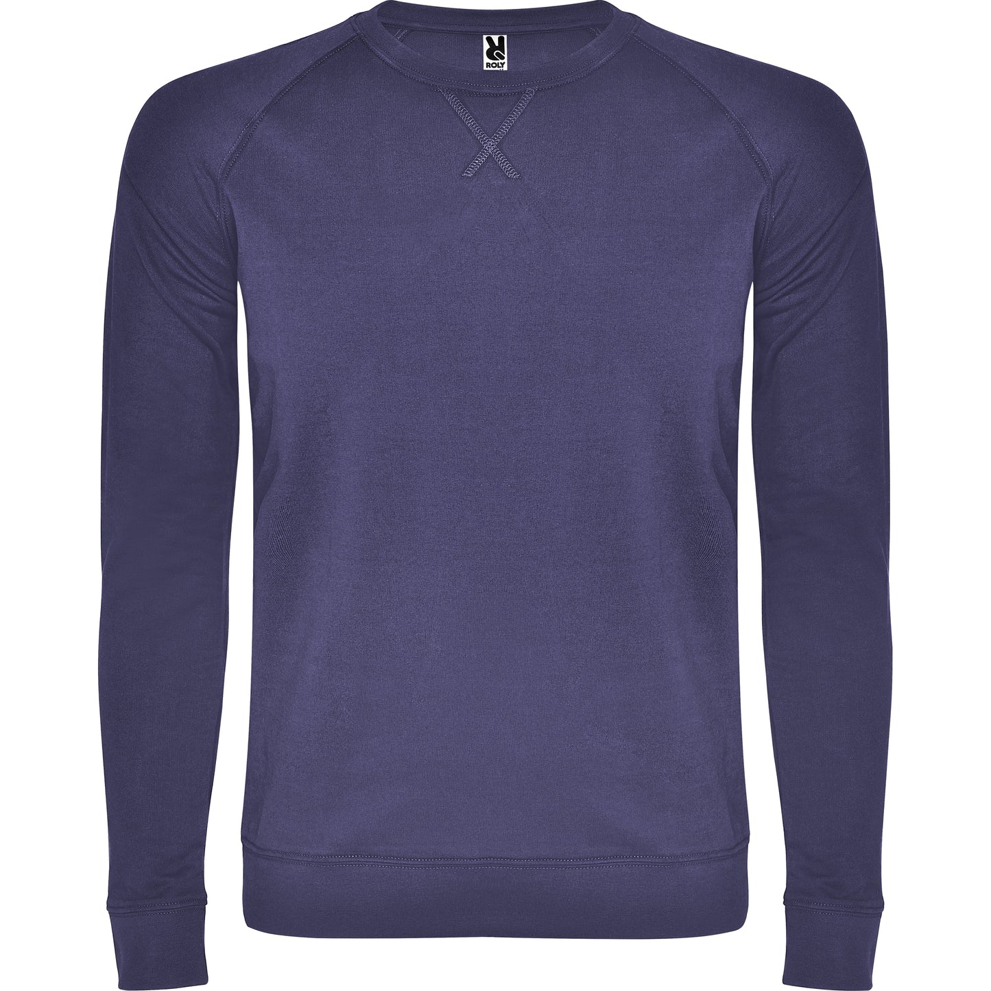 Sudadera de algodón de manga entallada estilo ranglán. Con cuello, puños y cintura, en canalé 1x1. Cuello redondo con adorno de costuras remalladas cruzadas y cubrecosturas de refuerzo en el interior del cuello.