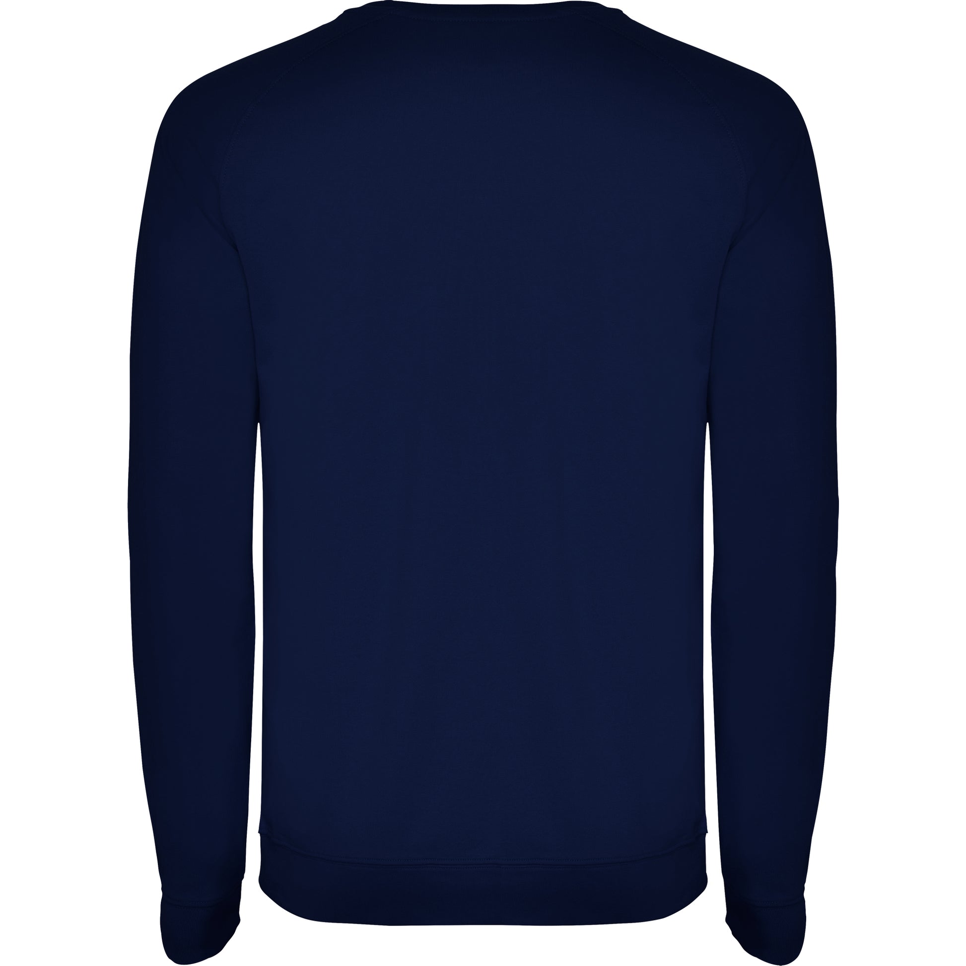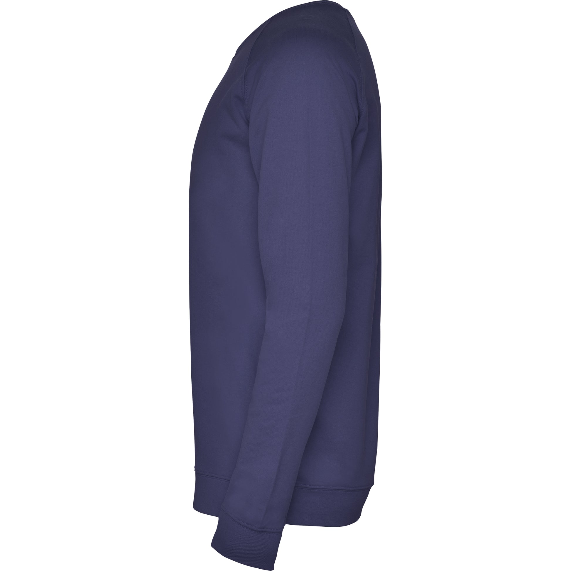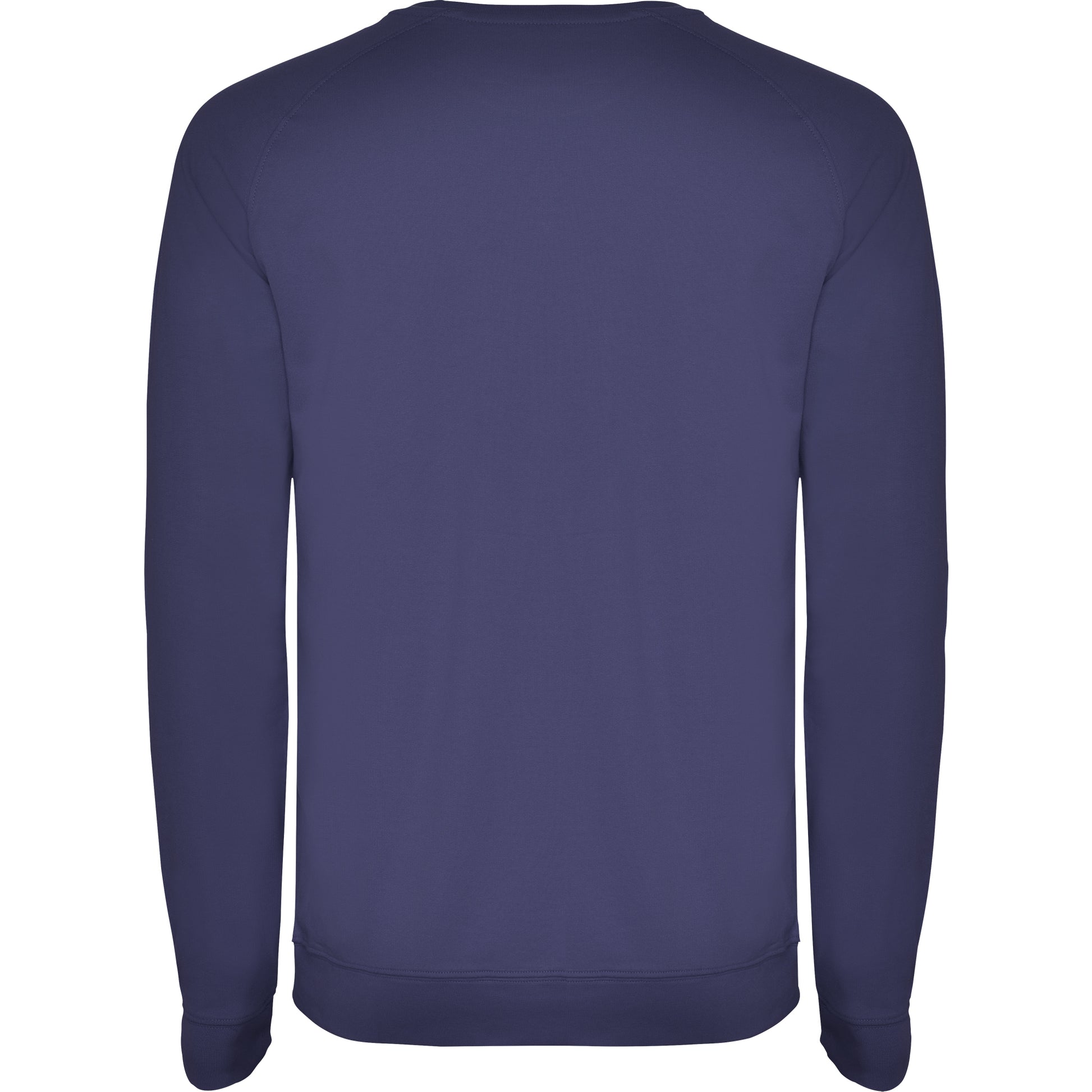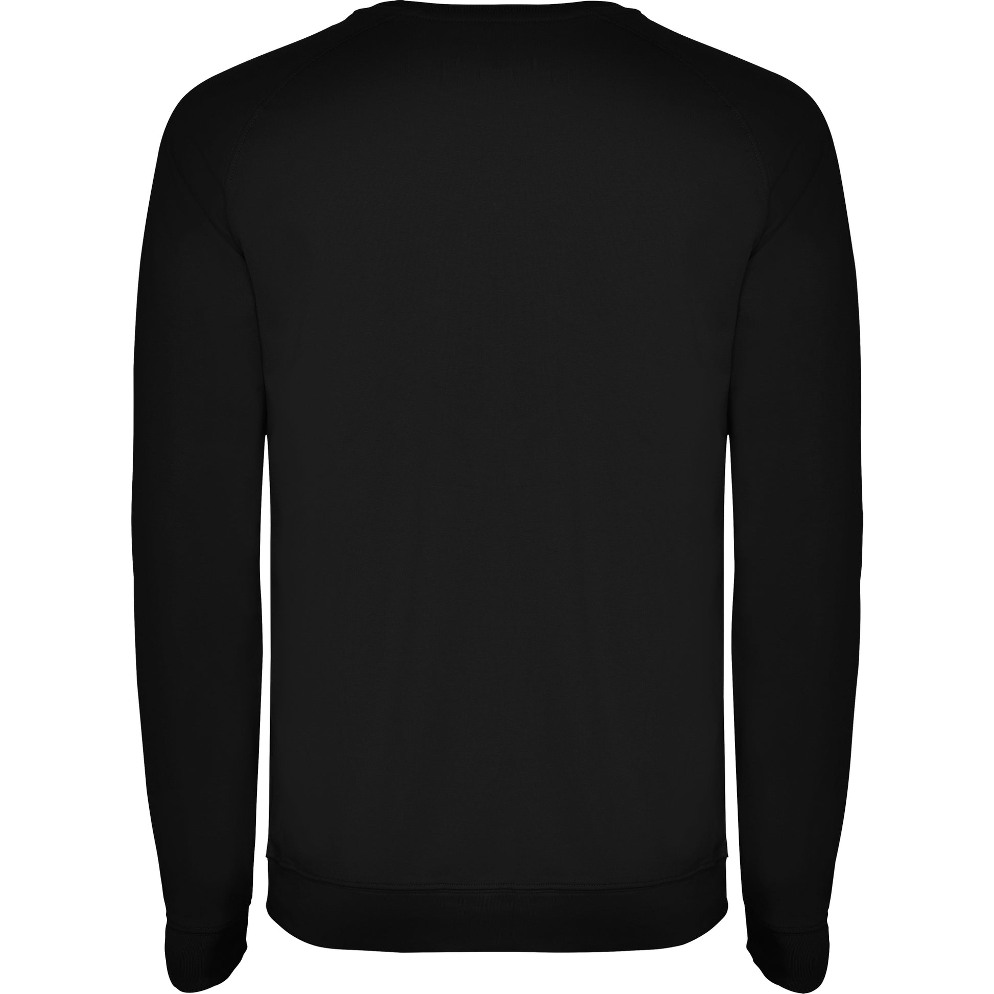 Sudadera de algodón de manga entallada estilo ranglán. Con cuello, puños y cintura, en canalé 1x1. Cuello redondo con adorno de costuras remalladas cruzadas y cubrecosturas de refuerzo en el interior del cuello.