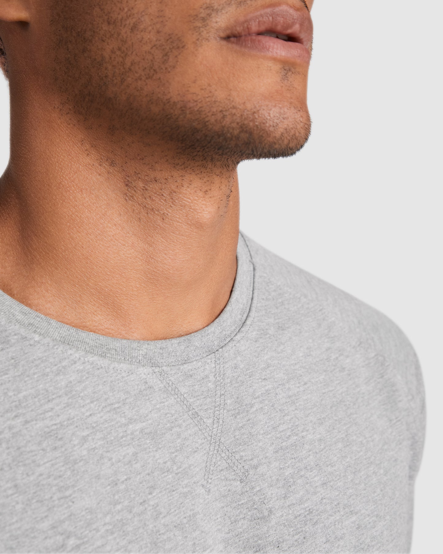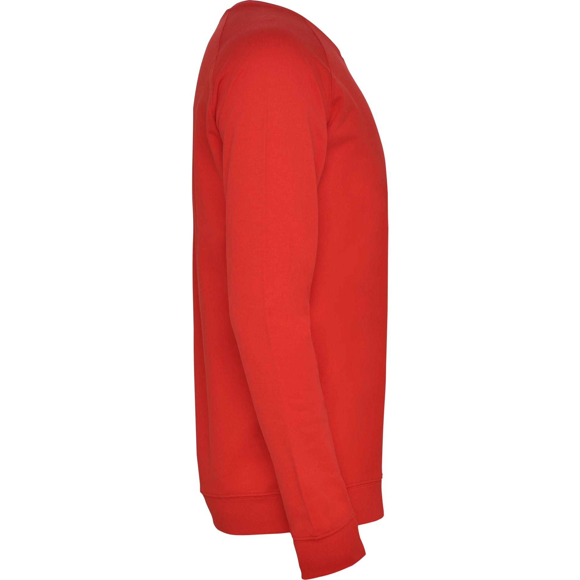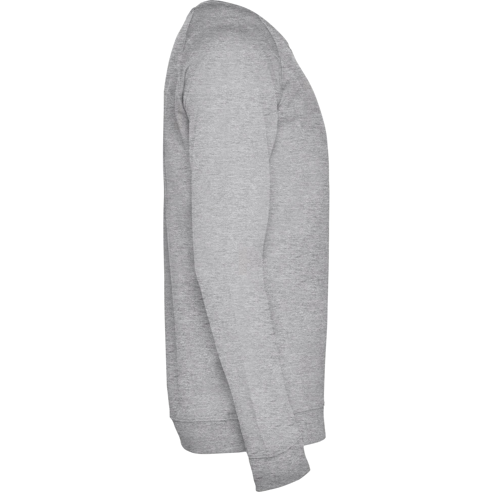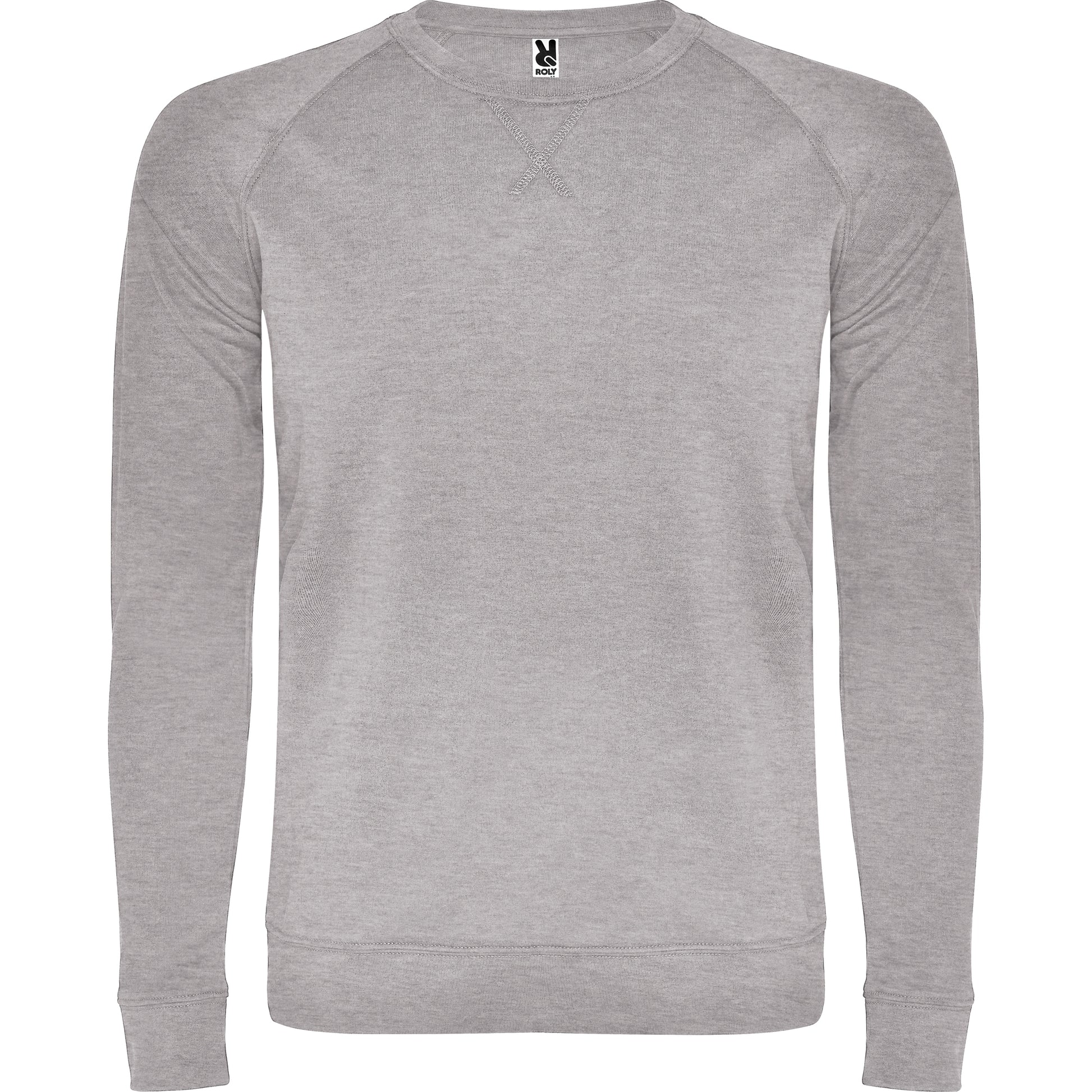 Sudadera de algodón de manga entallada estilo ranglán. Con cuello, puños y cintura, en canalé 1x1. Cuello redondo con adorno de costuras remalladas cruzadas y cubrecosturas de refuerzo en el interior del cuello.