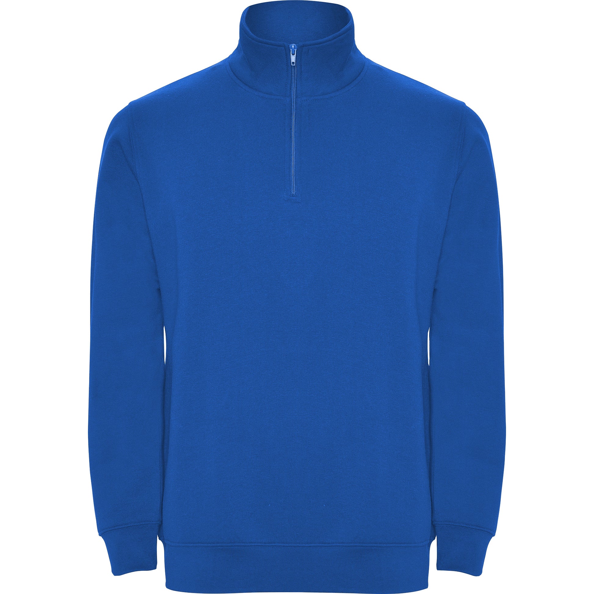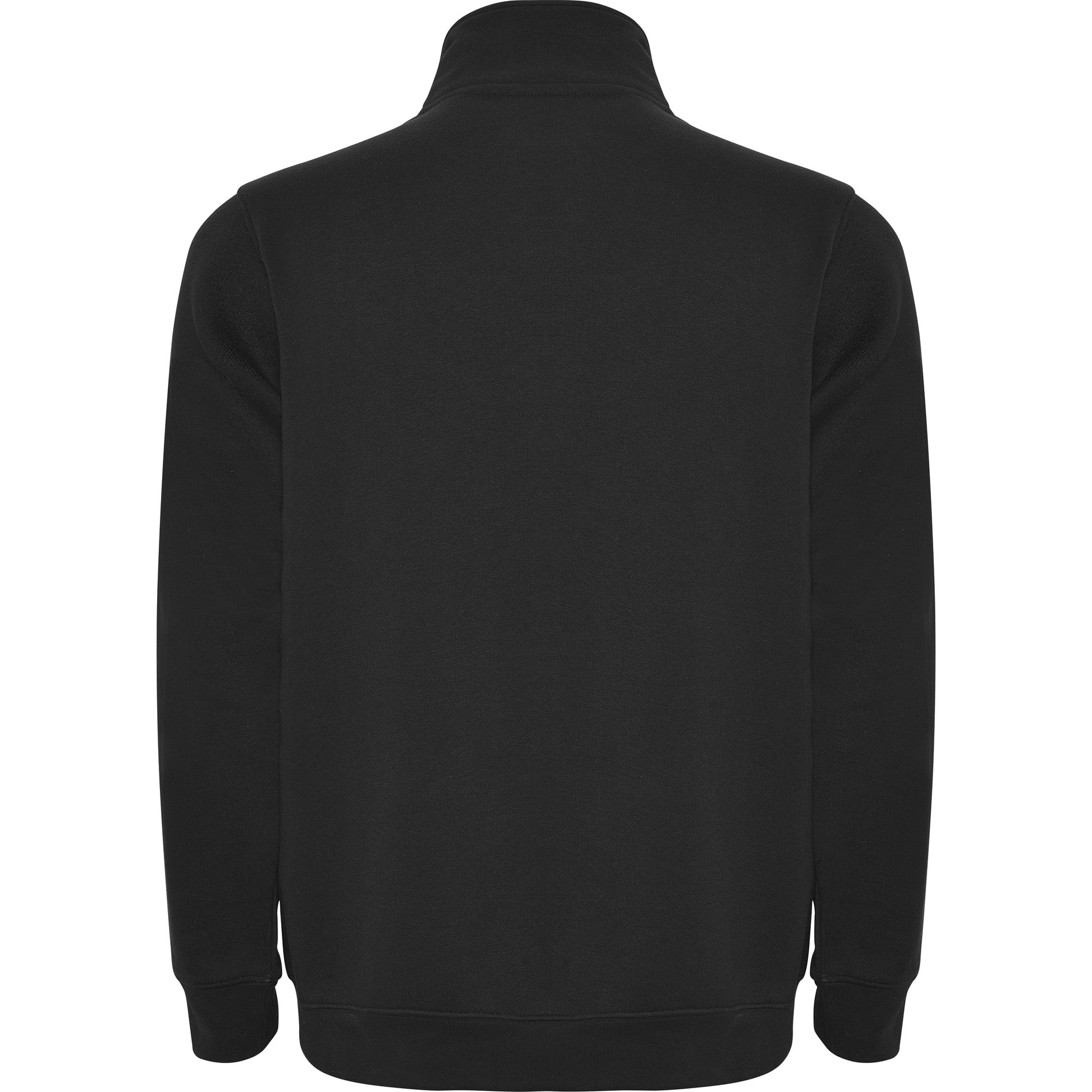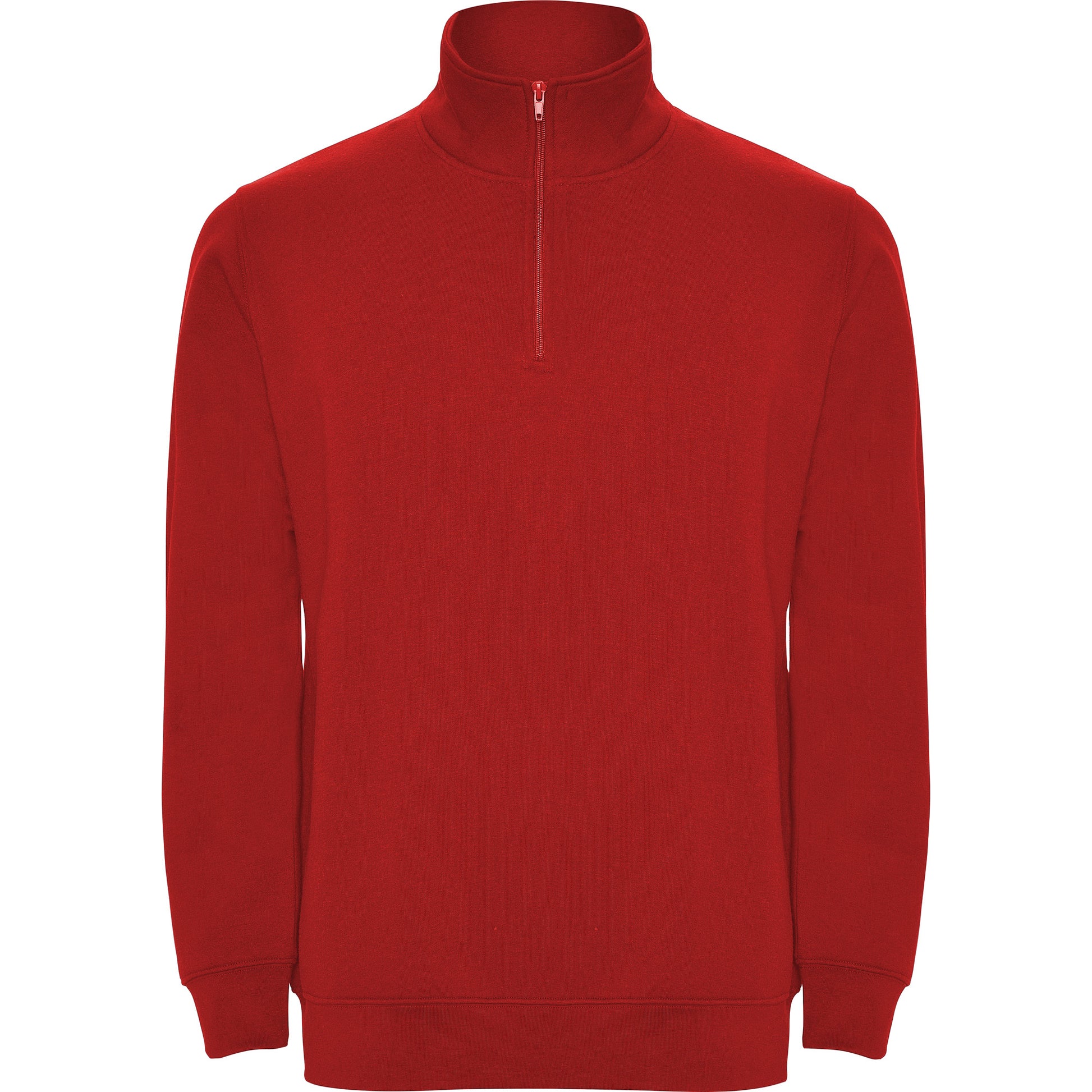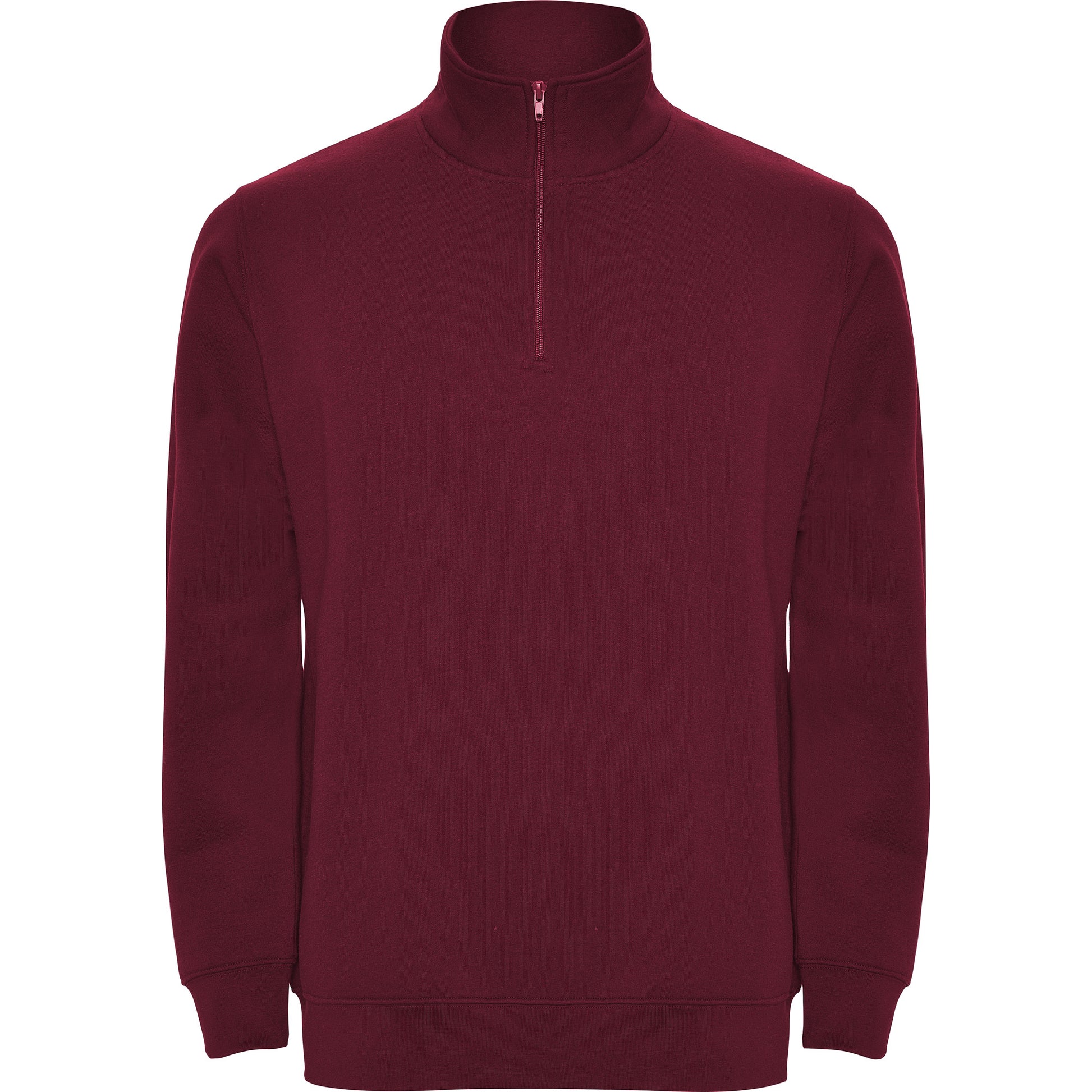 Sudadera con media cremallera a tono y cuello alto. Vista interior del cuello en el mismo tono. Cubrecosturas reforzado en el interior del cuello. Punto canalé 1x1 en puños y cintura.
