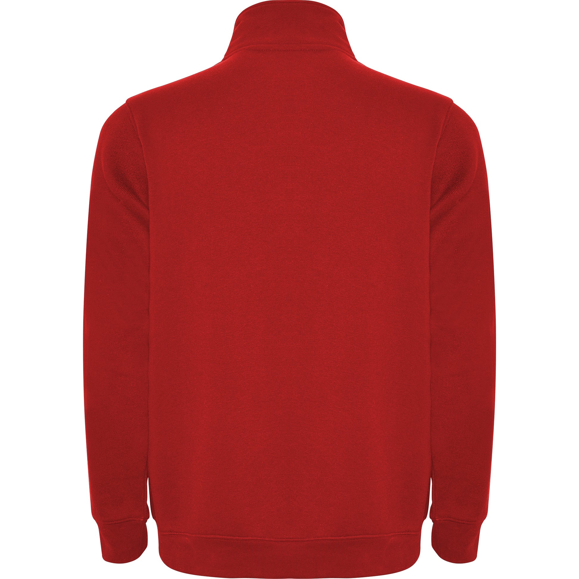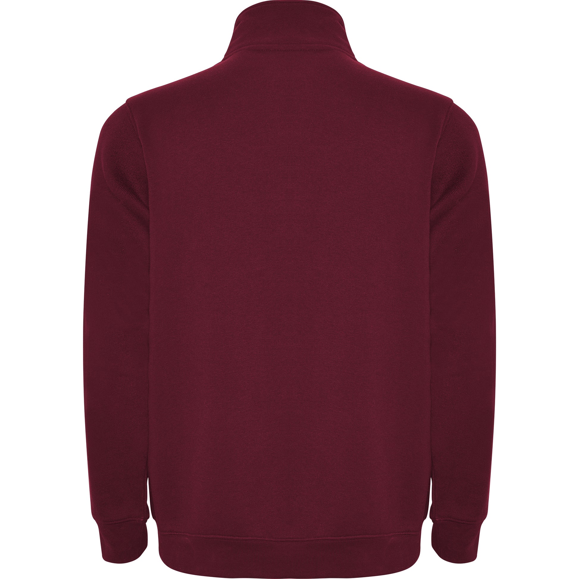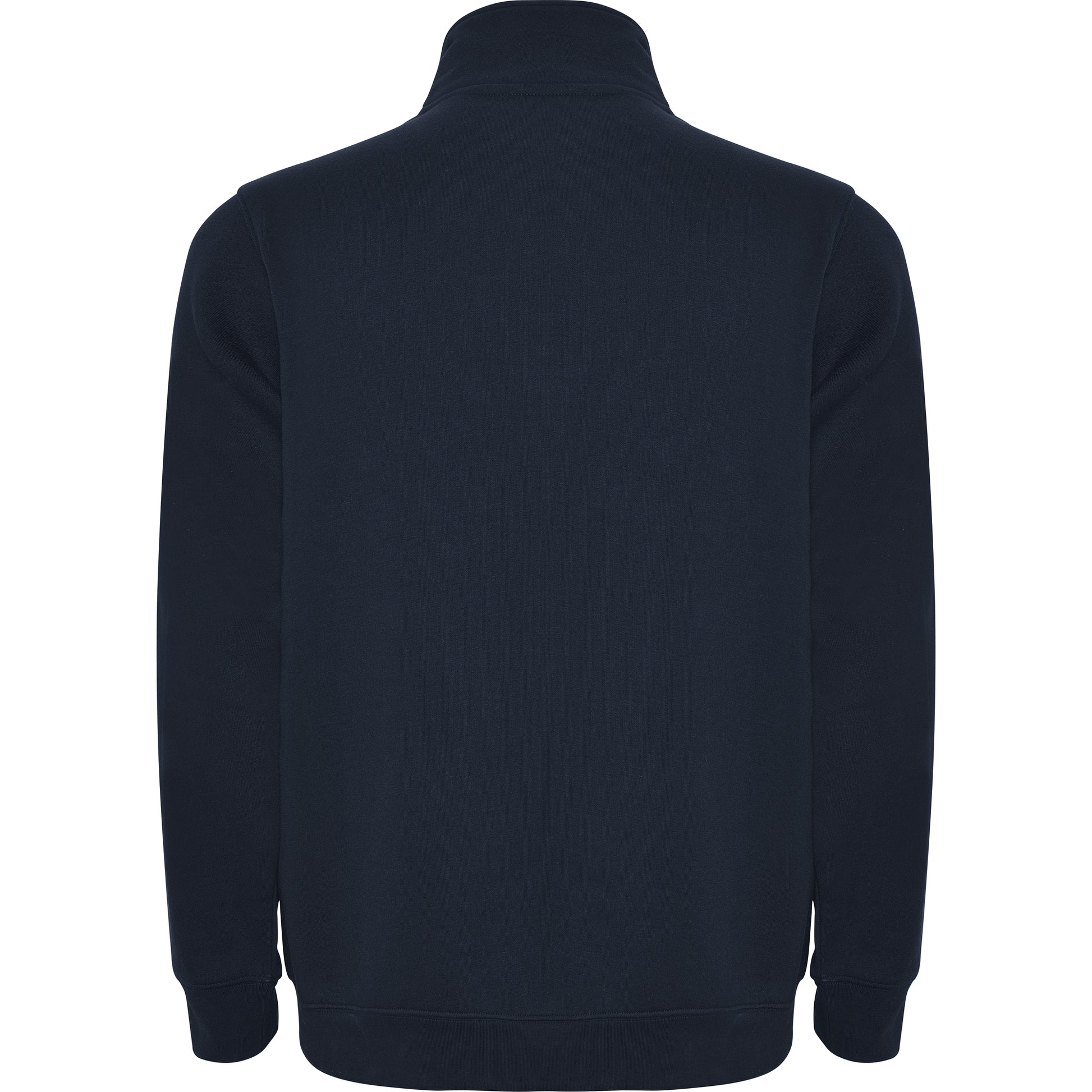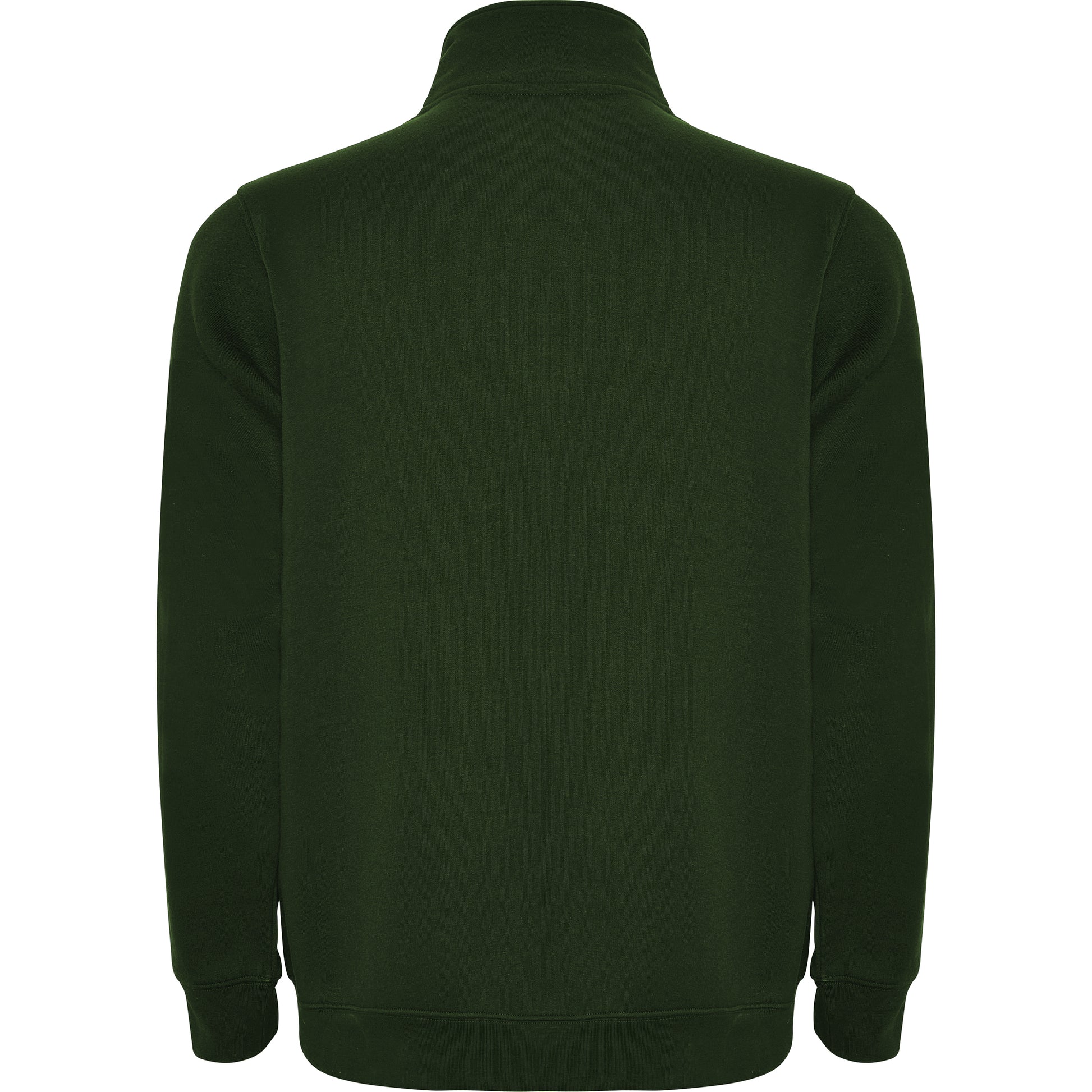 Sudadera con media cremallera a tono y cuello alto. Vista interior del cuello en el mismo tono. Cubrecosturas reforzado en el interior del cuello. Punto canalé 1x1 en puños y cintura.