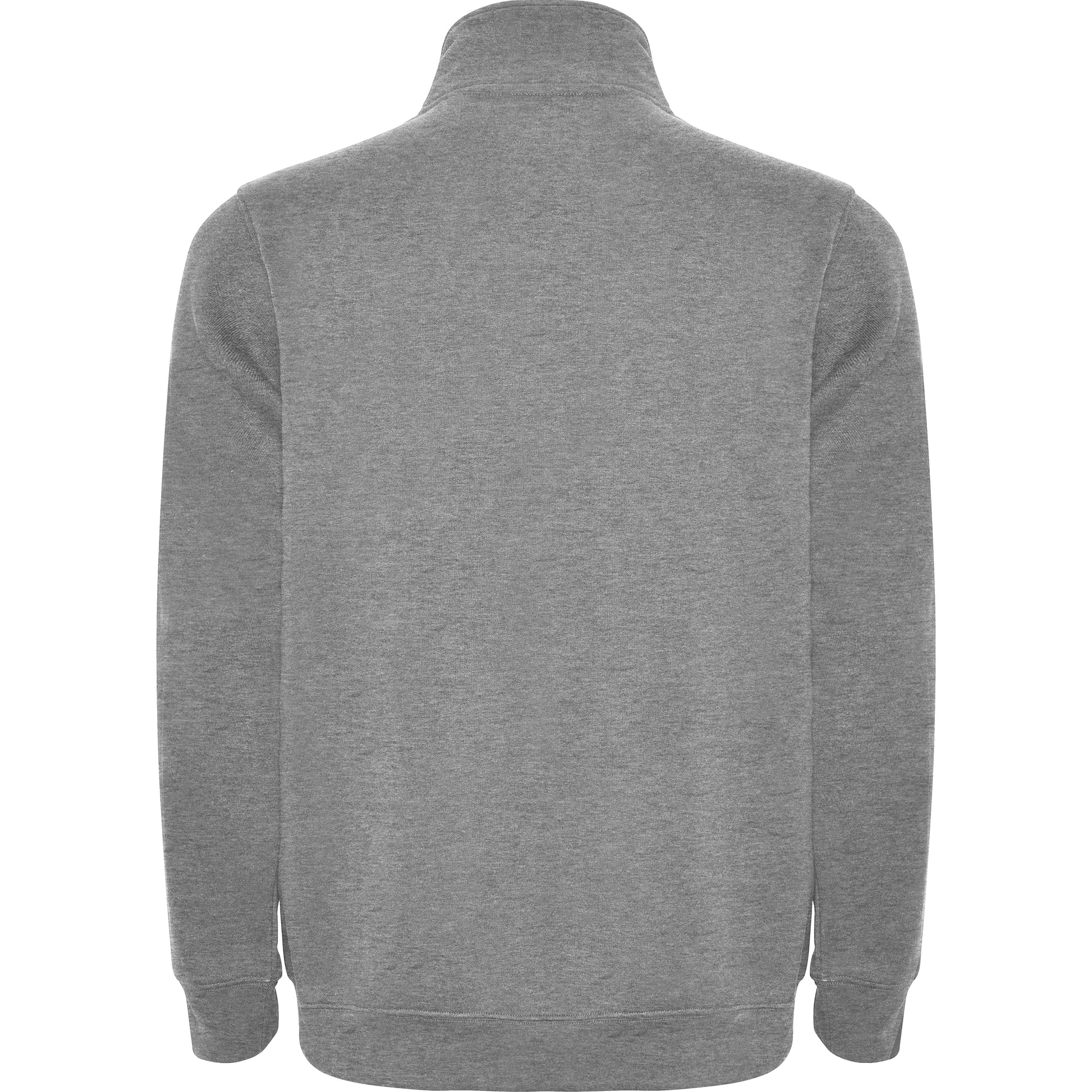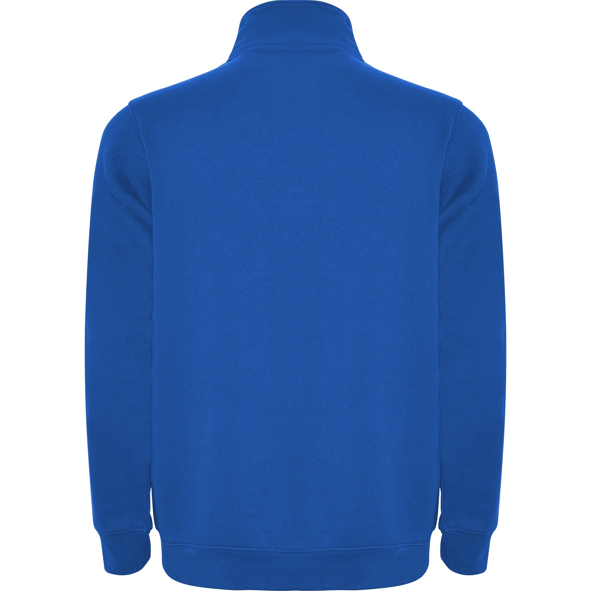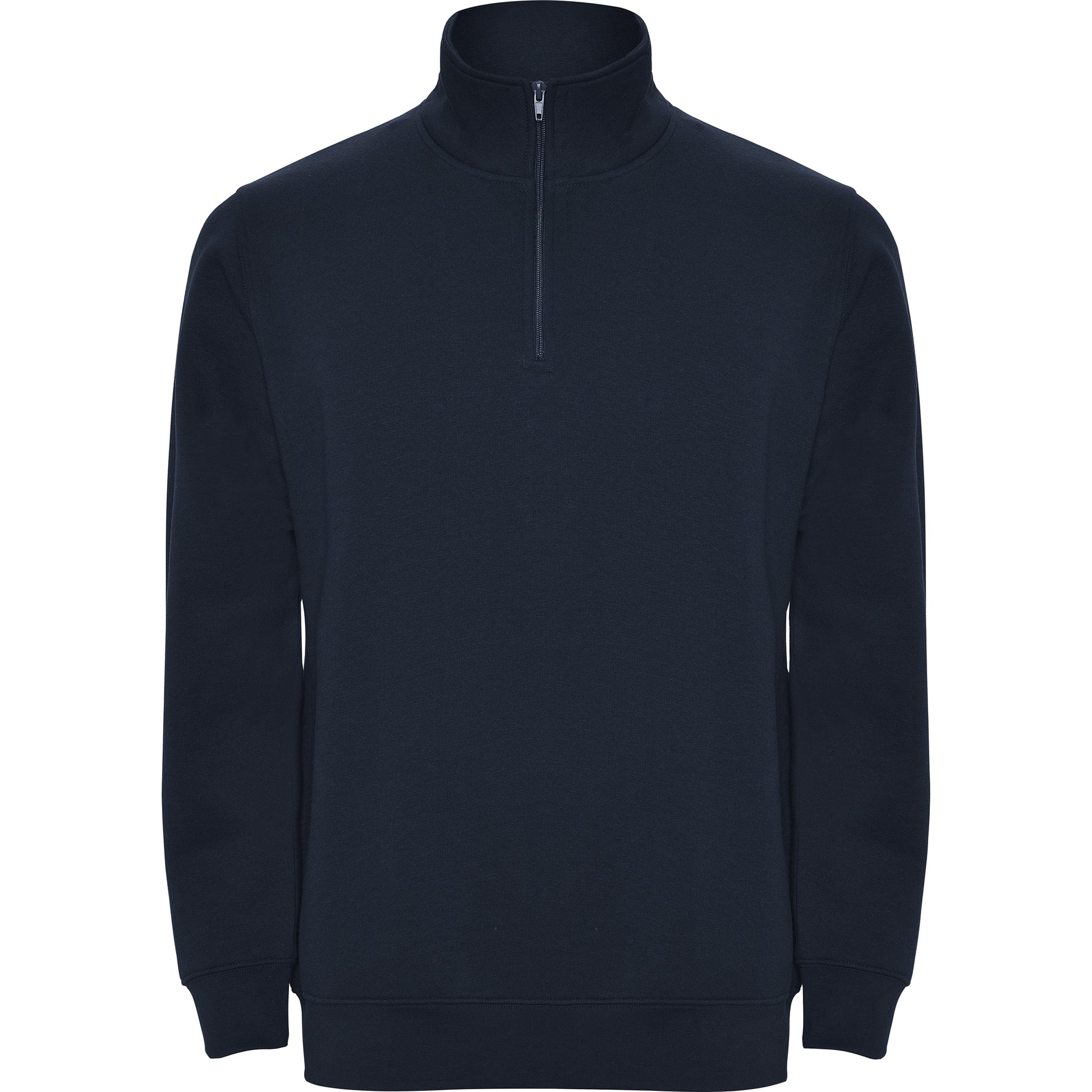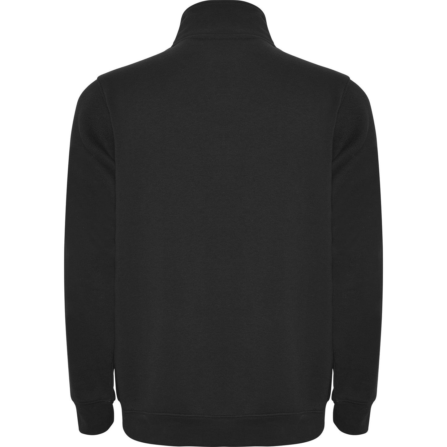 Sudadera con media cremallera a tono y cuello alto. Vista interior del cuello en el mismo tono. Cubrecosturas reforzado en el interior del cuello. Punto canalé 1x1 en puños y cintura.