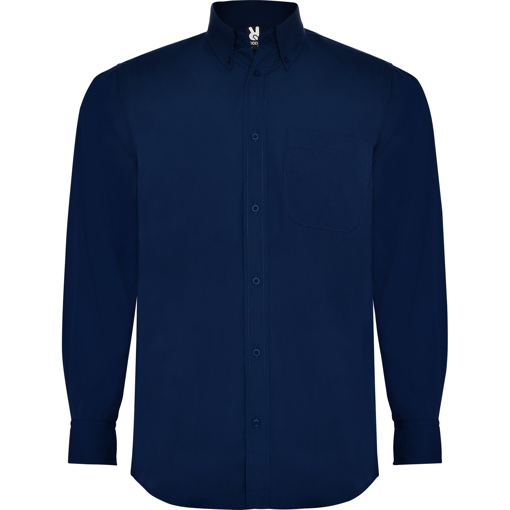 Camisa de manga larga de hombre. · Cuello clásico almidonado de 1 botón y bolsillo frontal izquierdo. · Tapeta con 7 botones a tono. · Bajo con forma. · Cuidado fácil.