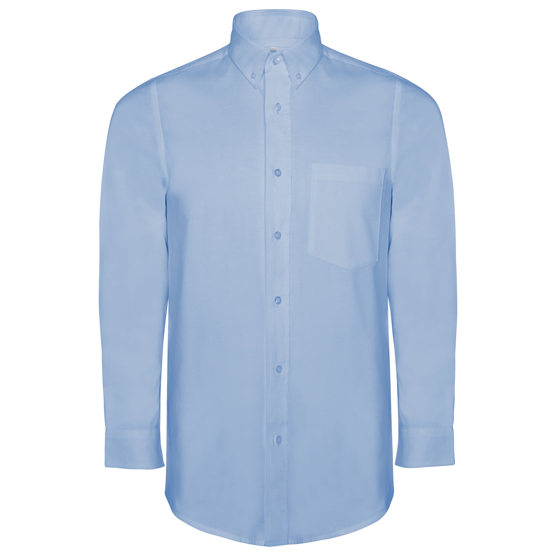 Camisa de manga larga de hombre. · Bolsillo en pecho izquierdo. · Tapeta con botones. · Puño con dos pinzas y dos botones. · Espalda con canesú.