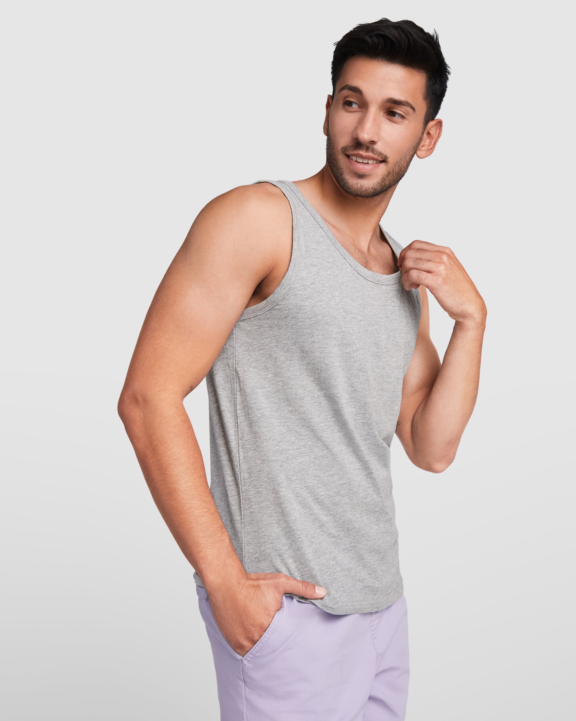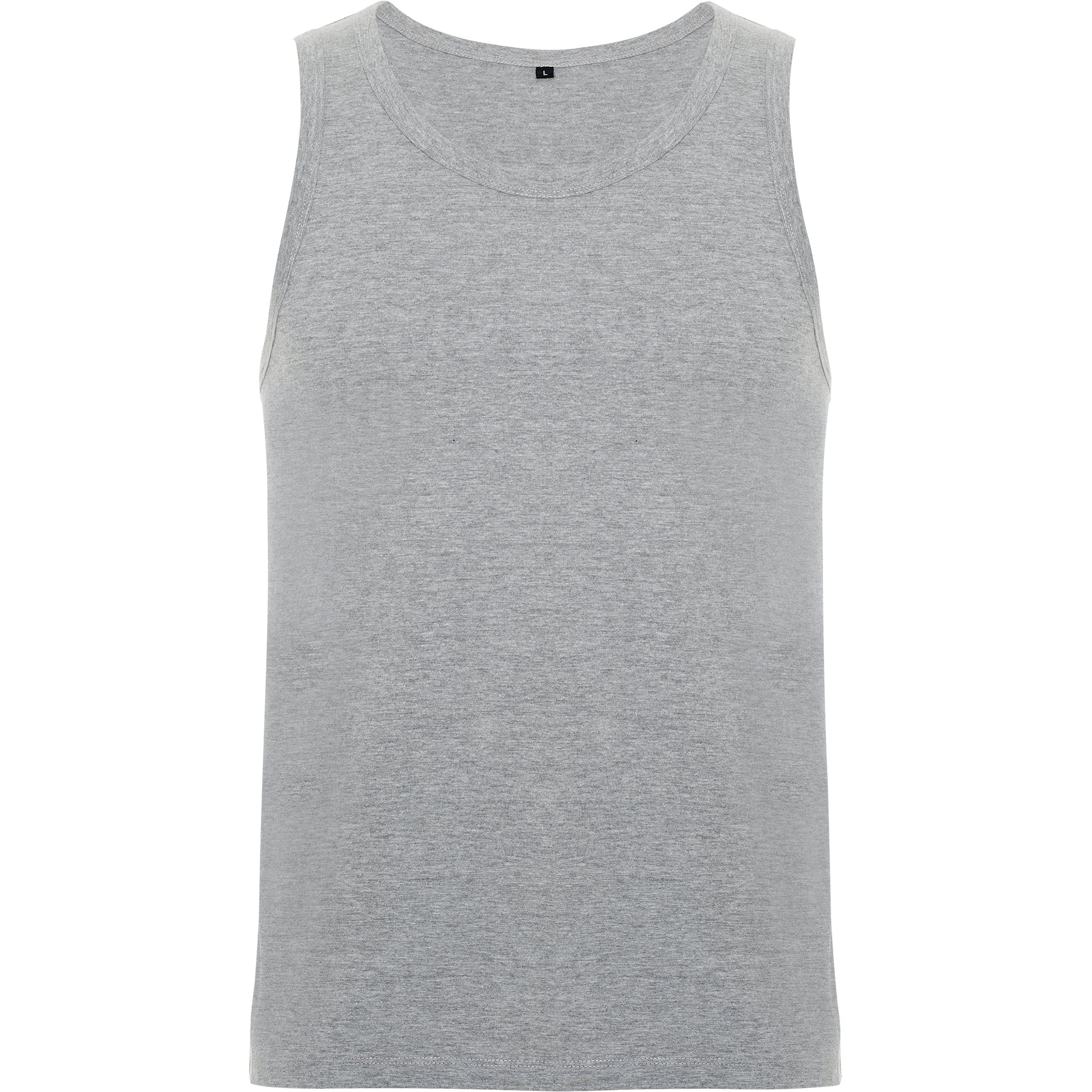 Material: 100% algodón, punto liso, 155 g/m². Color gris vigoré 58: 85% algodón / 15% viscosa.