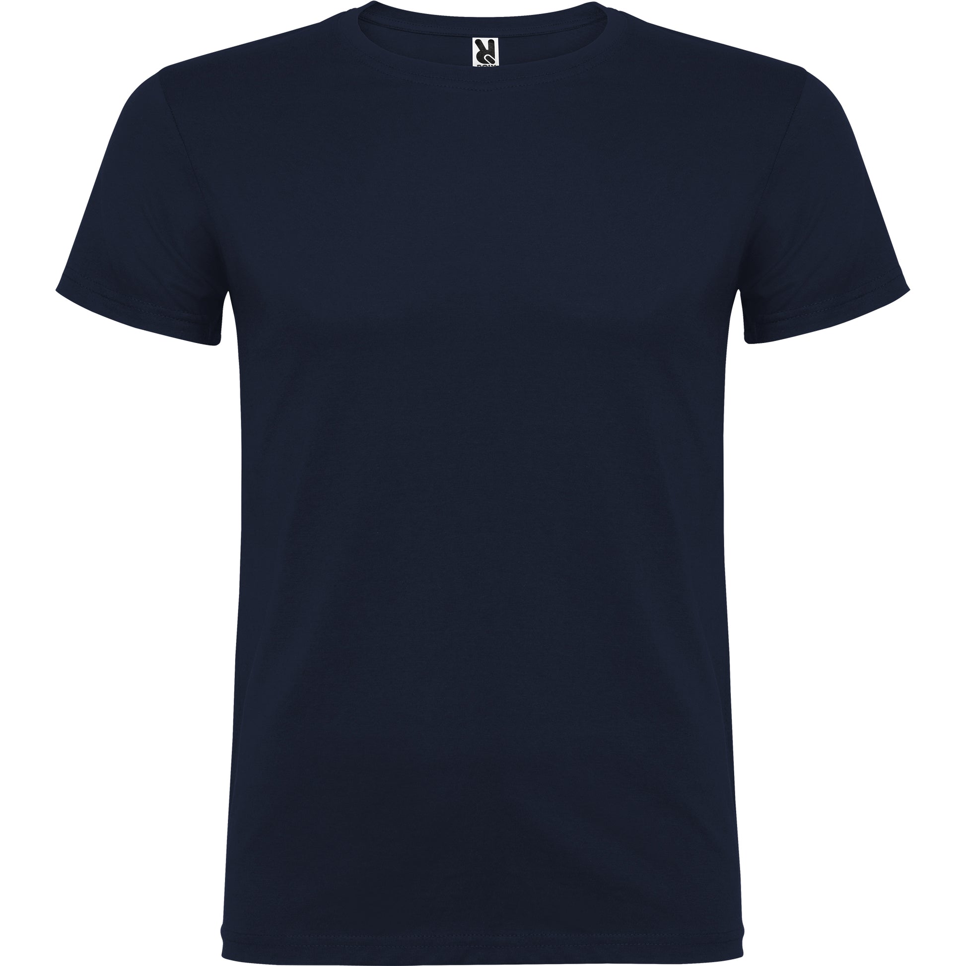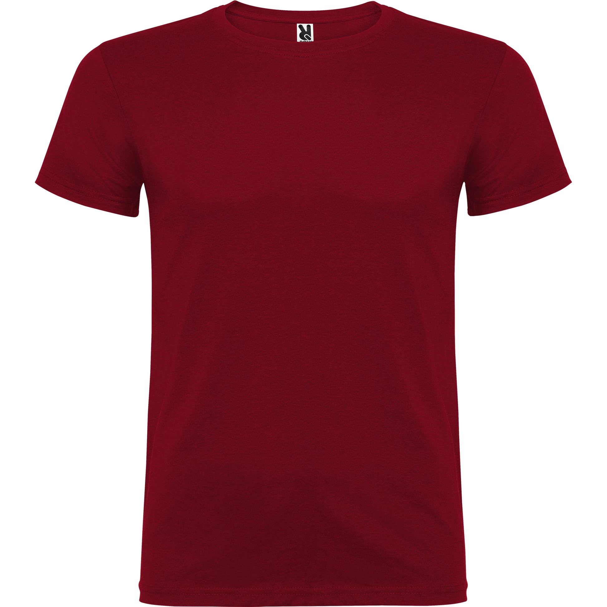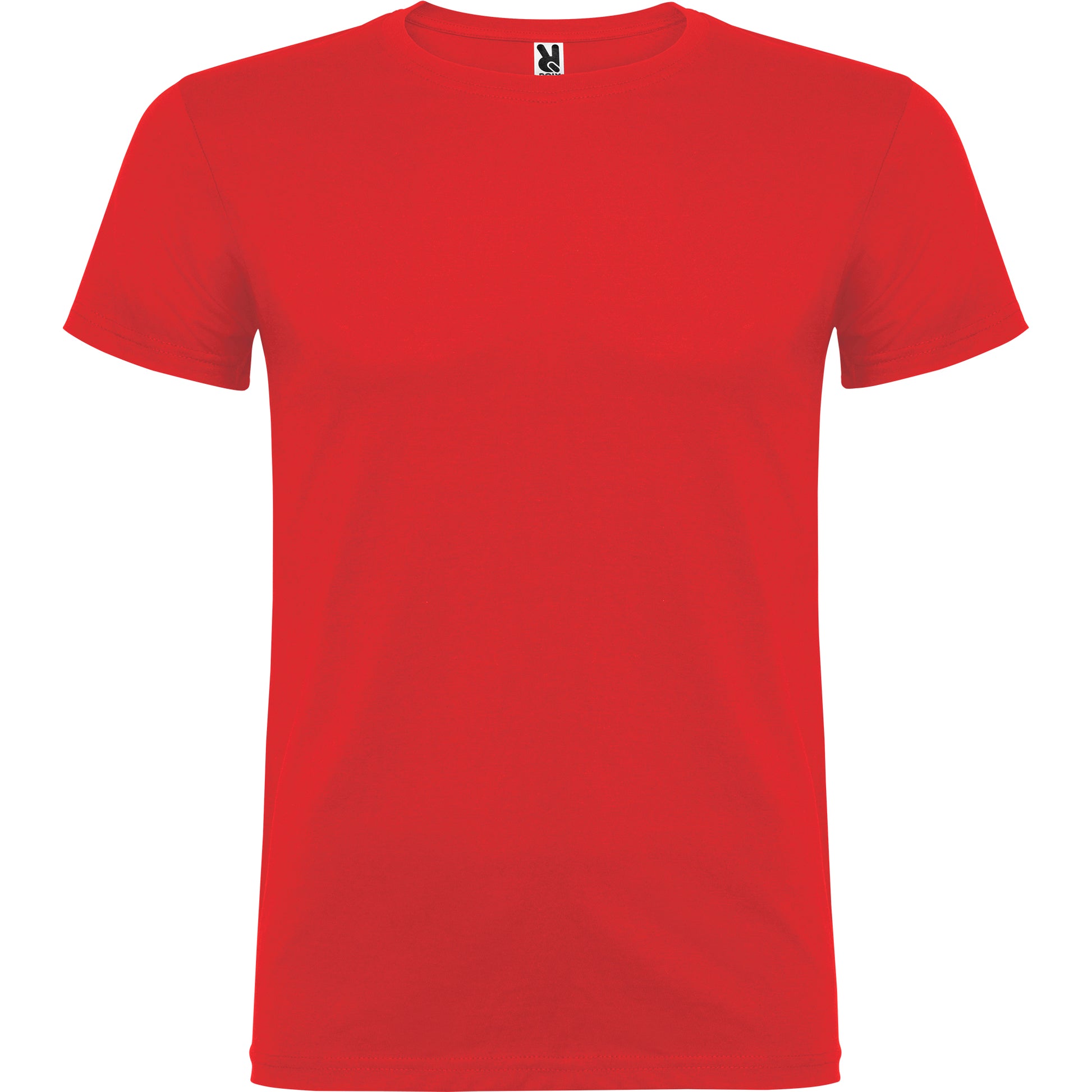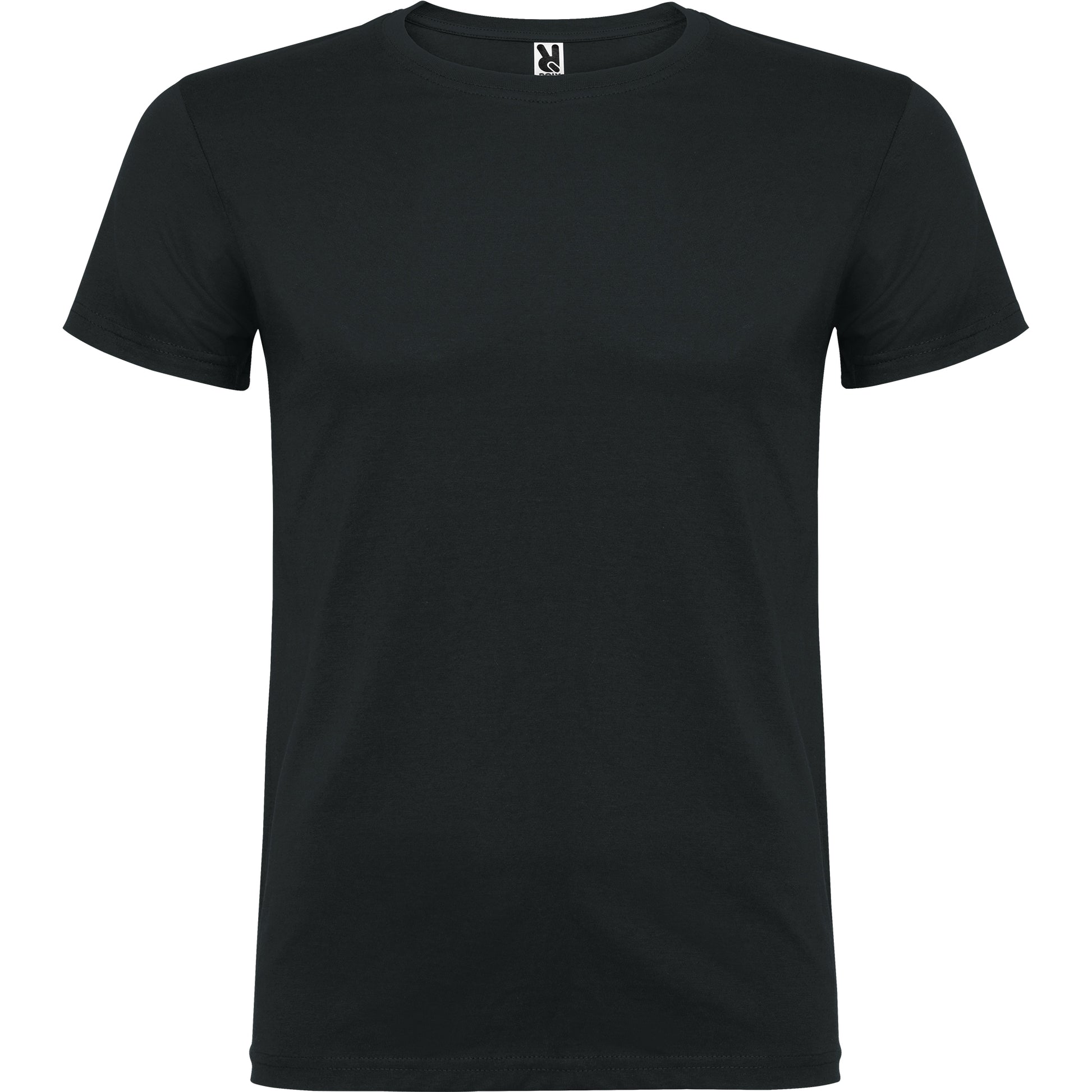 Camiseta de manga corta de cuello redondo doble con elastano , confeccionada en tejido tubular en tallas de adulto, y con costuras laterales en tallas de niño, con cubrecosturas reforzadas en cuello.