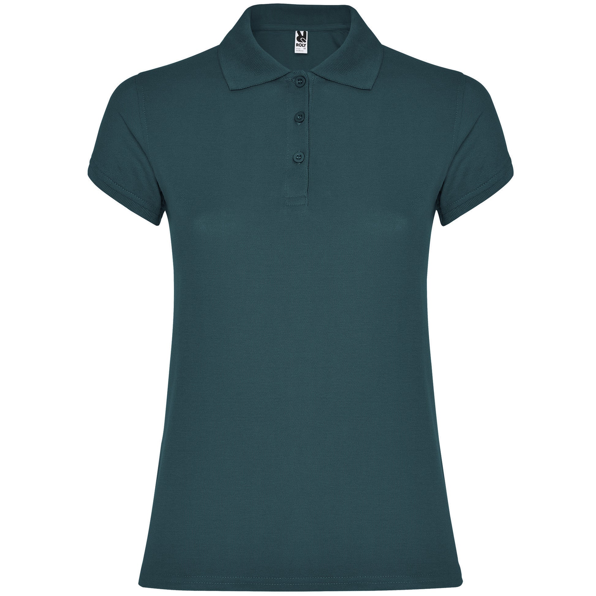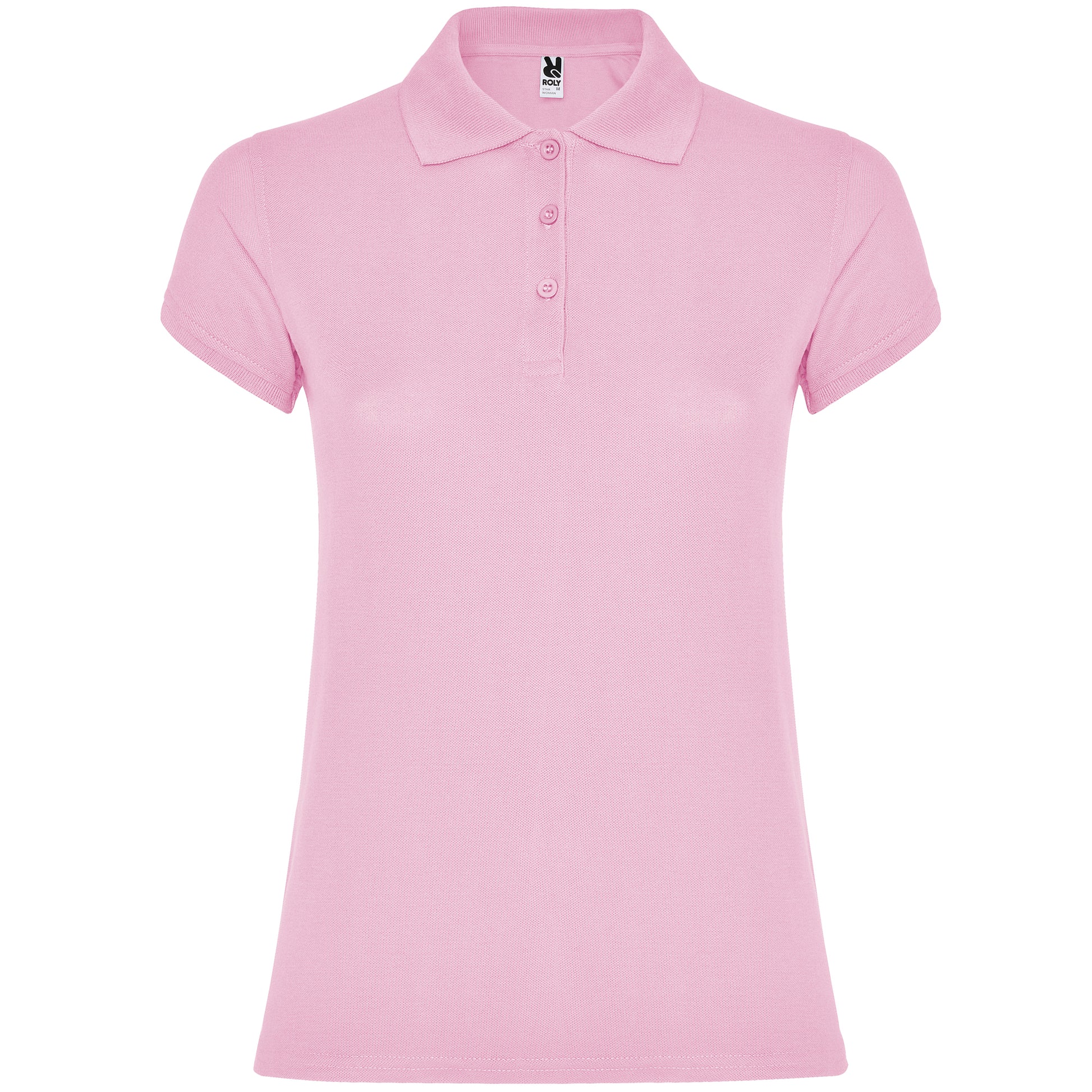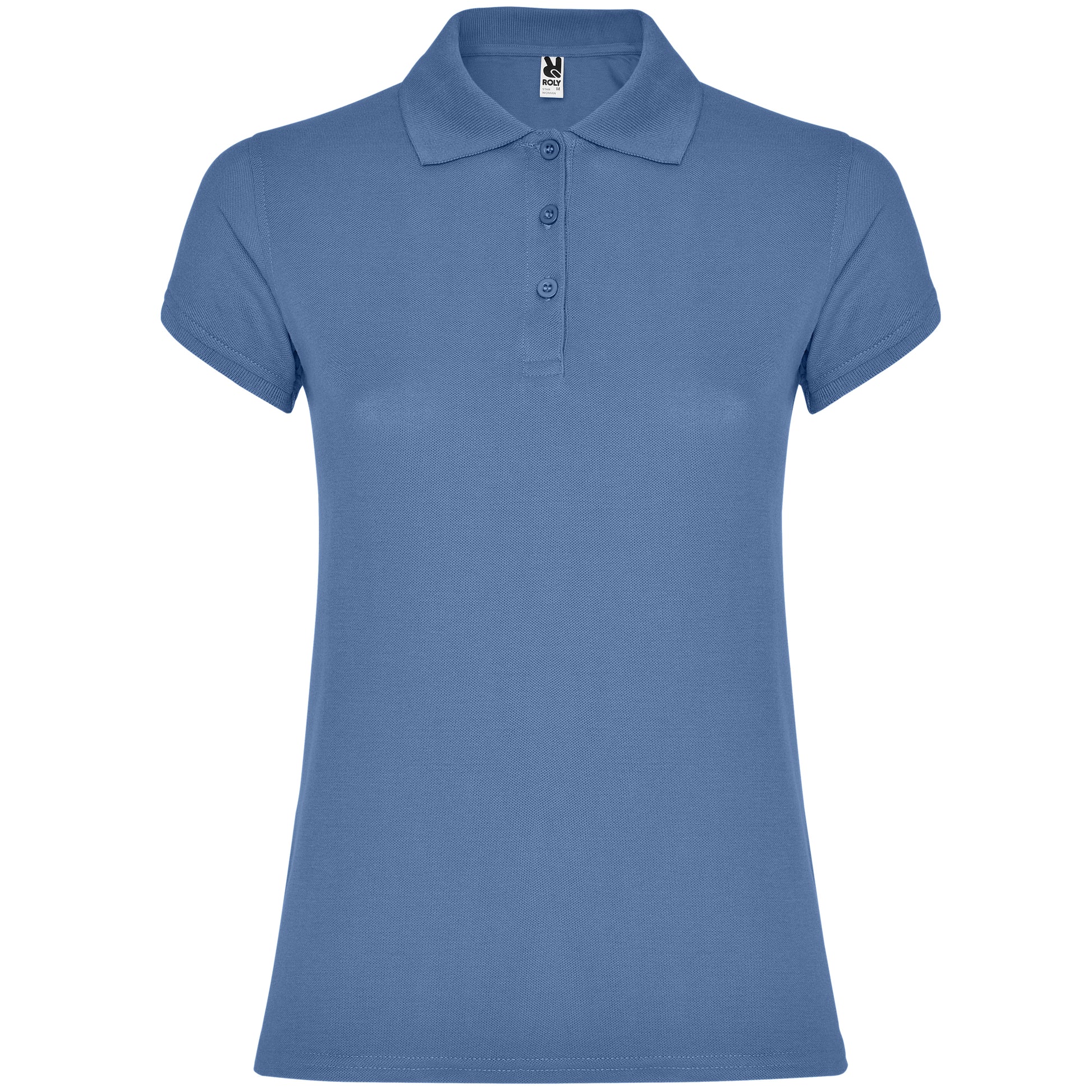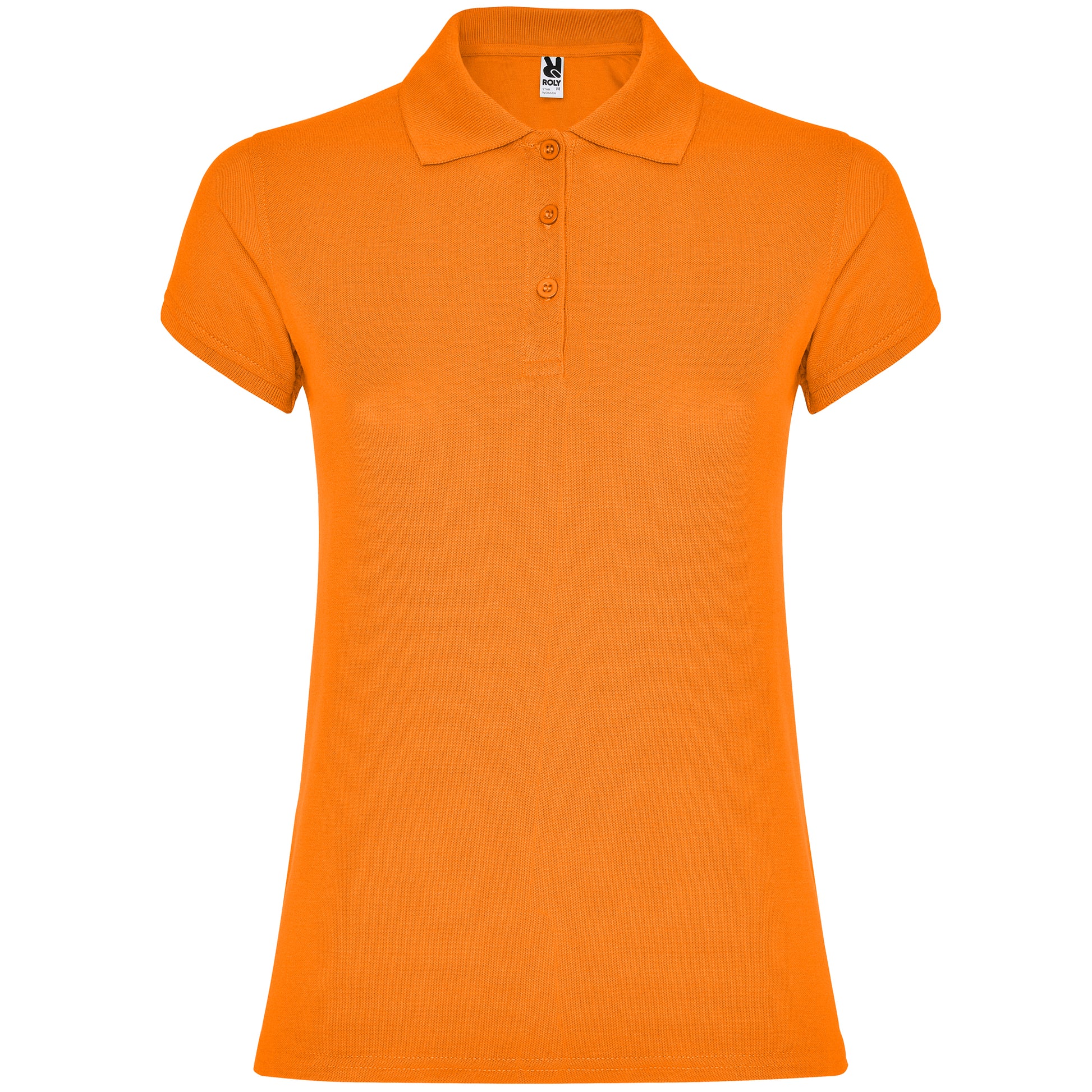 Polo de mujer de manga corta. Cubrecosturas reforzado en el interior del cuello. Cuello y ribete de manga acanalado. Costuras laterales y corte ajustado. Tapeta fina con tres botones. Aperturas en los laterales del bajo.