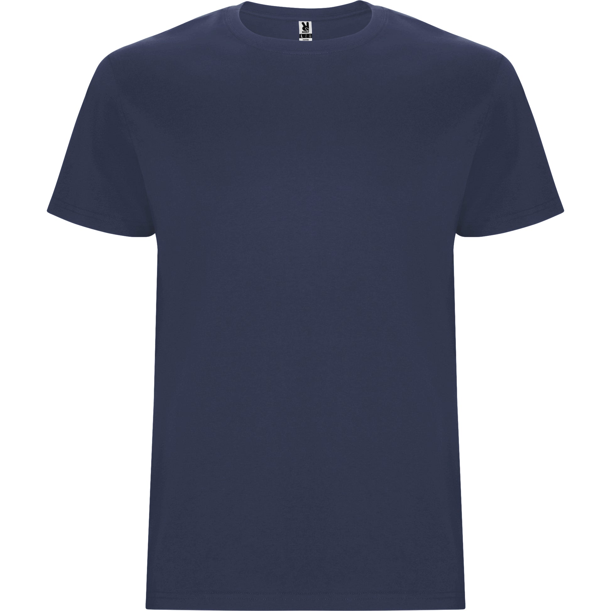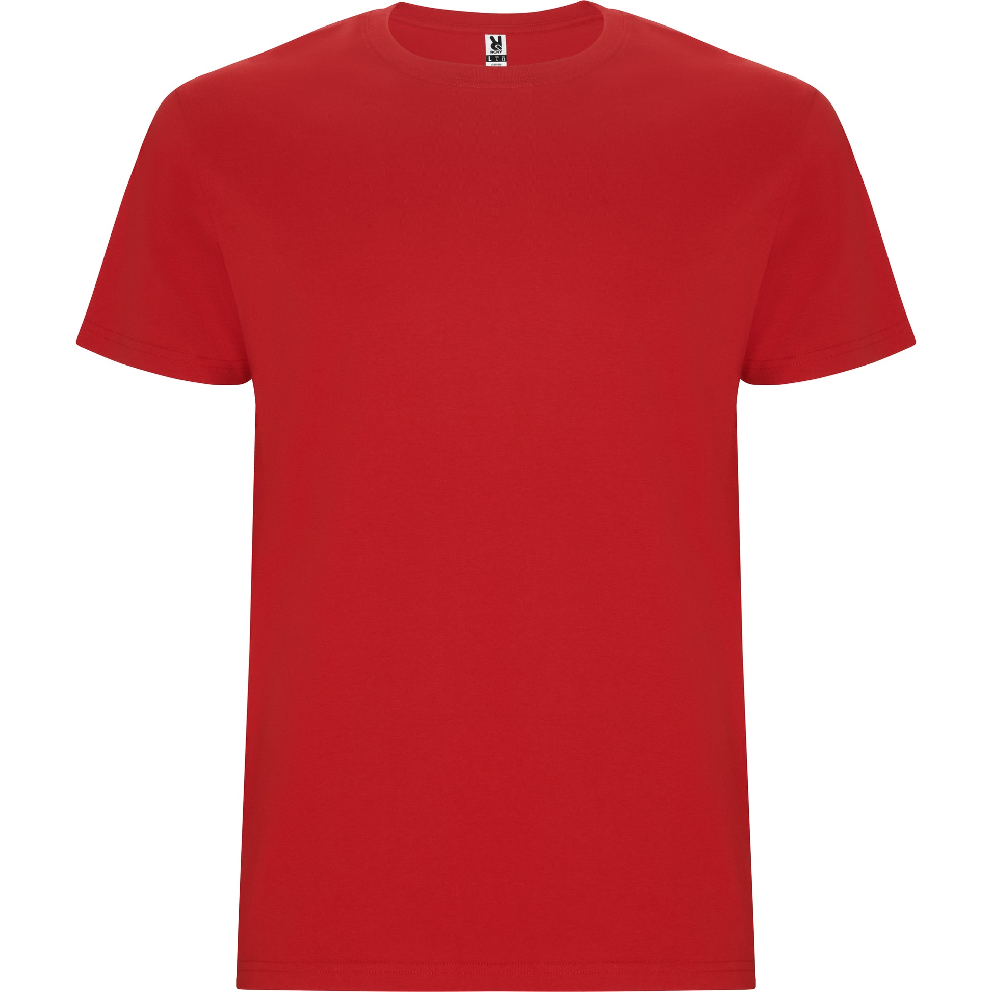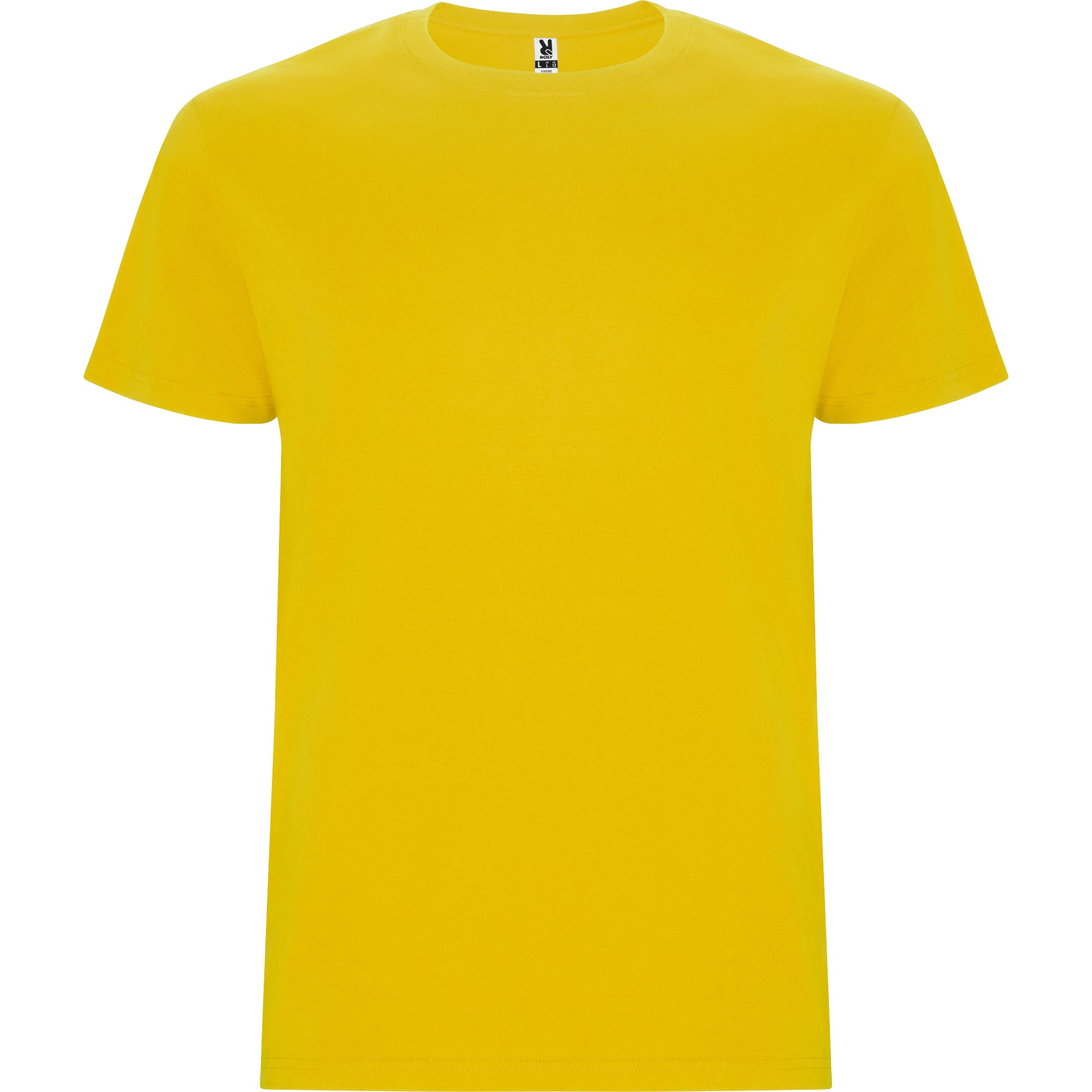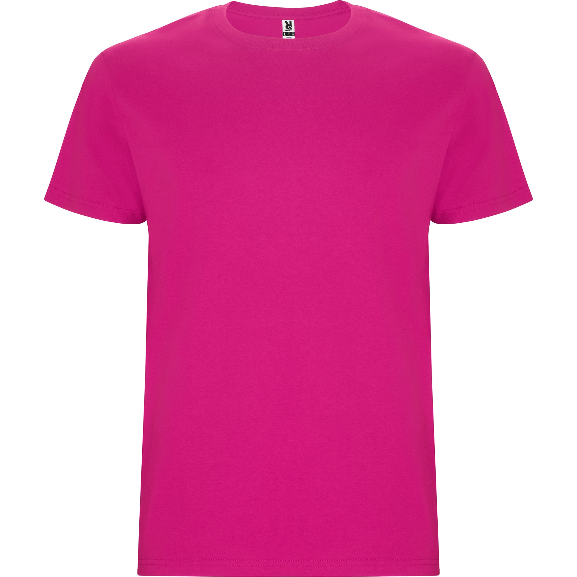 Camiseta tubular de manga corta. Cuello redondo con elastano. Costuras laterales en tallas de niño.