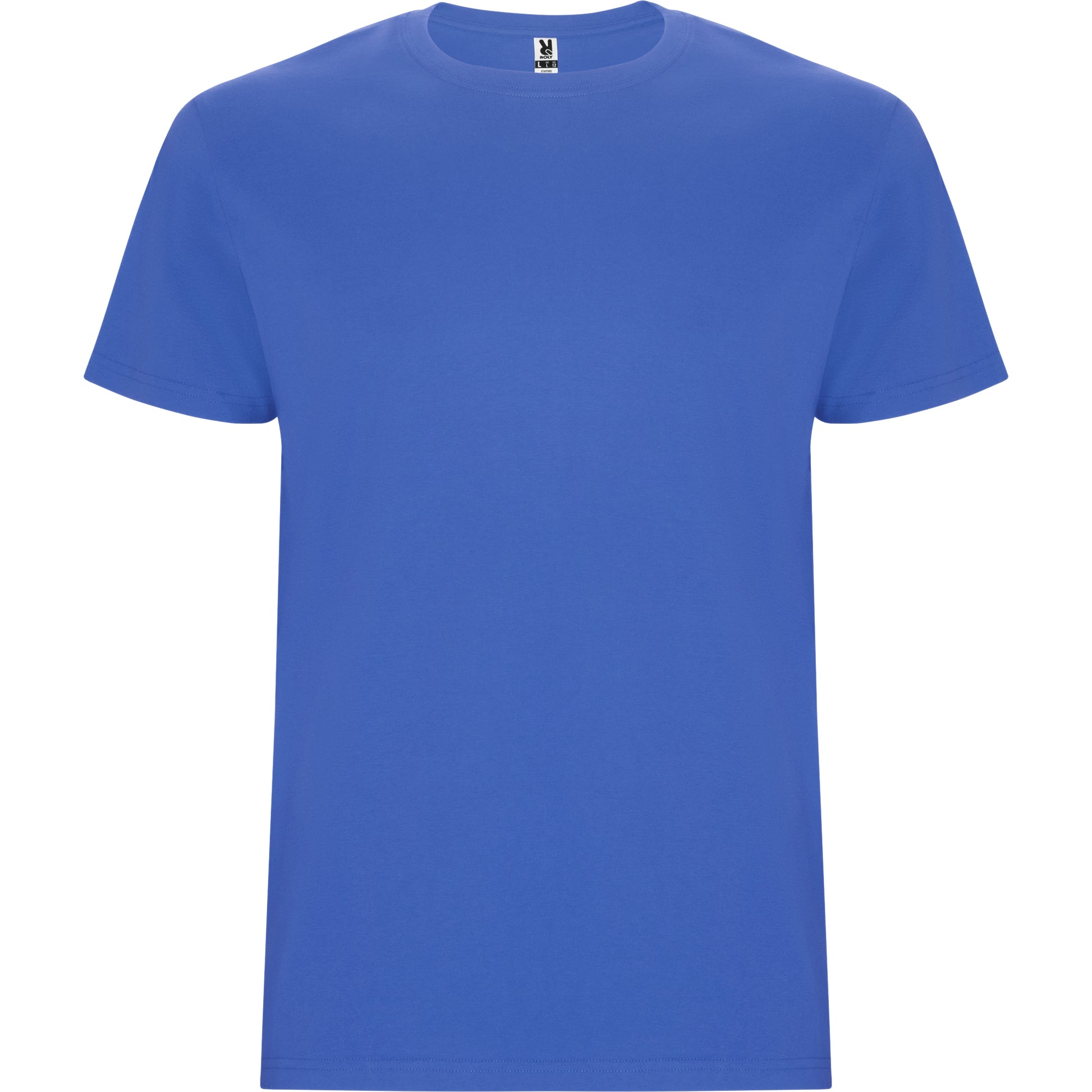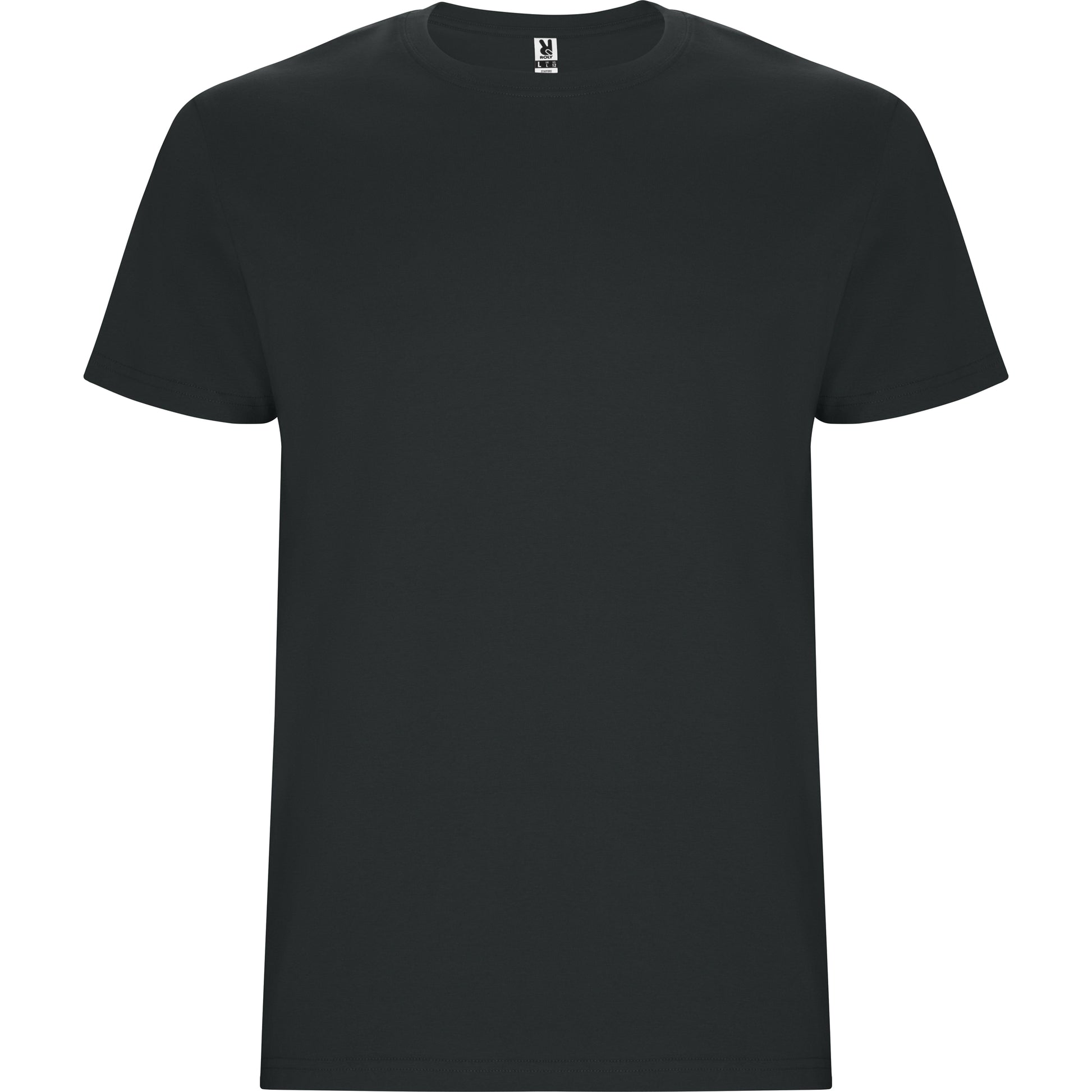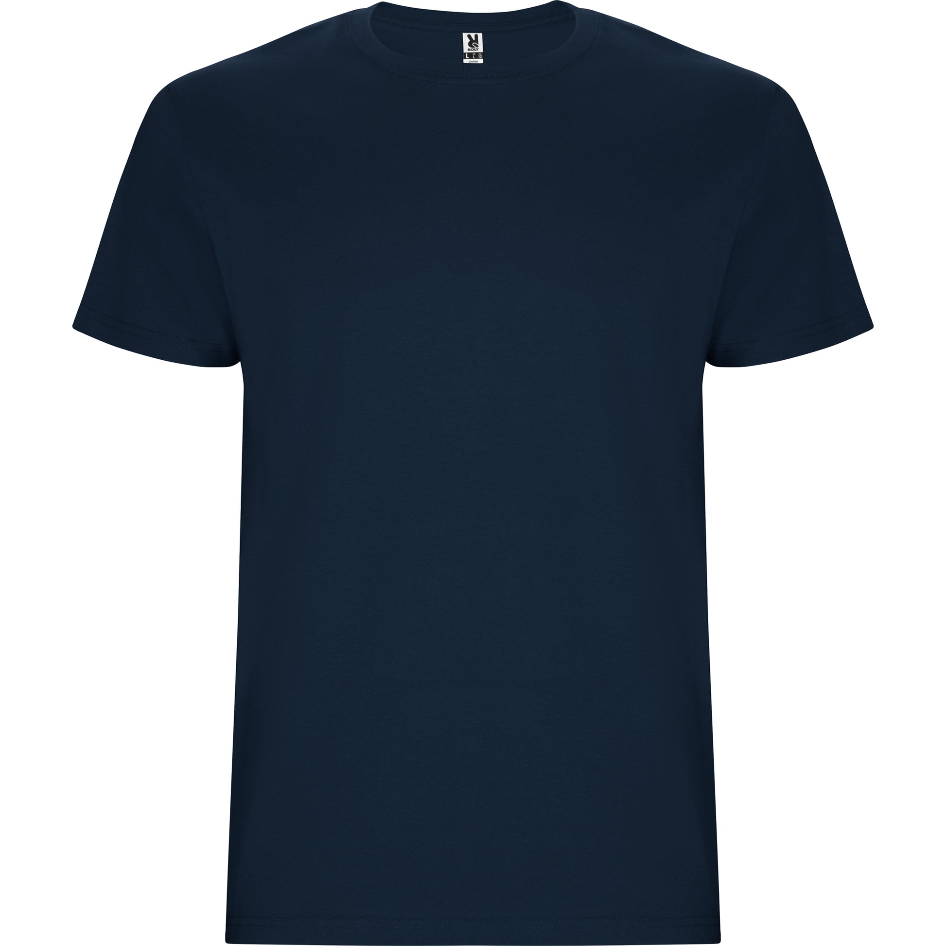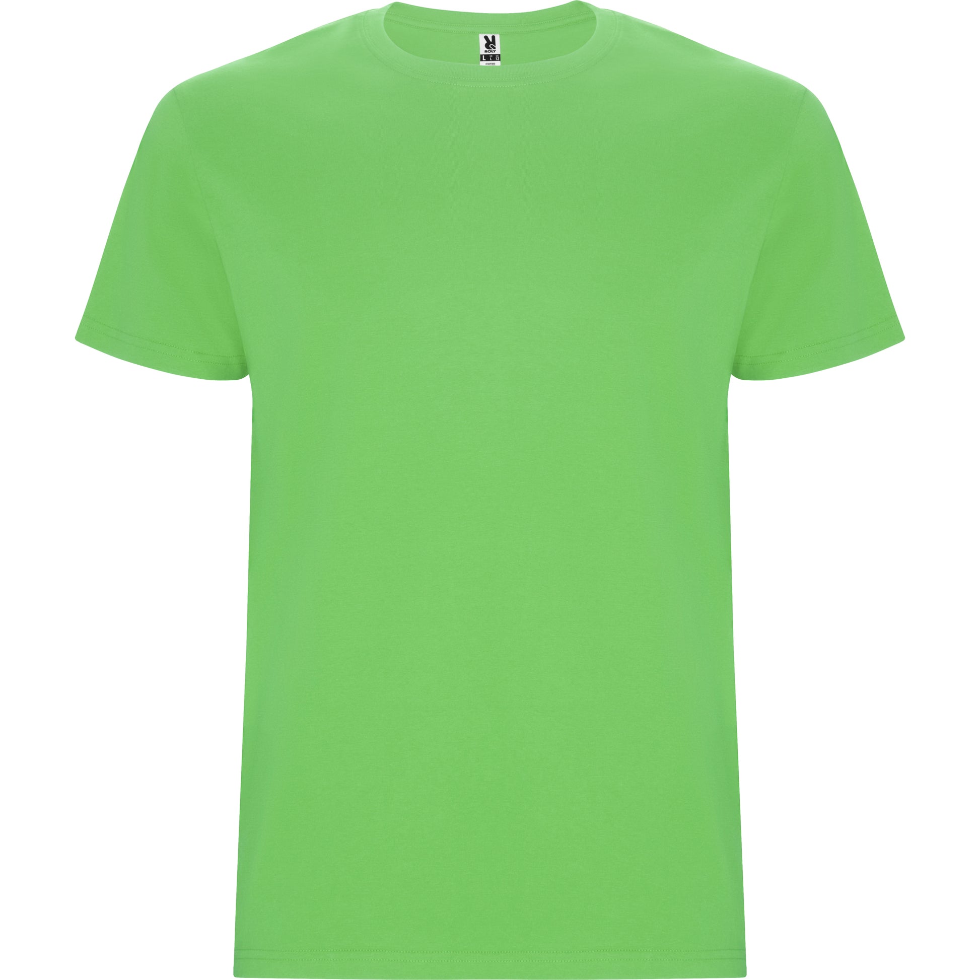 Camiseta tubular de manga corta. Cuello redondo con elastano. Costuras laterales en tallas de niño.