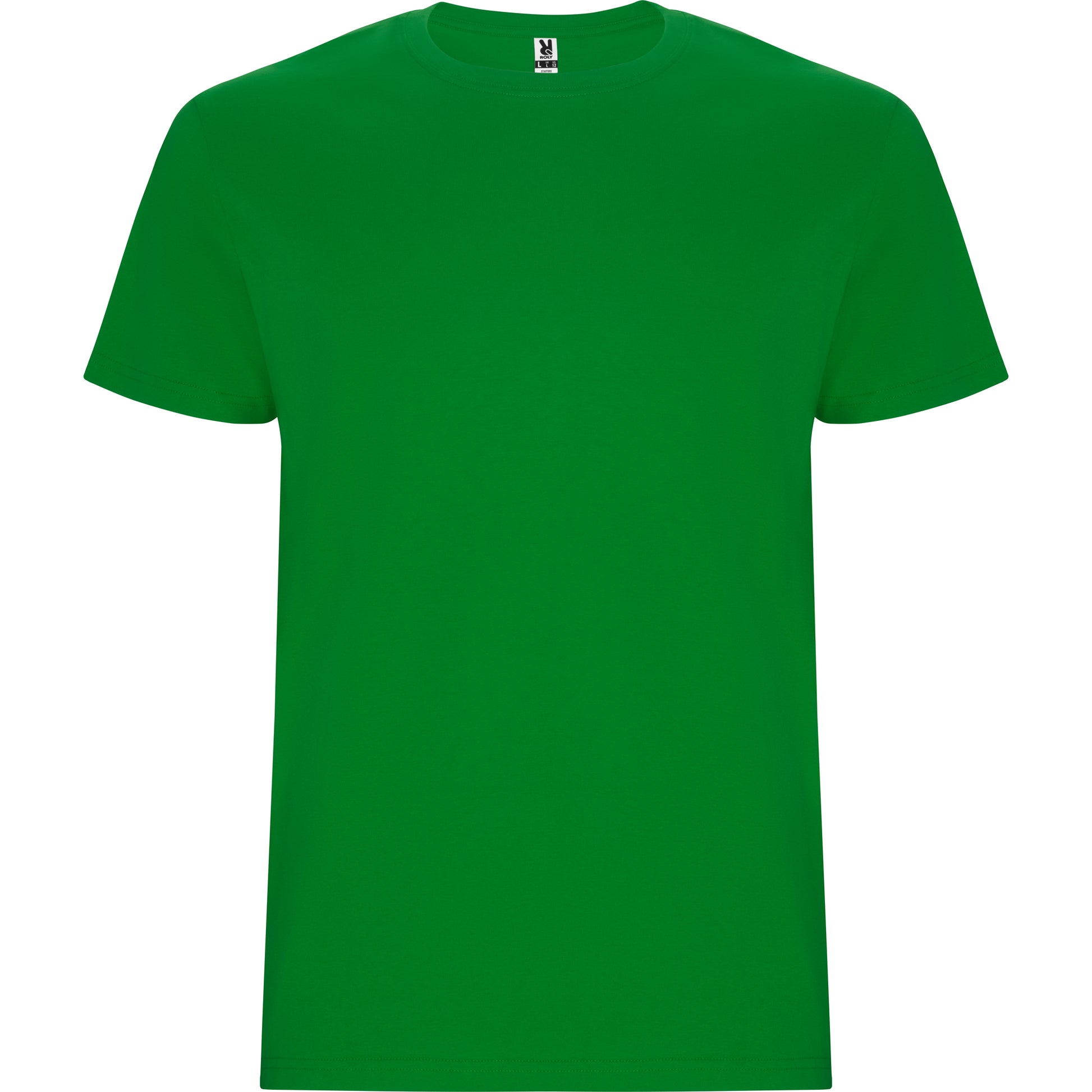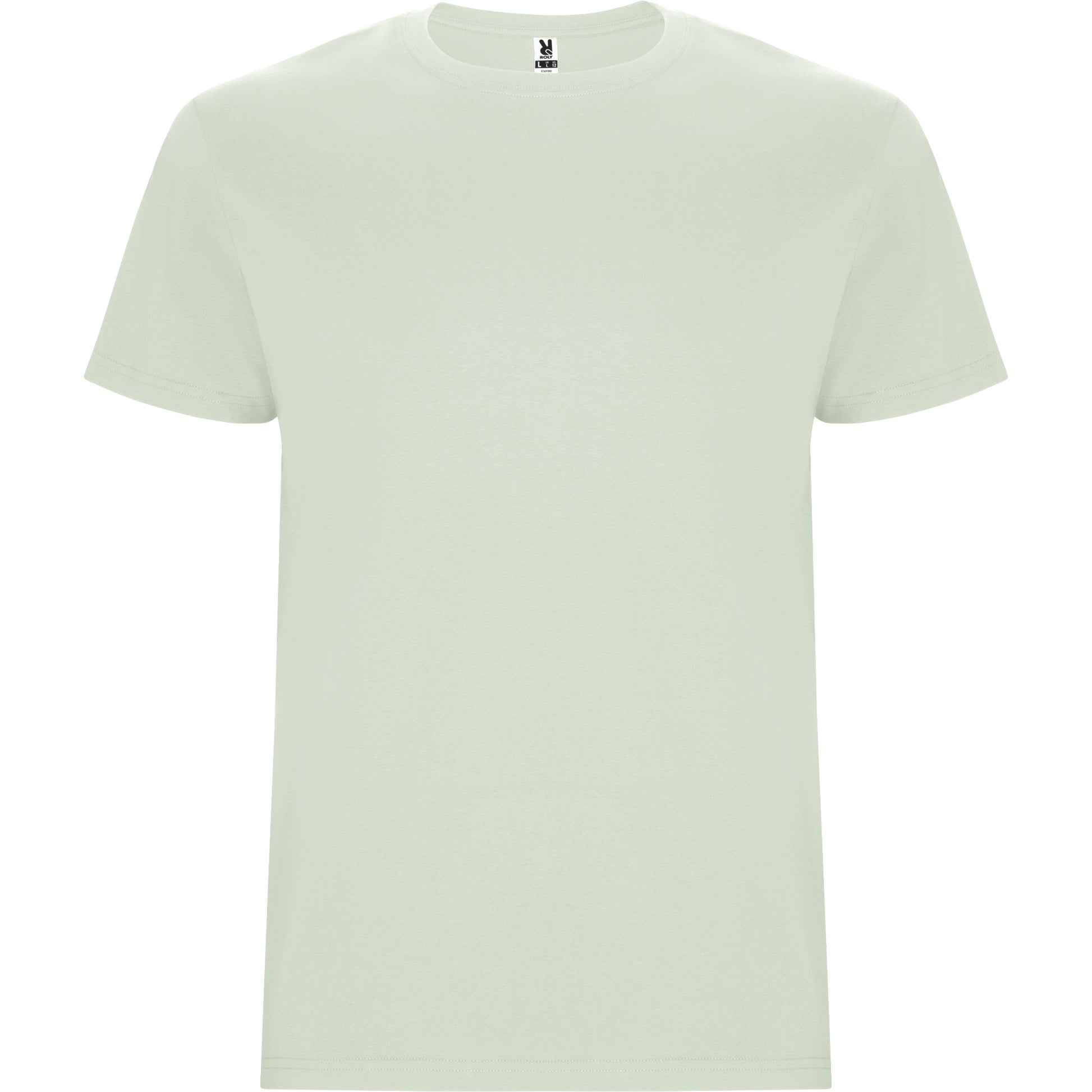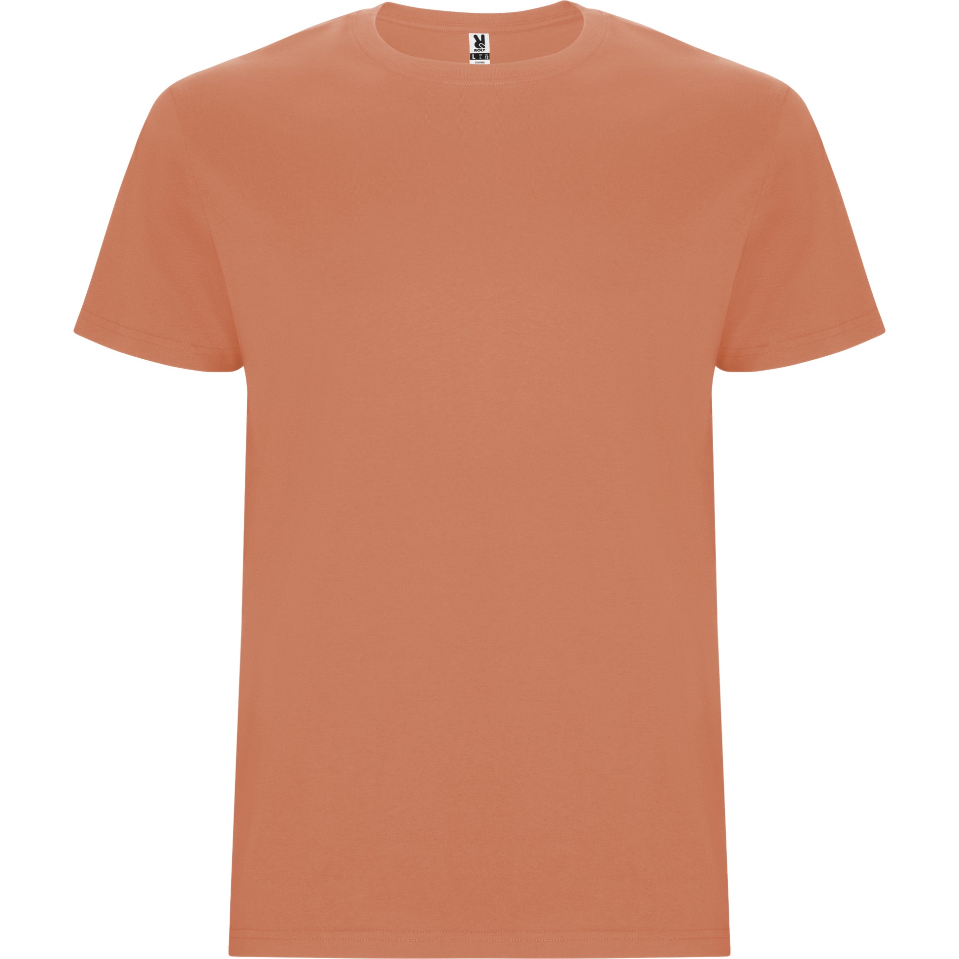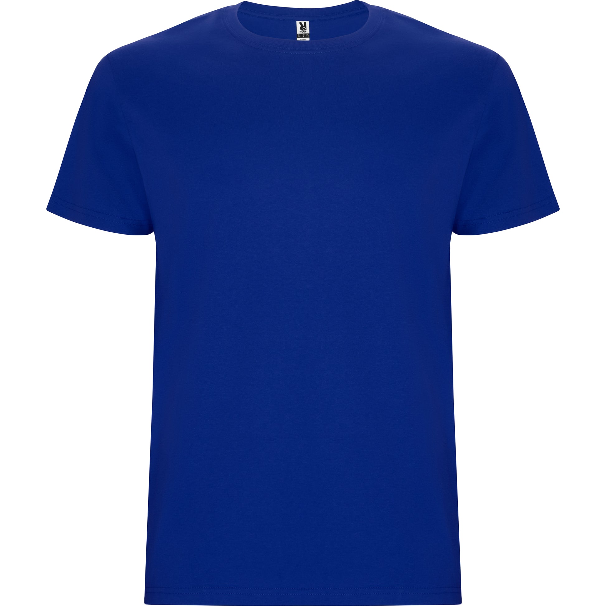 Camiseta tubular de manga corta. Cuello redondo con elastano. Costuras laterales en tallas de niño.