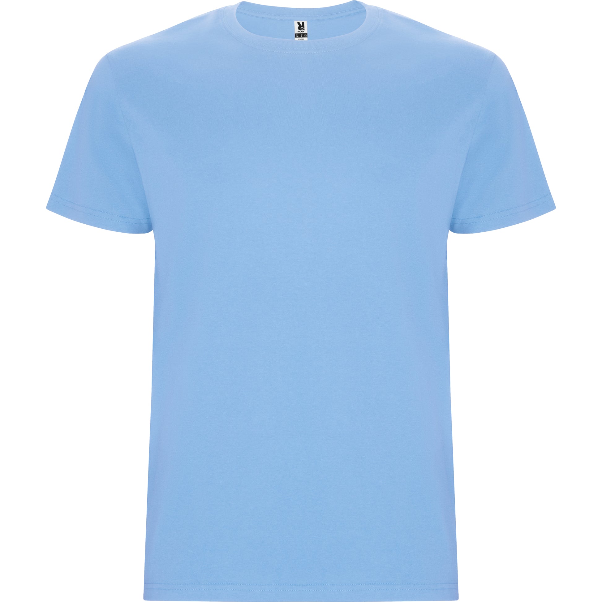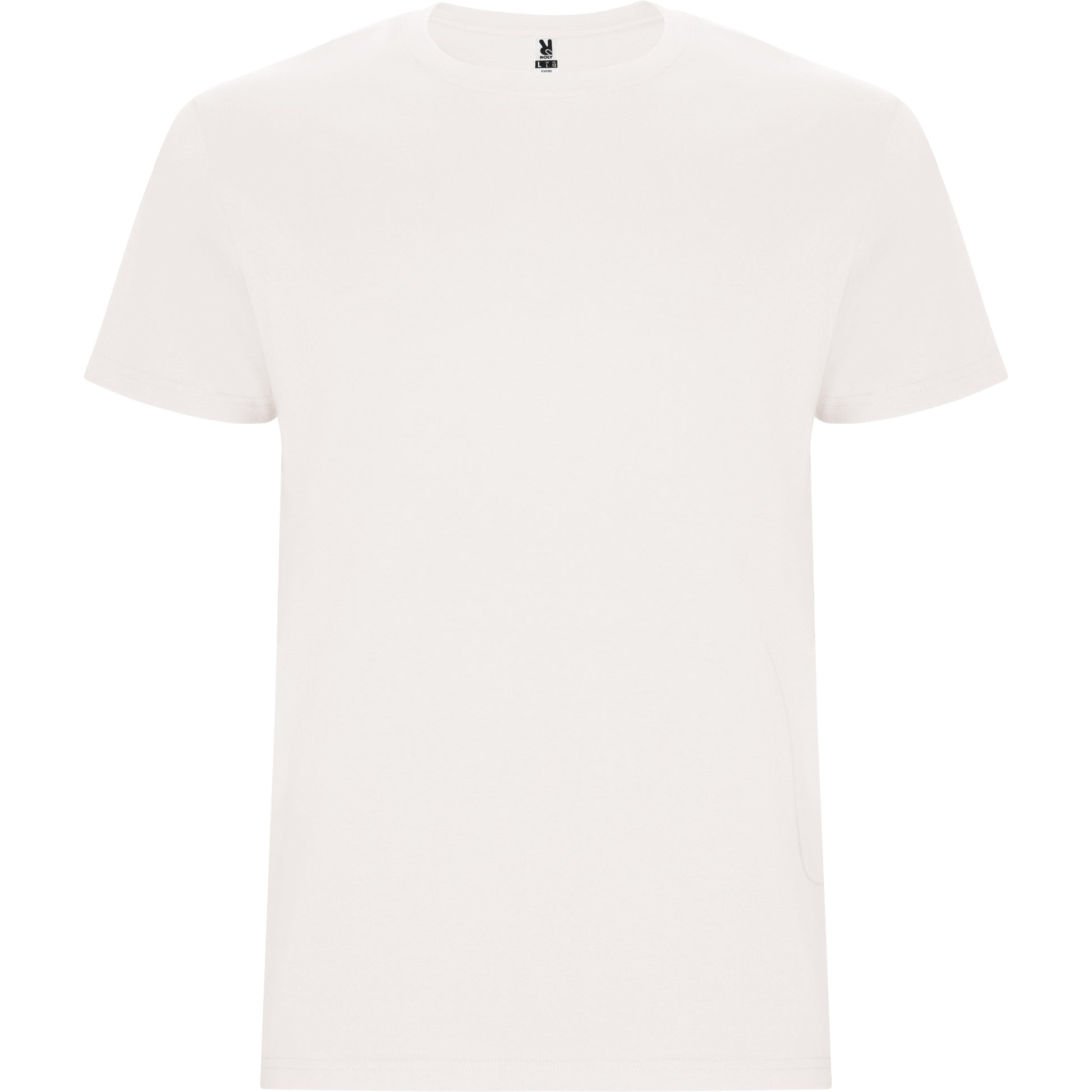 Camiseta tubular de manga corta. Cuello redondo con elastano. Costuras laterales en tallas de niño.