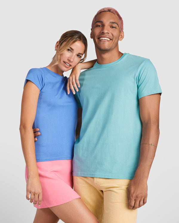 Camiseta de manga corta entallada. Cuello redondo en canalé 1x1 con cubre costuras interior. Costuras laterales.