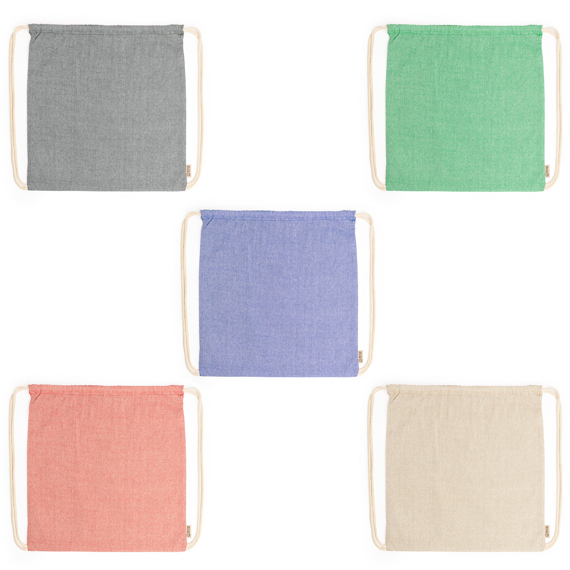Mochila de cordones en algodón reciclado de 120 g/m² con acabado jaspeado.
