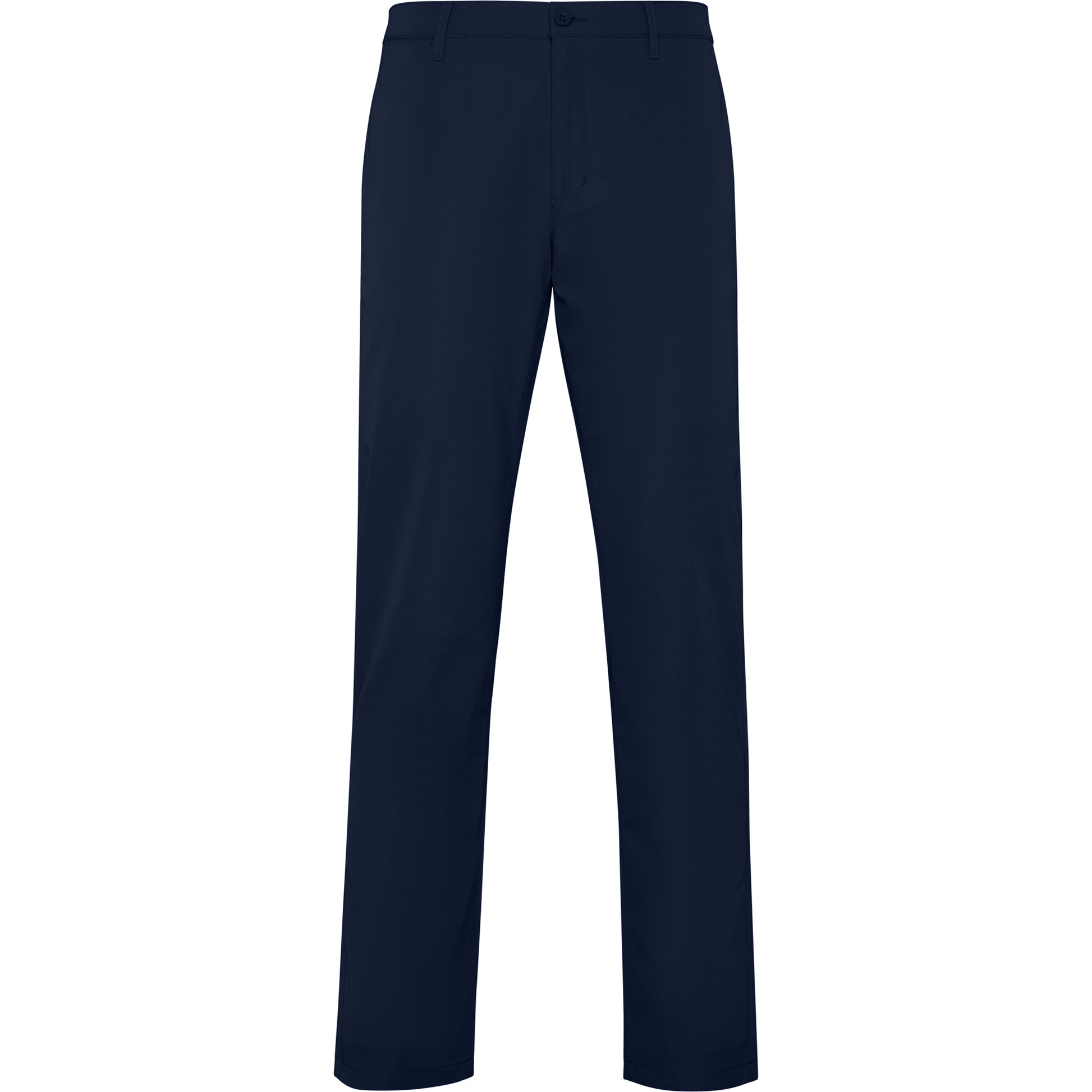 Pantalón largo de hombre. · Trabillas para cinturón. · Cierre con cremallera y botón. · Trabillas para cinturón. · Bolsillos laterales. · Bolsillo frontal derecho portamonedas. · Bolsillo trasero derecho de ojal con botón.