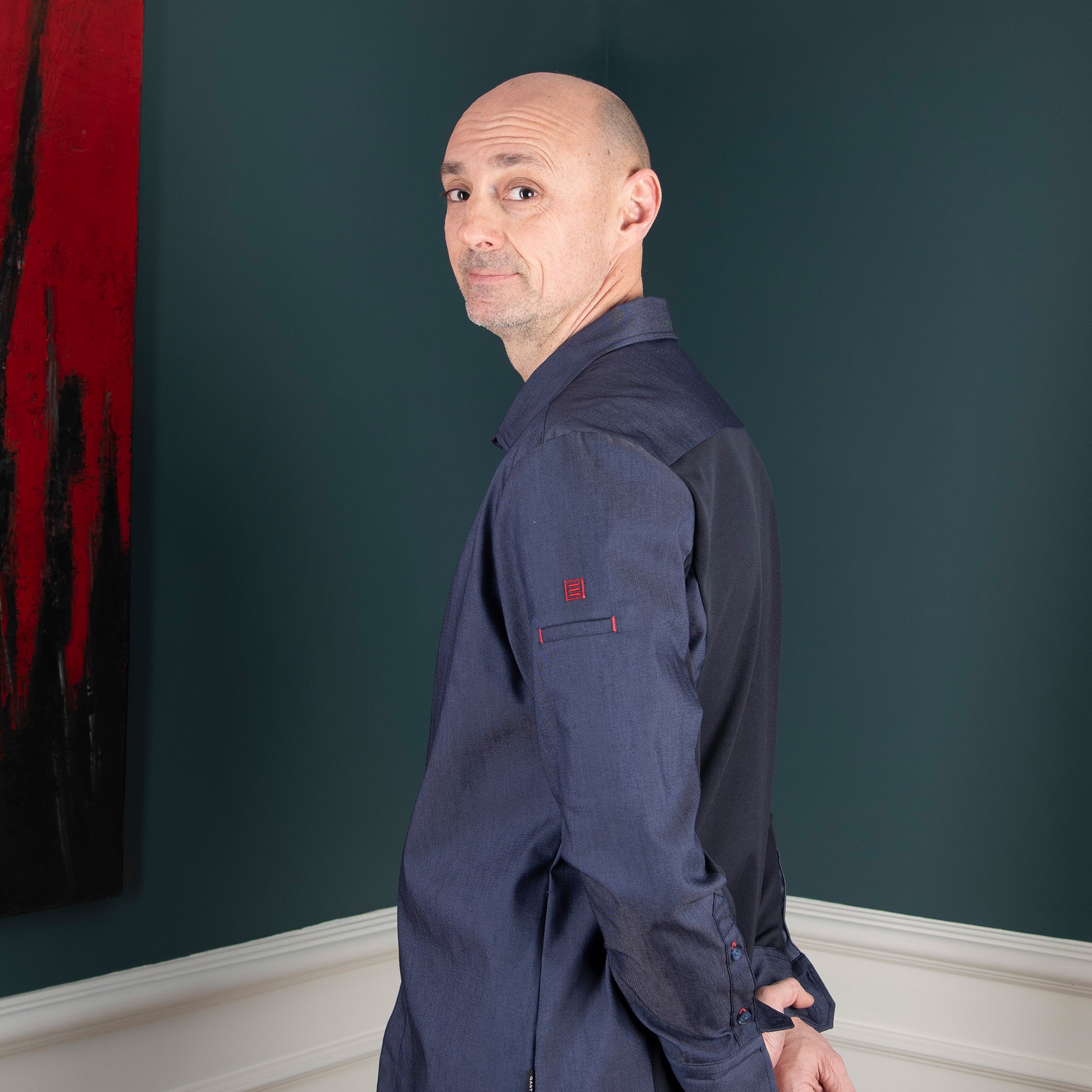 Incluye paneles de tejido piqué COOLMAX estratégicamente ubicados en las mangas y la espalda. Estos paneles técnicos trabajan incansablemente para regular la temperatura corporal y gestionar la humedad, garantizando que te sientas fresco y cómodo mientras das rienda suelta a tu creatividad culinaria.