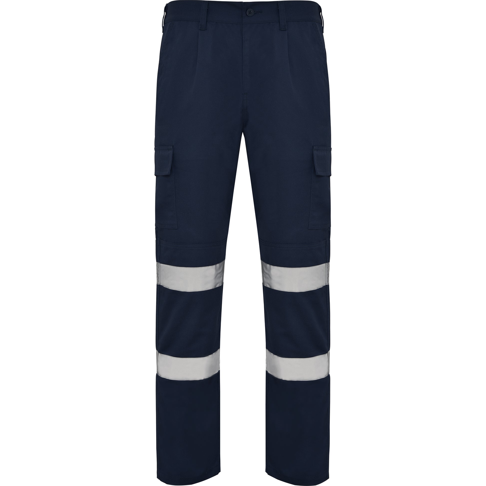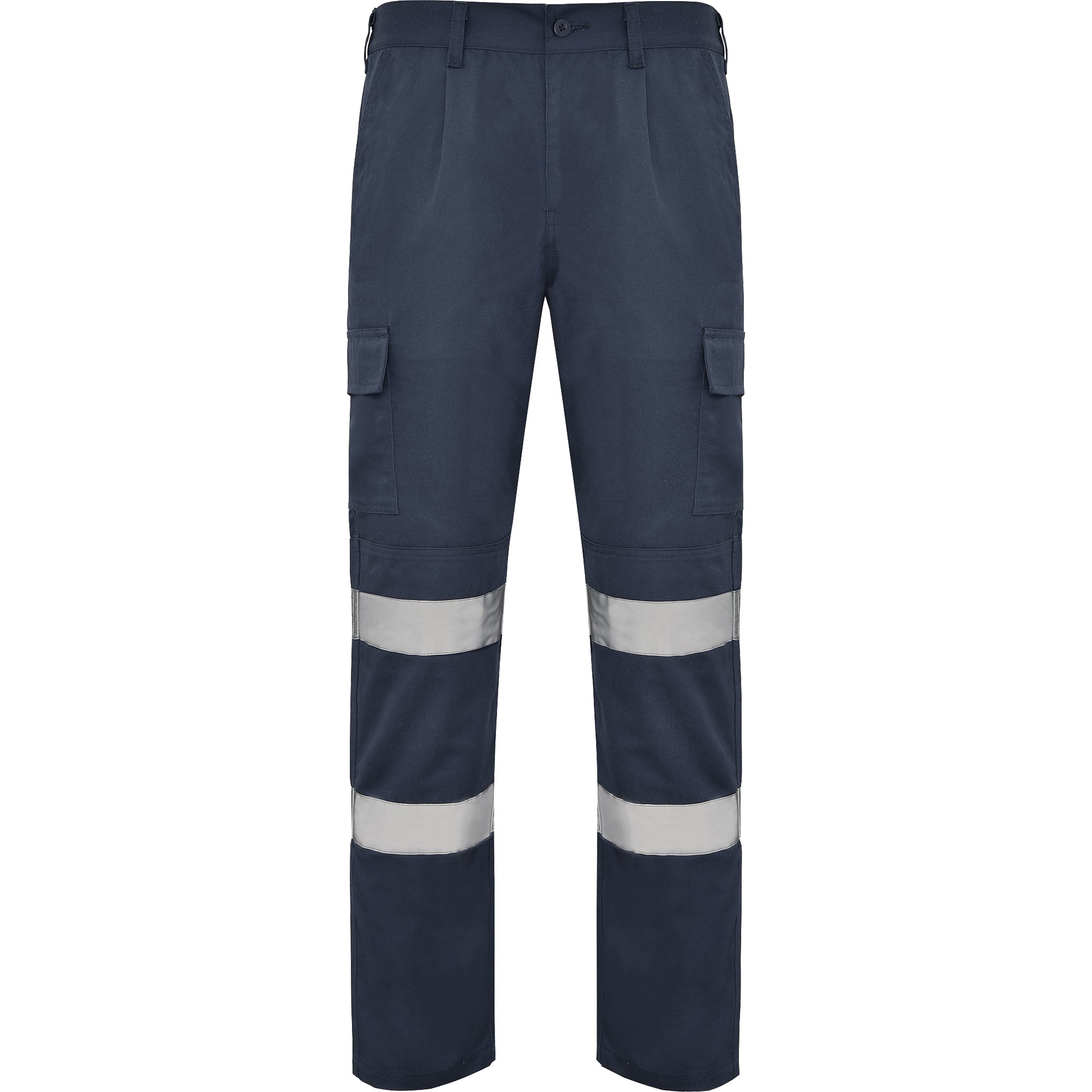 Pantalón largo de visibilidad aumentada con tejido resistente. · Cinturilla ajustable elástica en la parte trasera. · Dos bolsillos frontales. · Bolsillo funcional trasero con tapeta y cierre de velcro. · Dos bolsillos laterales con tapeta y cierre de velcro. · Refuerzo en entrepierna · Doble tejido en rodilleras. · Dos cintas reflectantes horizontales.