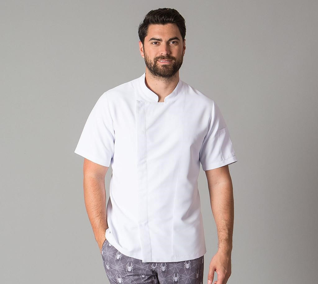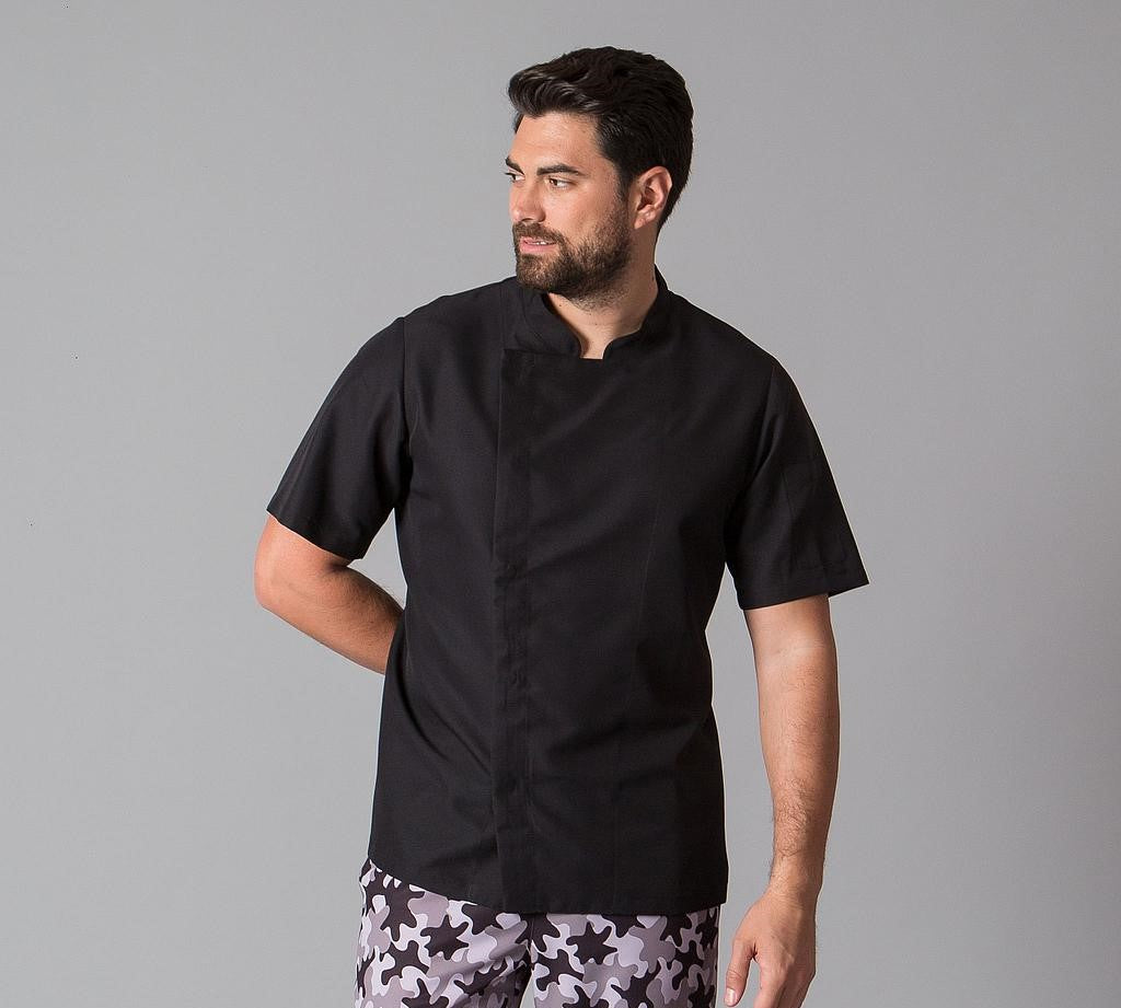 La versión de manga corta de la chaqueta de cocina MEJIA Red Line es ideal para climas cálidos y para aquellos que prefieren una mayor libertad de movimiento en los brazos. Además, si necesitas una cobertura adicional, también está disponible en versión manga larga.