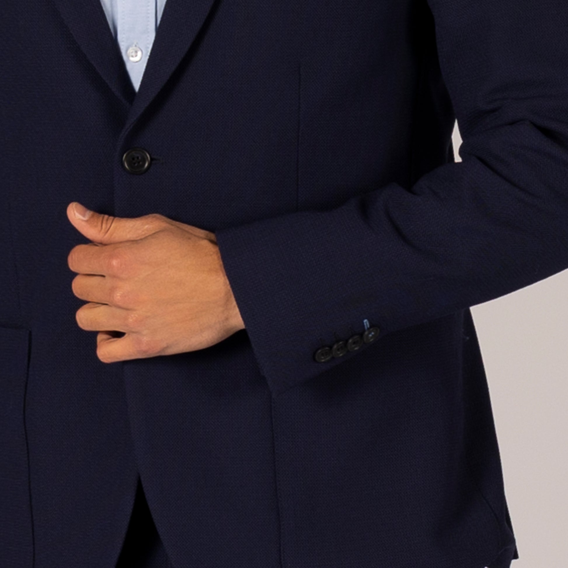 La americana cierra delantero izquierdo sobre derecho, un detalle clásico que agrega sofisticación a la prenda.