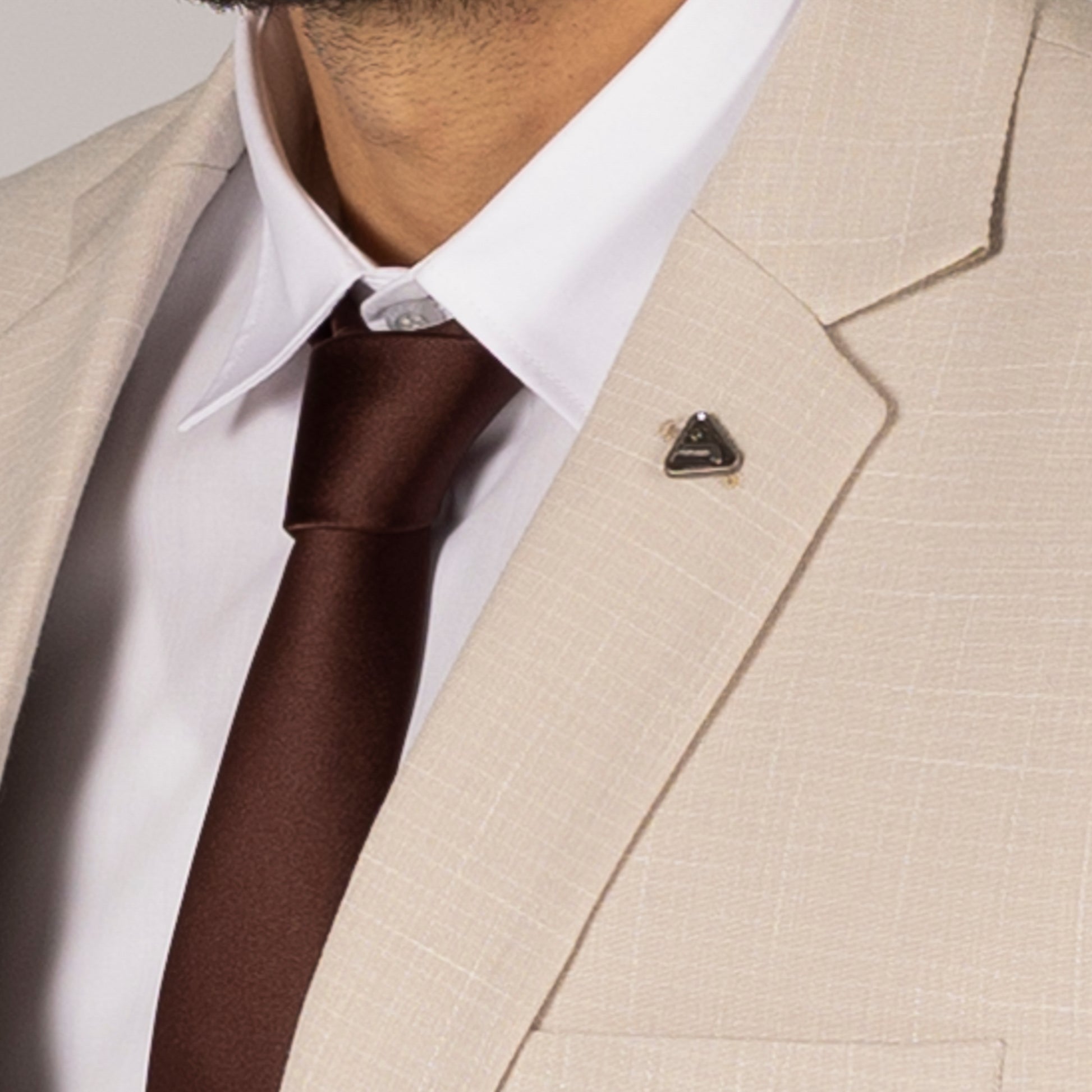 La solapa cuenta con un ojal, y los ojales están diseñados en el mismo tono del tejido, lo que agrega un toque de elegancia y sofisticación al blazer. Los botones de las mangas complementan el diseño general de la prenda.