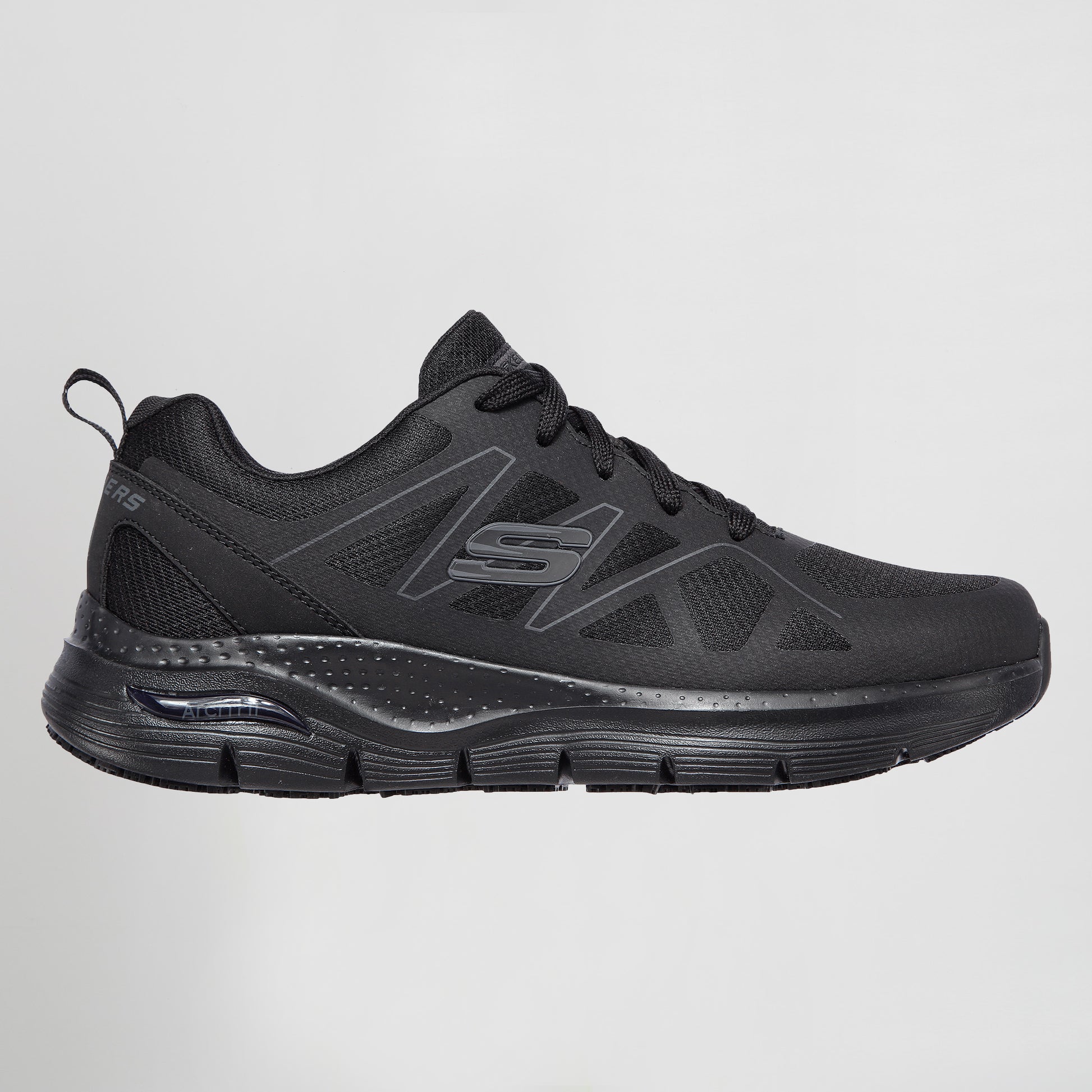 Soporte y comodiad durante largas horas. Skechers Work: Arch Fit® SR - La zapatilla de trabajo con cordones Axtell ofrece resistencia al deslizamiento y un sistema de plantilla de amortiguación Arch Fit® patentado y extraíble.