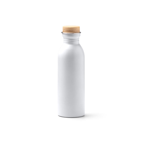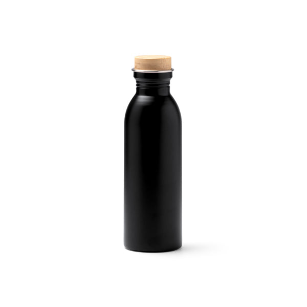 Bidón de acero inoxidable 304 reciclado de acabado mate con tapón de bambú. Capacidad de 650 ml