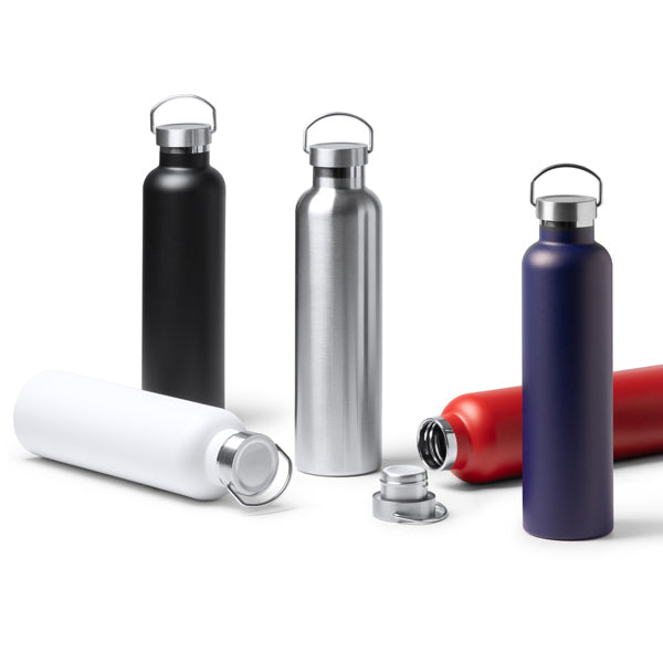 Bidón térmico de acero inoxidable 304 en acabado mate. Capacidad 1 L. Asas de transporte.