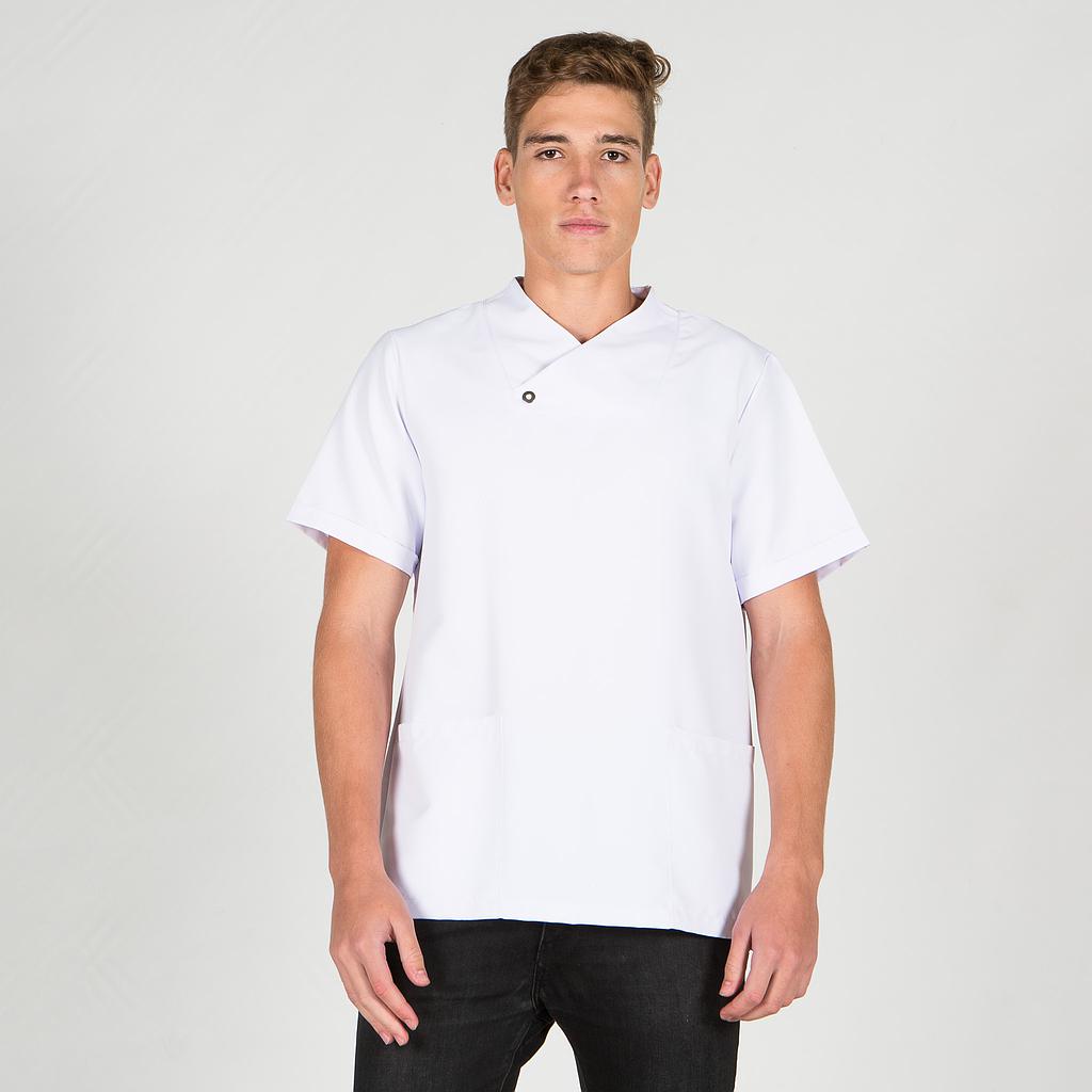 Sofisticación y funcionalidad de la Casaca Hombre Bambú, diseñada para profesionales exigentes en el ámbito de la peluquería y la estética. Esta casaca de manga corta combina estilo y comodidad, con dos bolsillos laterales y un botón de presión decorativo que añade un toque distintivo.