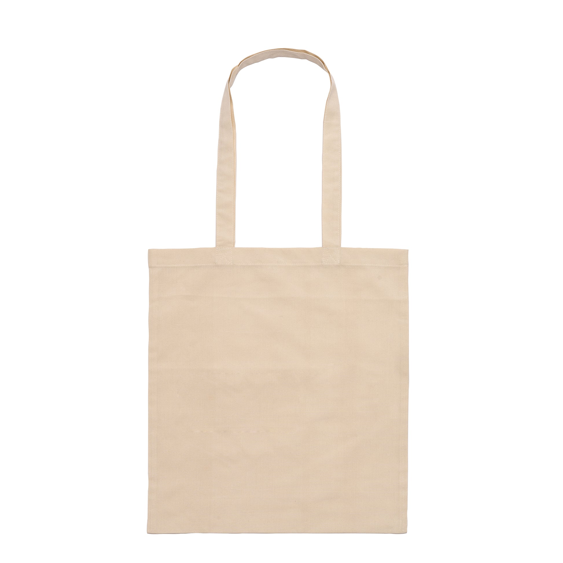 Bolsa de la compra realizada en poliéster reciclado RPET con tacto algodón 120 g/m². Asas largas de 70 cm.