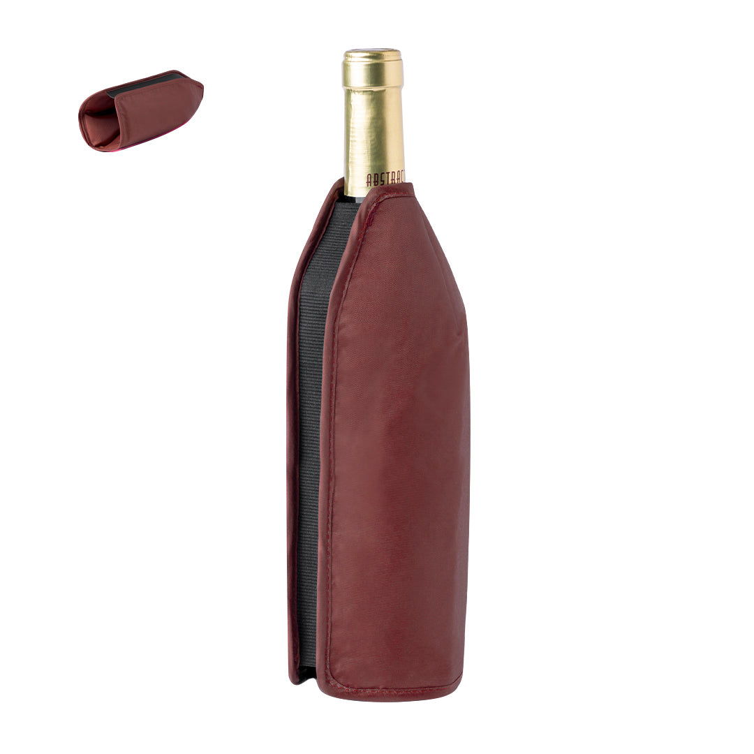 Enfriador de botellas de práctico diseño. Adaptable a cualquier tipo de botella mediante su banda elástica negra que va desde la parte superior a la inferior. Es perfecto para meter en el congelador y mantener la temperatura de la botella durante más tiempo. Disponible en variada gama de colores y presentado en una bolsa de papel reciclada.
