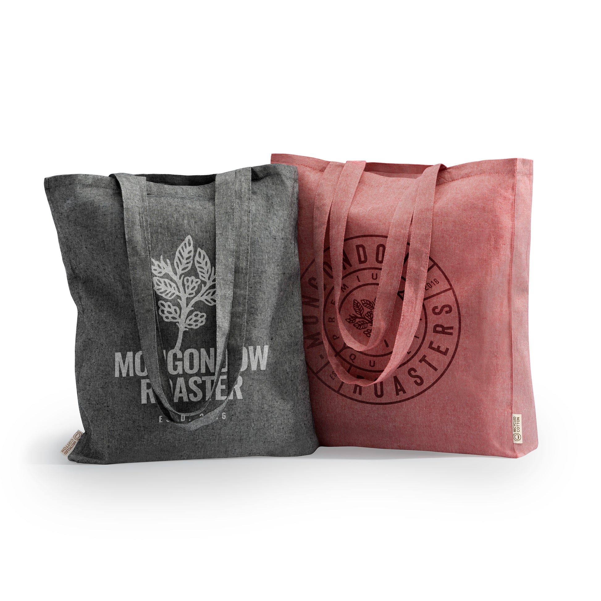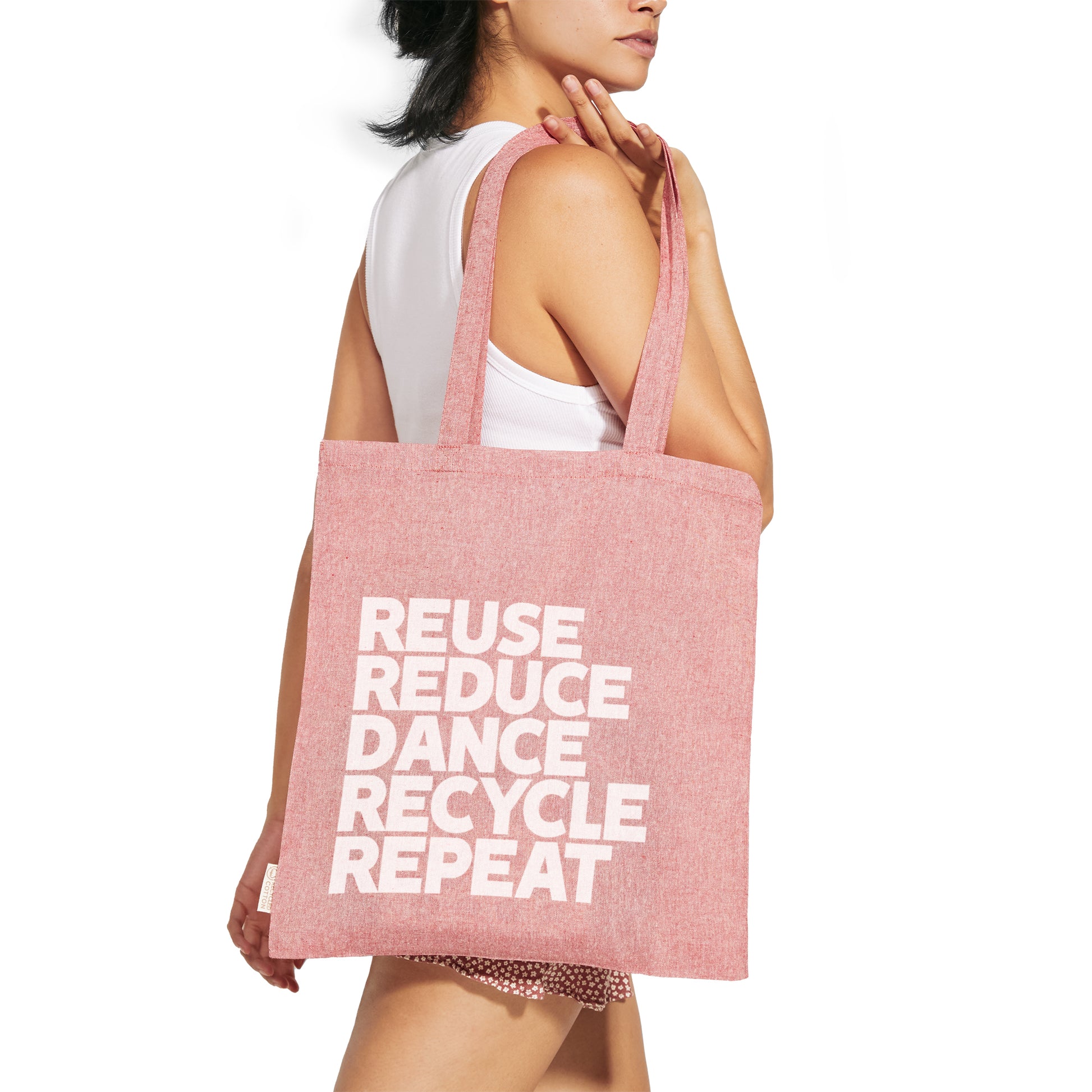 Bolsa realizada en algodón reciclado de 140 g/m² en acabado jaspeado con asas largas de 70 cm