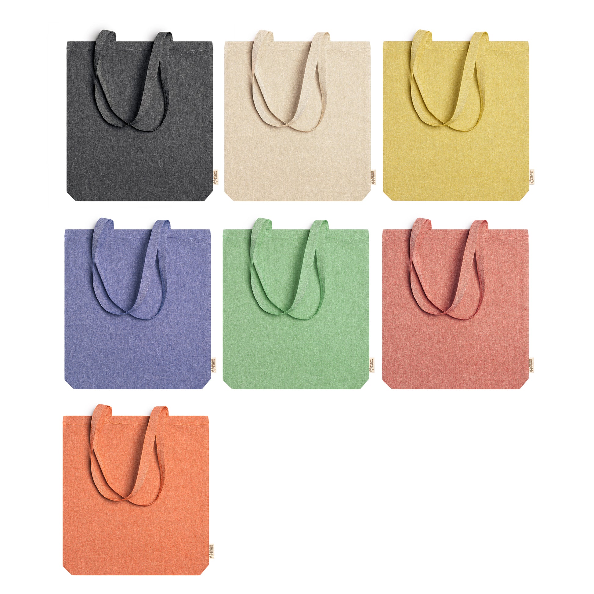 Bolsa realizada en algodón reciclado de 140 g/m² en acabado jaspeado con asas largas de 70 cm.76-17R