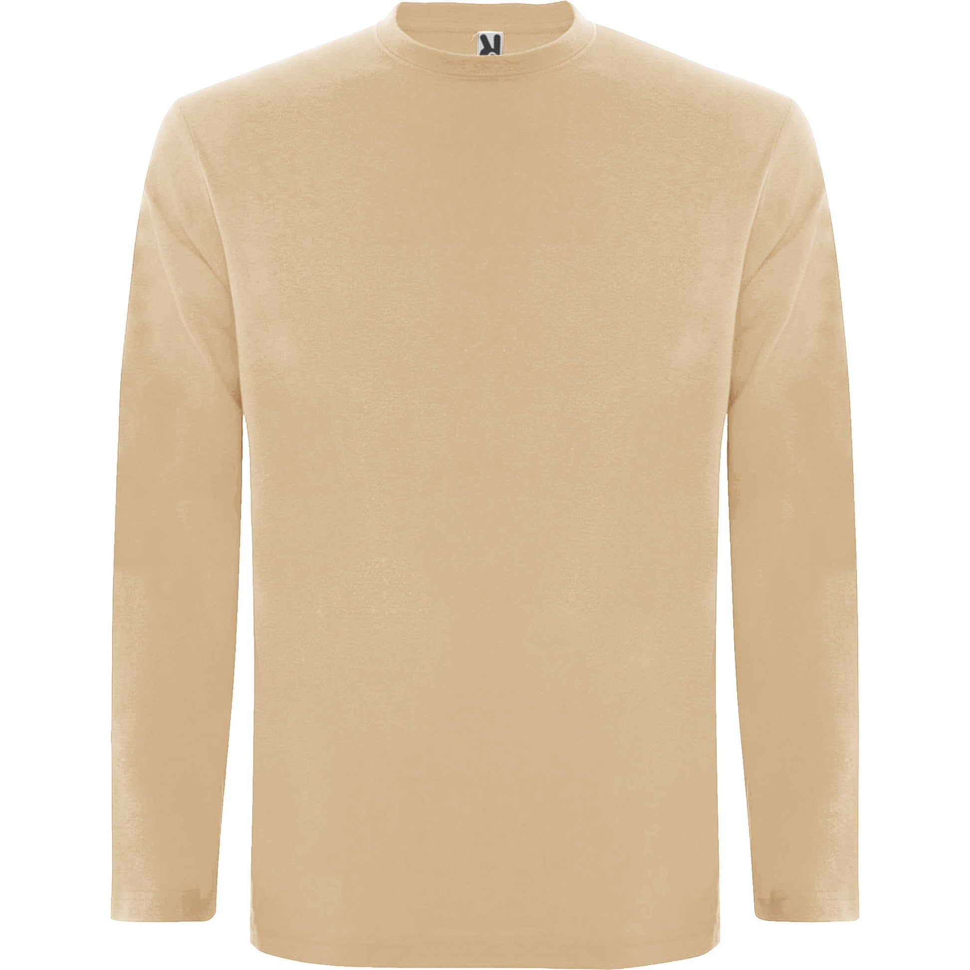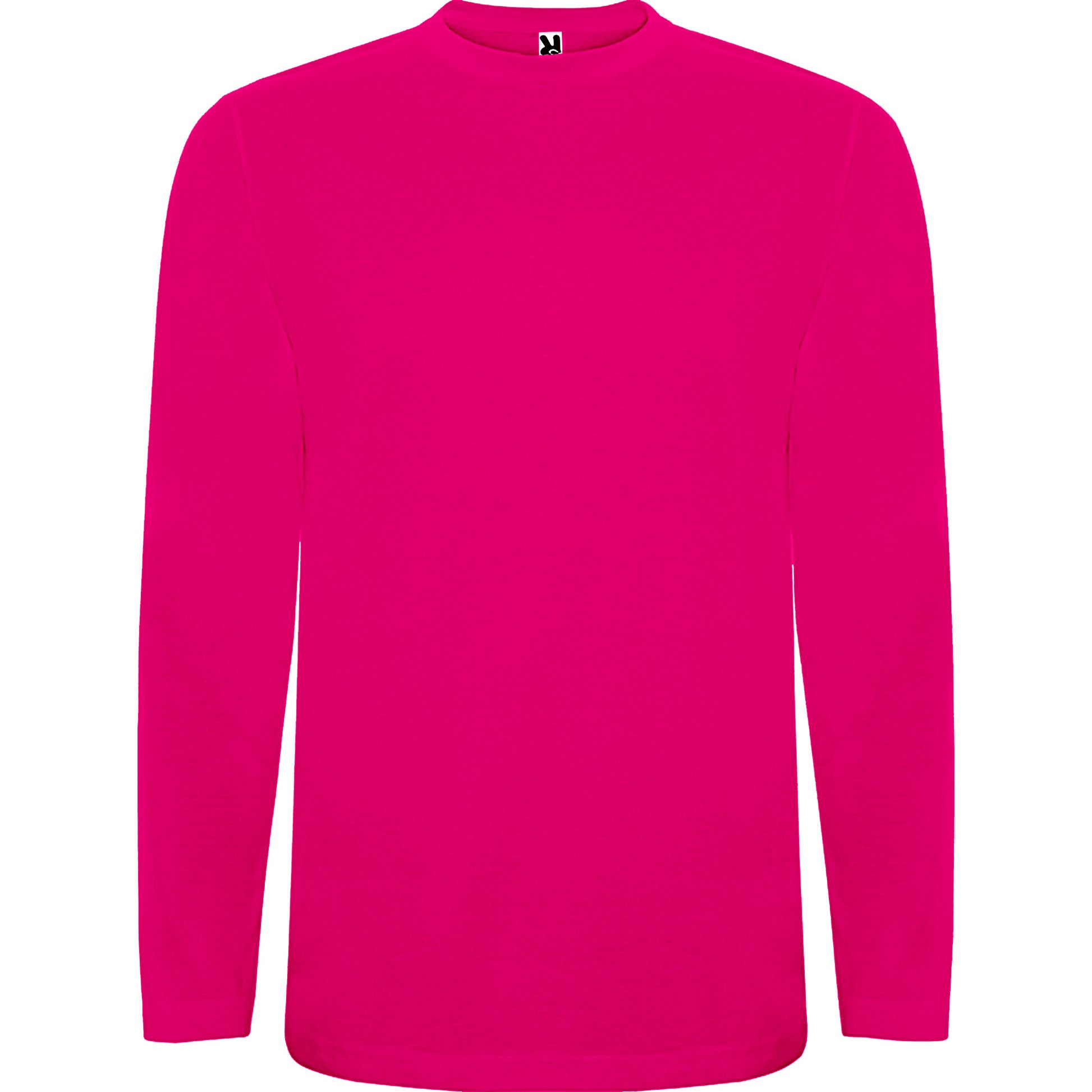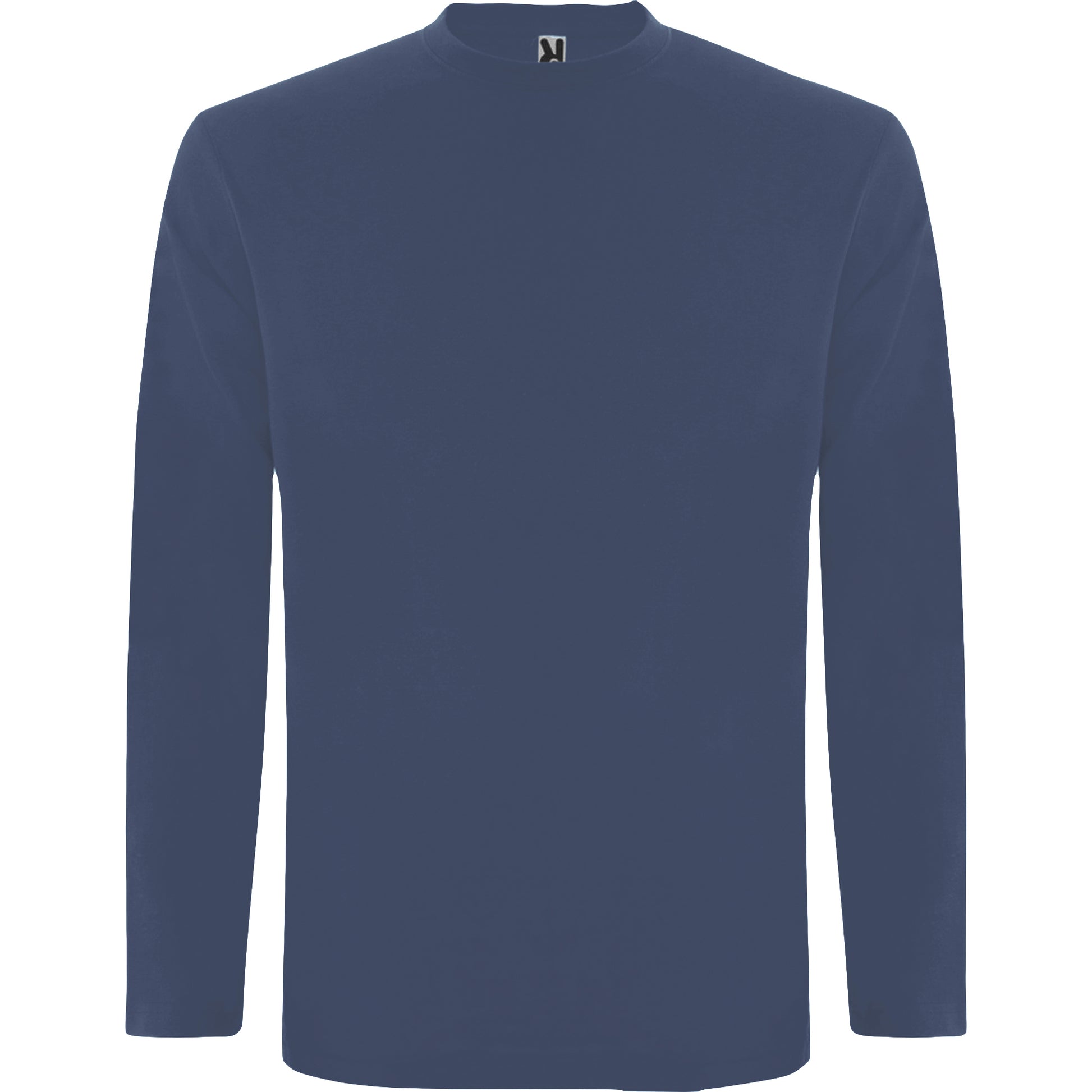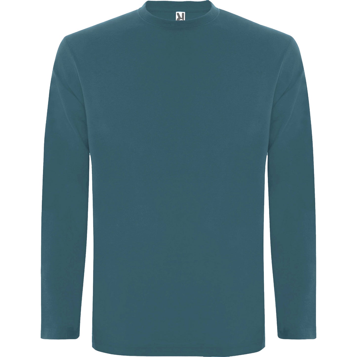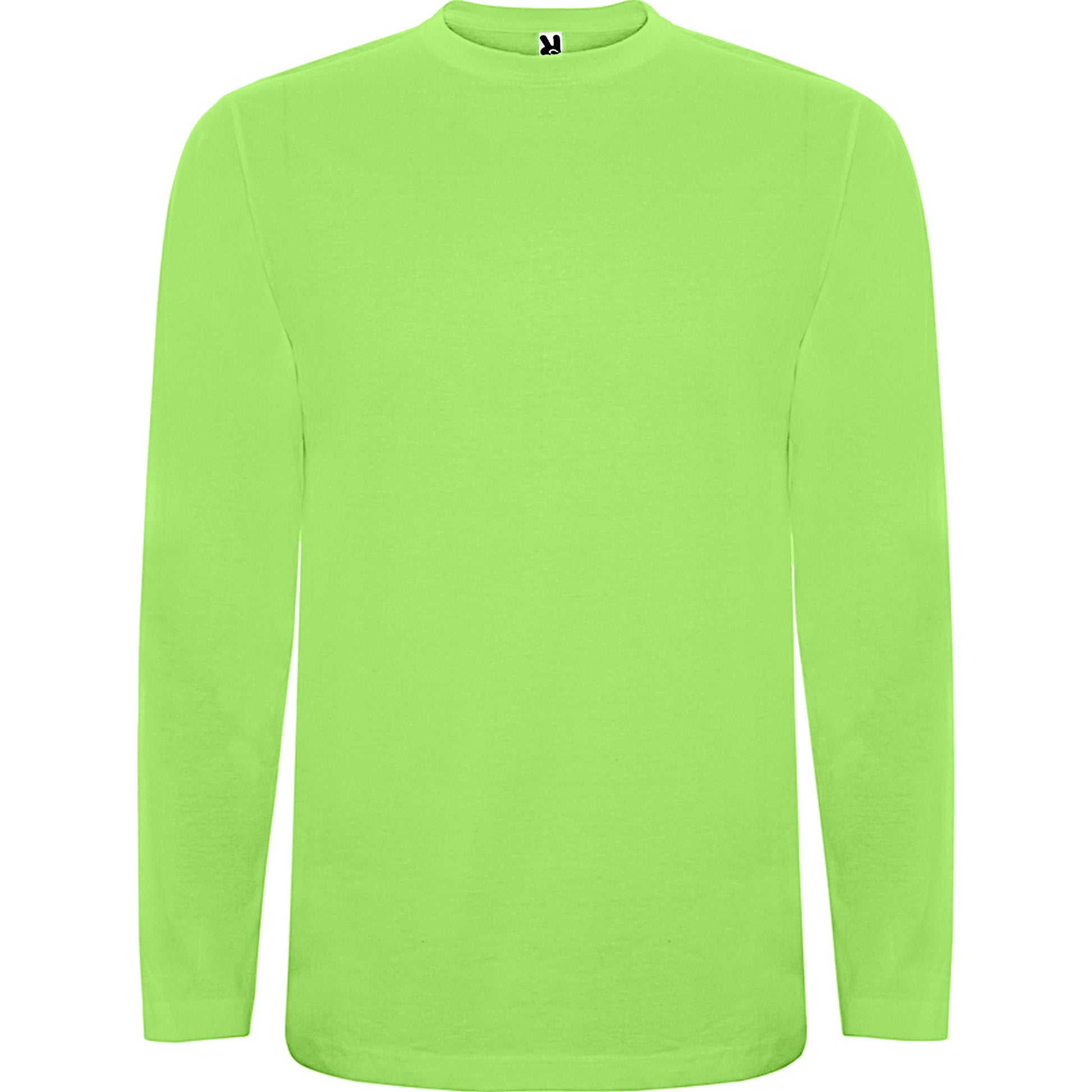 Camiseta de manga larga, tejido tubular y cuello redondo de 4 capas. Cubrecosturas de refuerzo en cuello y hombro. Sin puños.