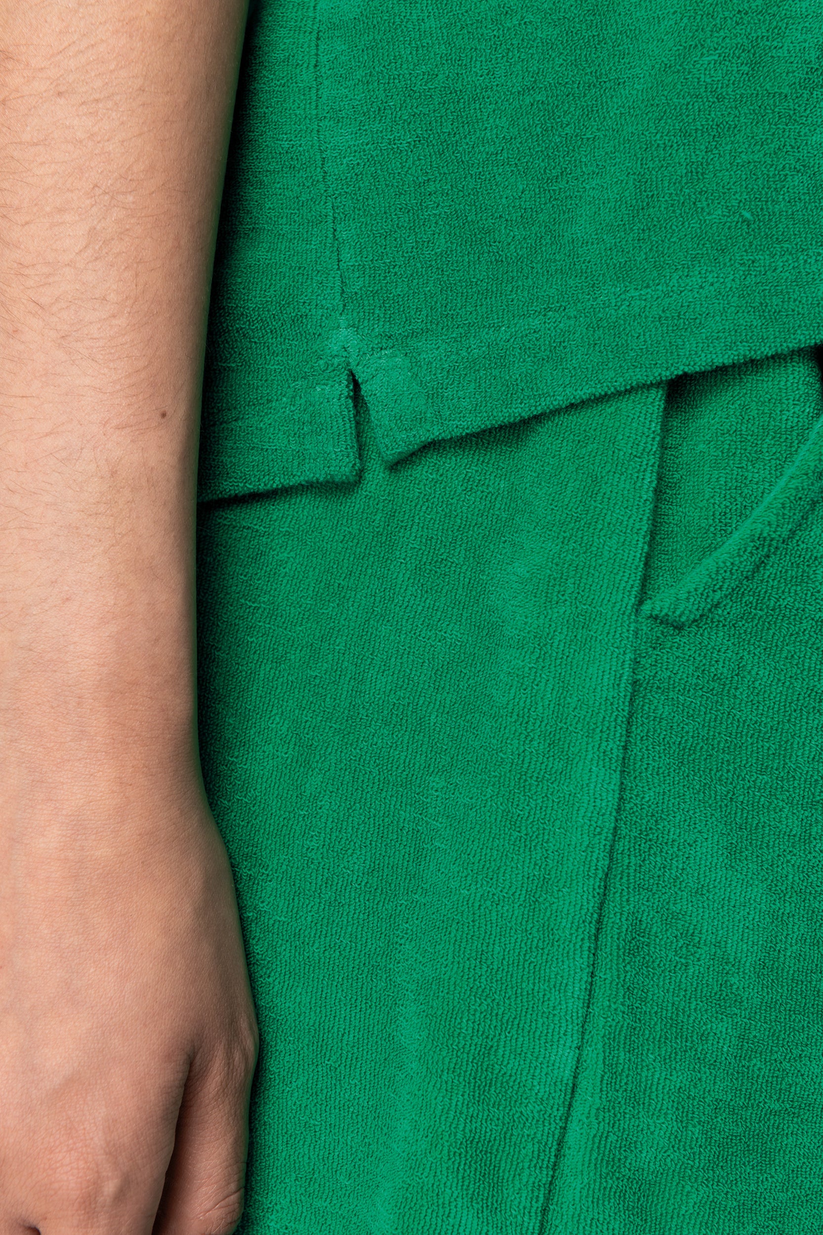 80% algodón orgánico / 20% poliéster reciclado postconsumo. Fabricado en Portugal. Algodón peinado. Material tipo rizo. Corte oversize. Costuras laterales. Lavado con enzimas. Canalé 1 x 1 en el cuello. Tira cubrecosturas del material principal en la parte interior del cuello. Media luna en la parte posterior del cuello. Aberturas laterales con acabado en forma de espiga en la parte interior. Dobladillo con doble pespunte en el bajo de las mangas y el bajo de la prenda.