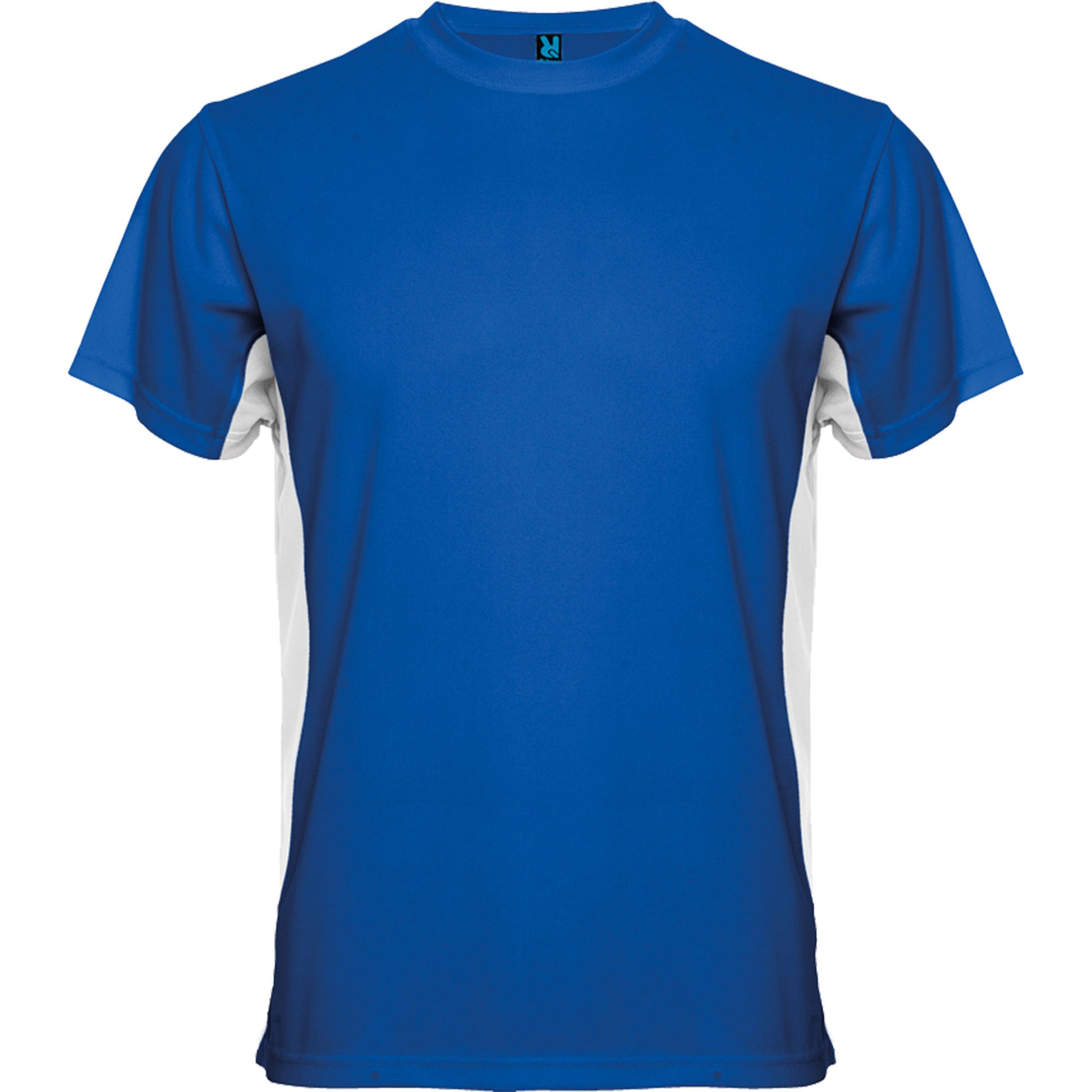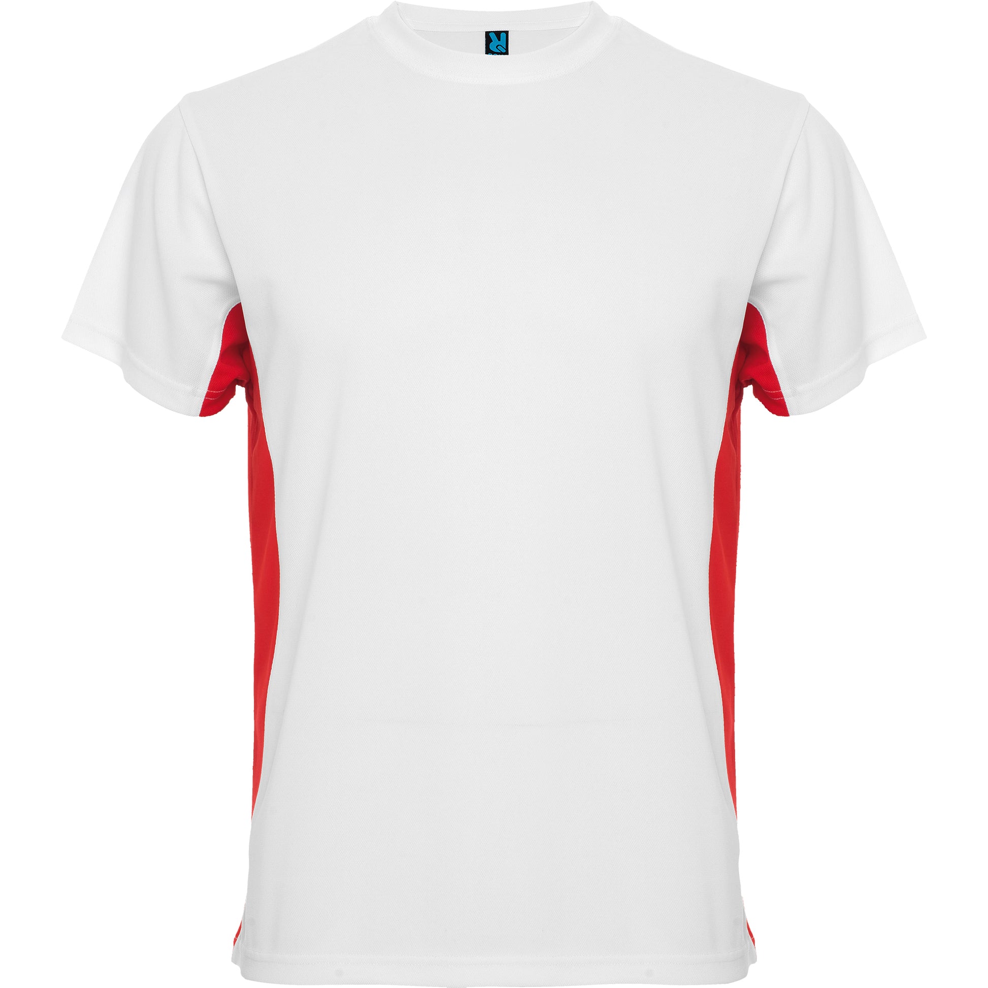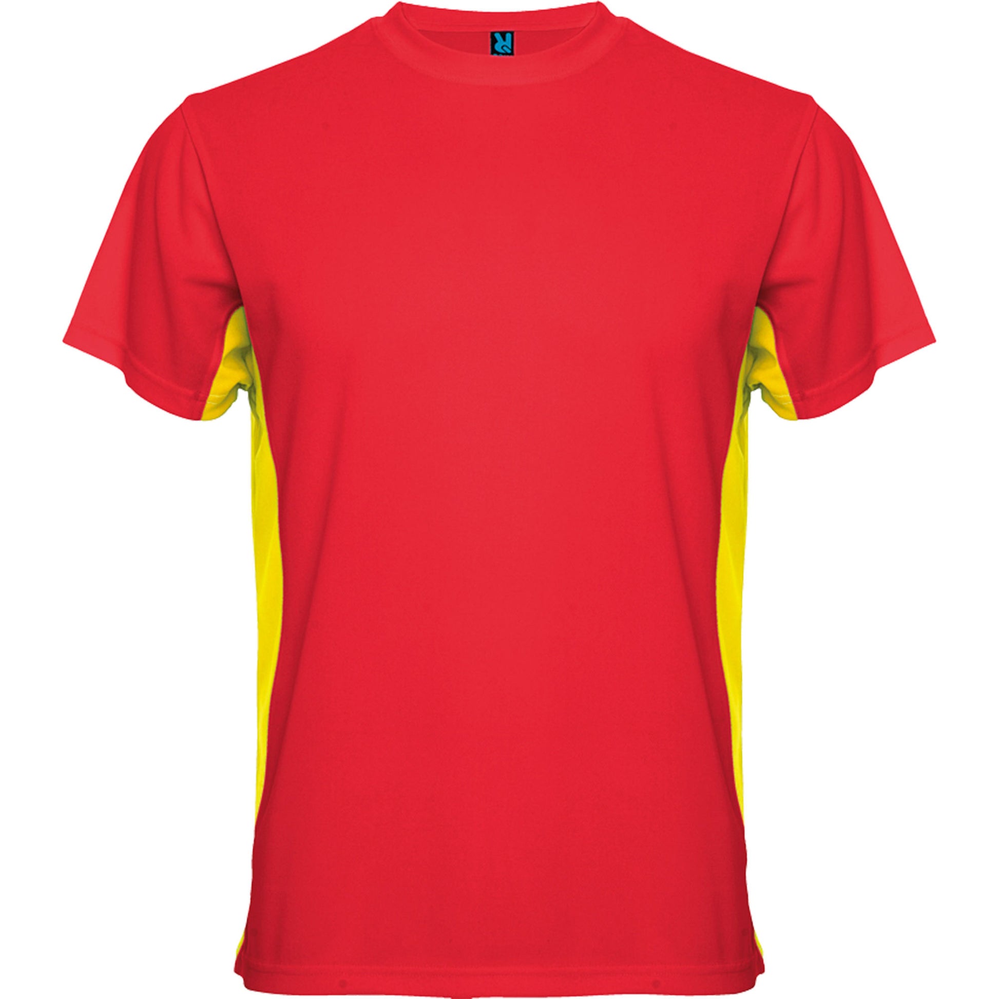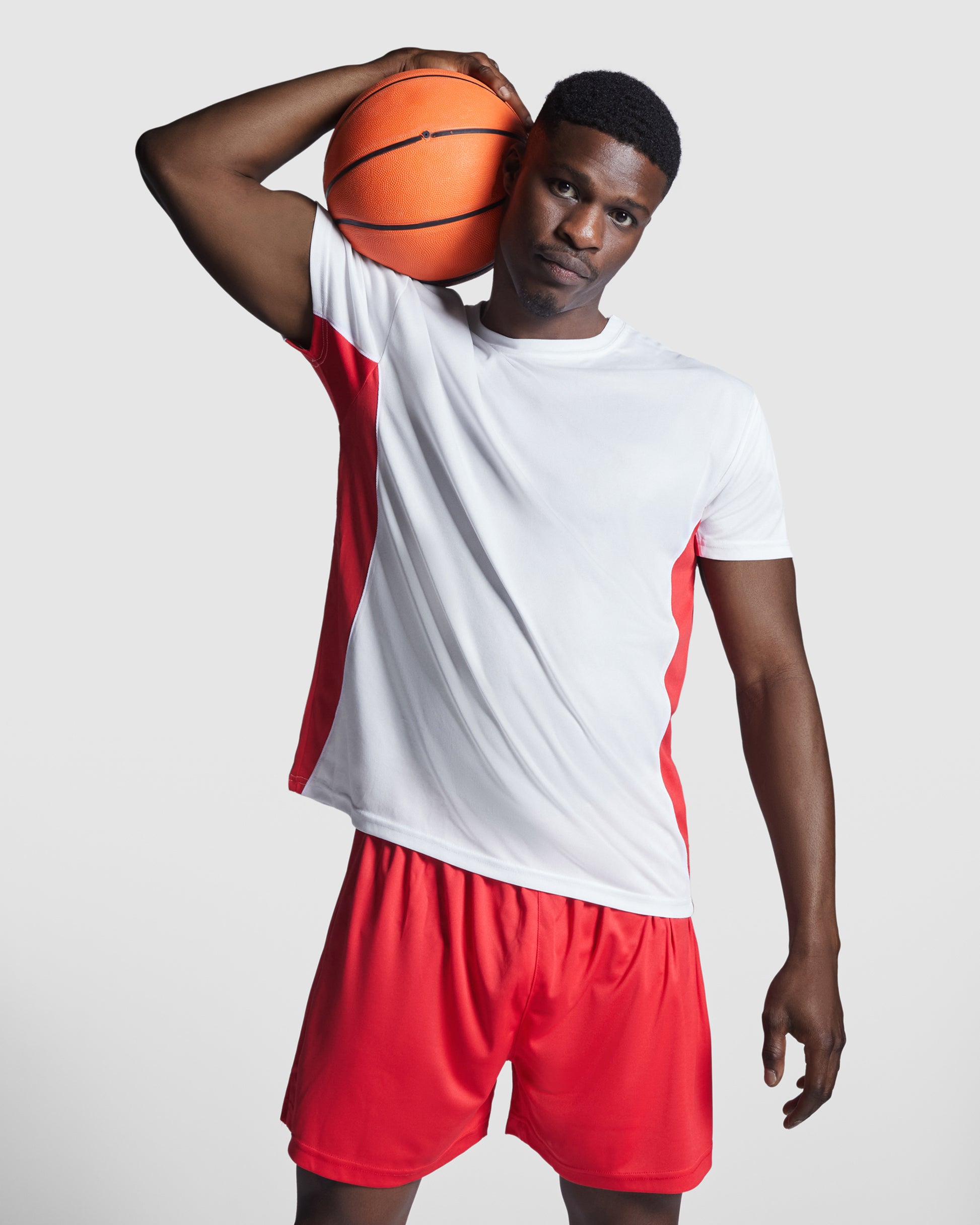 Camiseta técnica de manga corta transpirable. Cuello redondo con cubre costuras a tono. Tejido de fácil secado. Combinación de colores, paneles laterales a contraste.