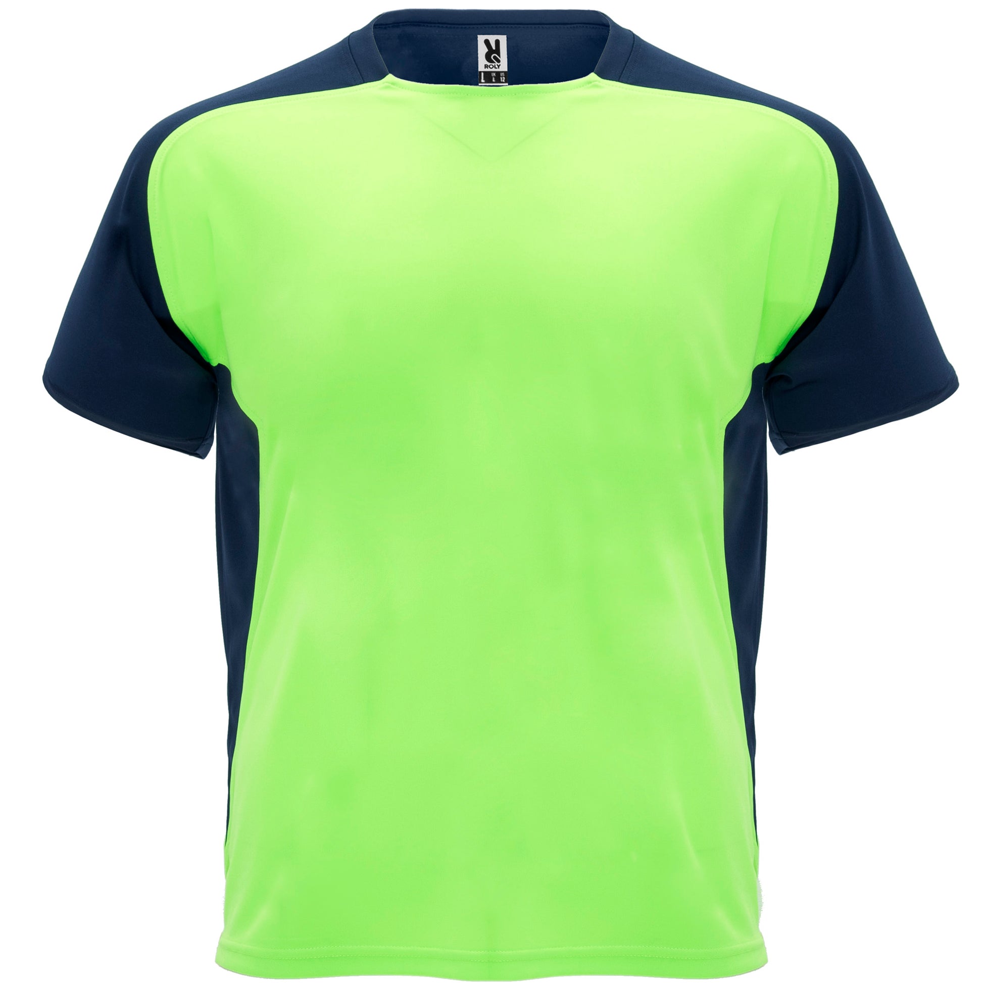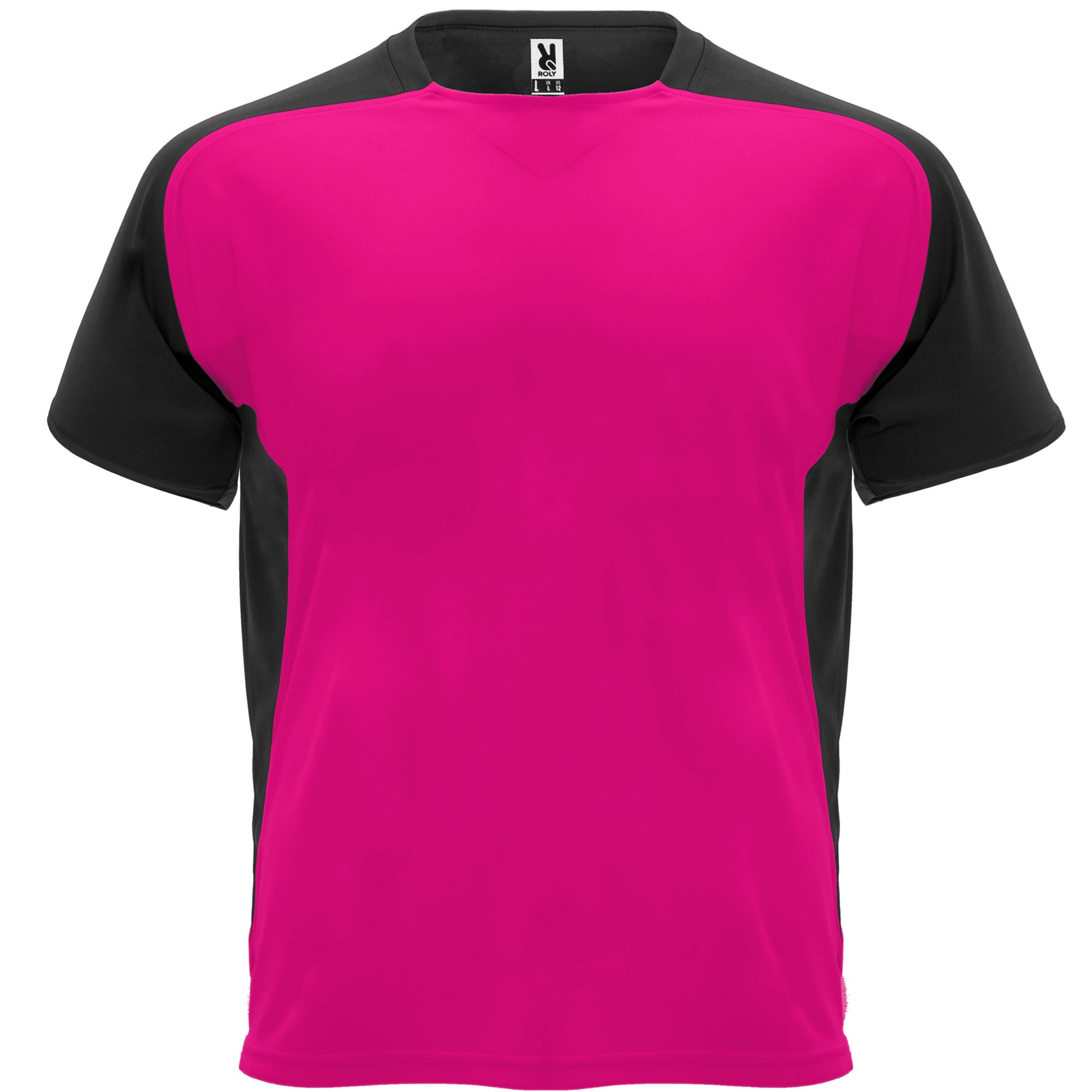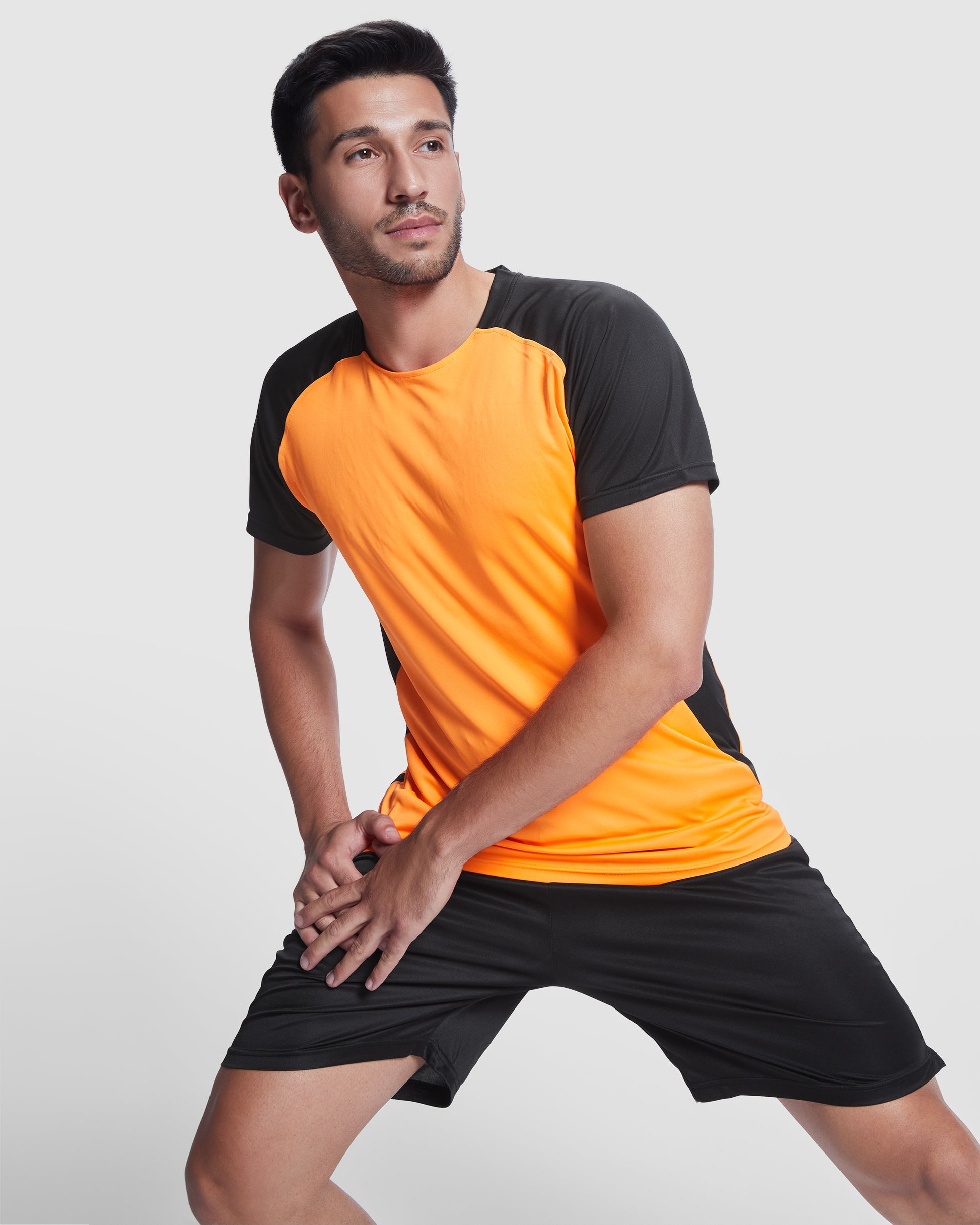 Camiseta técnica de manga ranglán transpirable. Cuello redondo con cubre costuras a tono. Tejido suave, ligero y fácil secado. Mangas y paneles laterales a contraste.