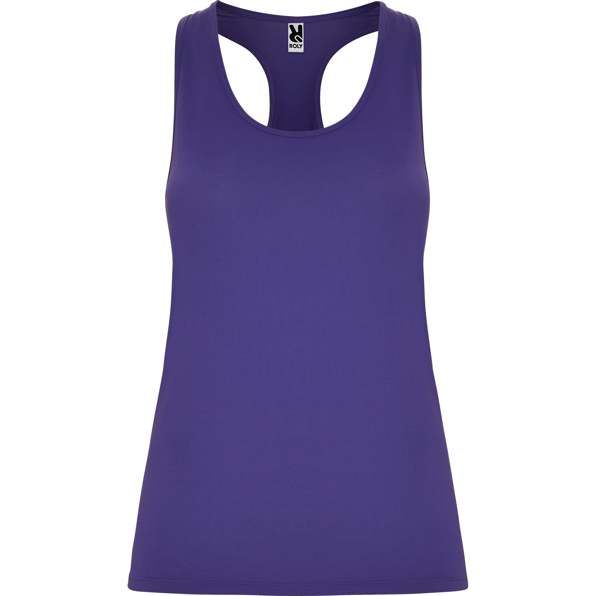 Camiseta técnica de tirantes entallada transpirable. Espalda nadadora con escote y sisas ribeteado. Tejido poliéster tacto algodón de secado fácil. Corte entallado.