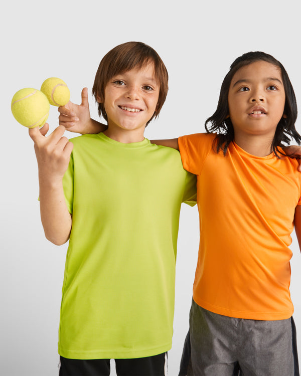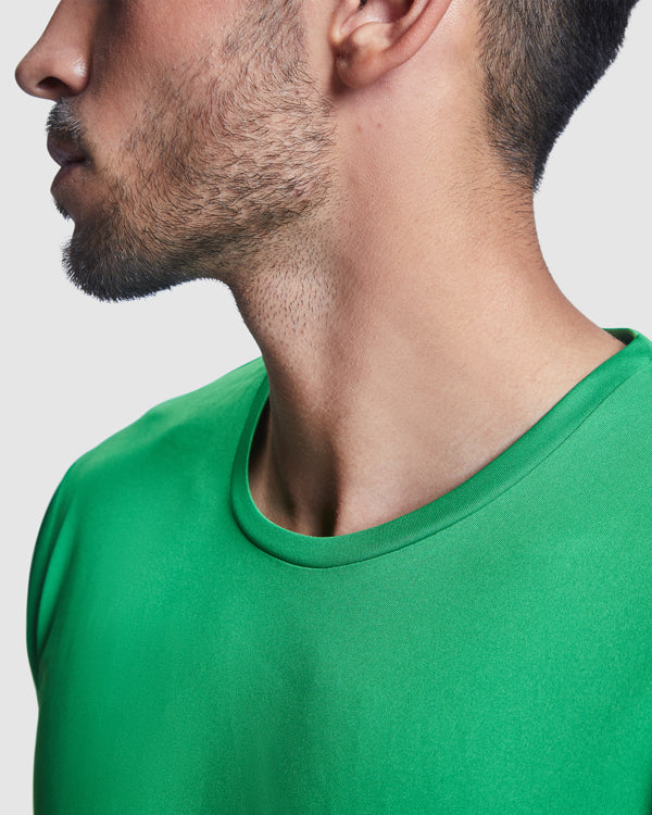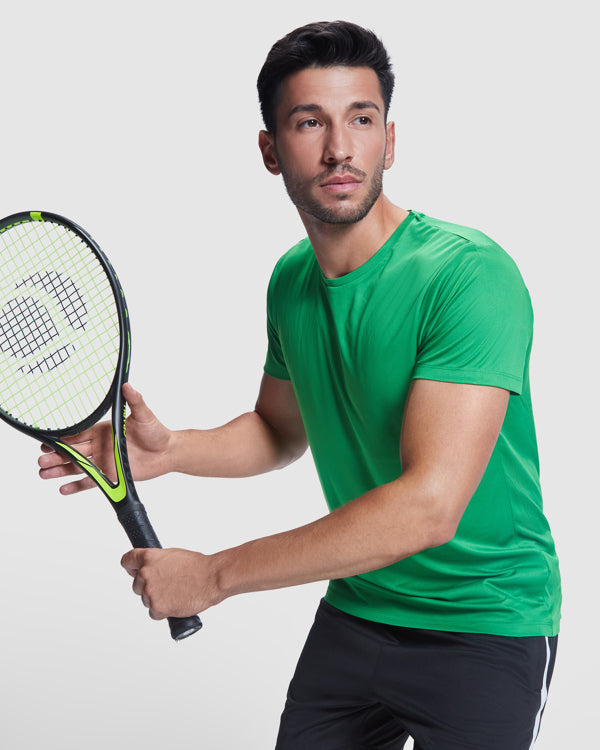 Camiseta técnica de manga corta traspirable. Cuello redondo con cubrecosturas a tono.