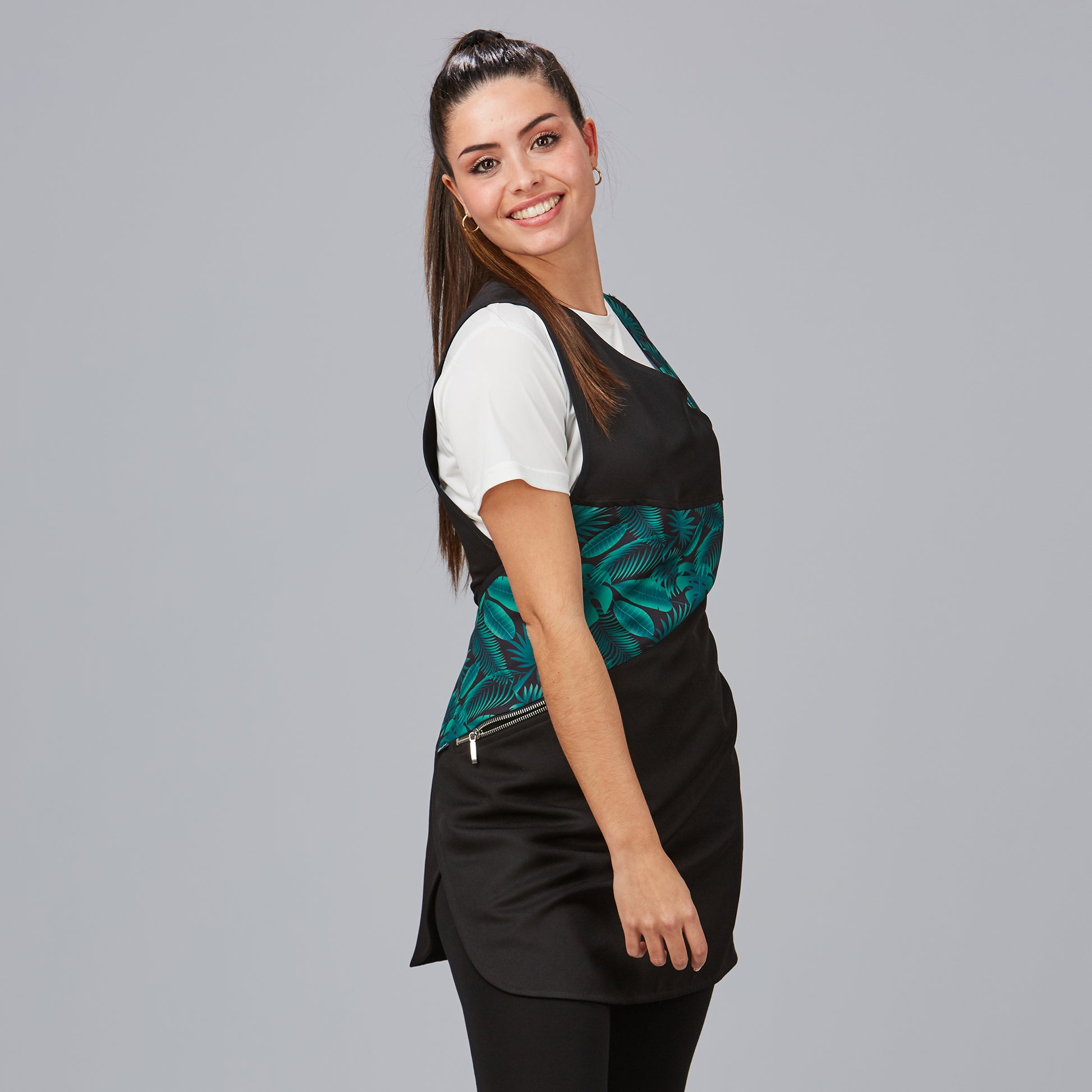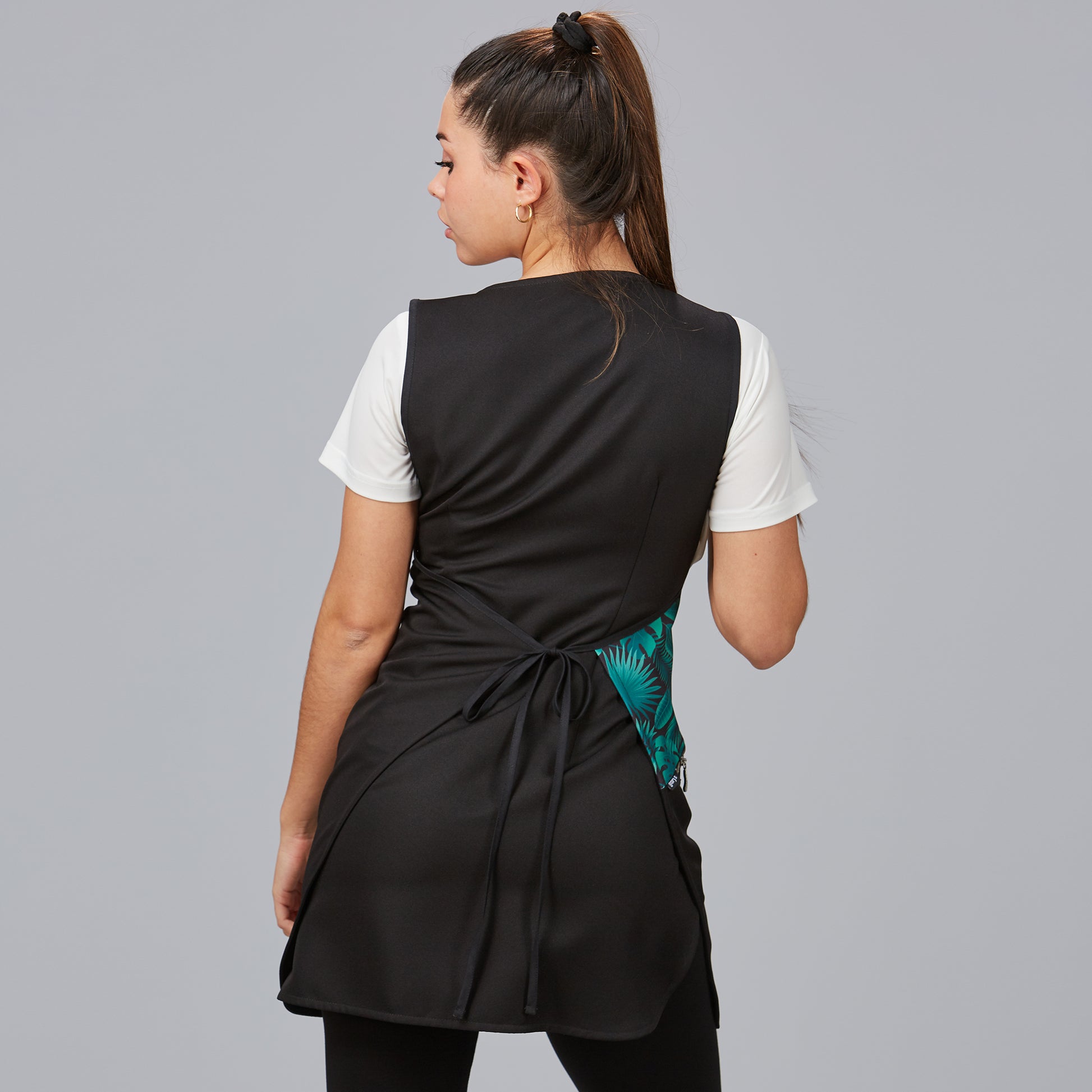 El diseño estampado y el uso del color negro te permiten sobresalir en la industria de la belleza, proyectando una imagen de profesionalismo y vanguardia.