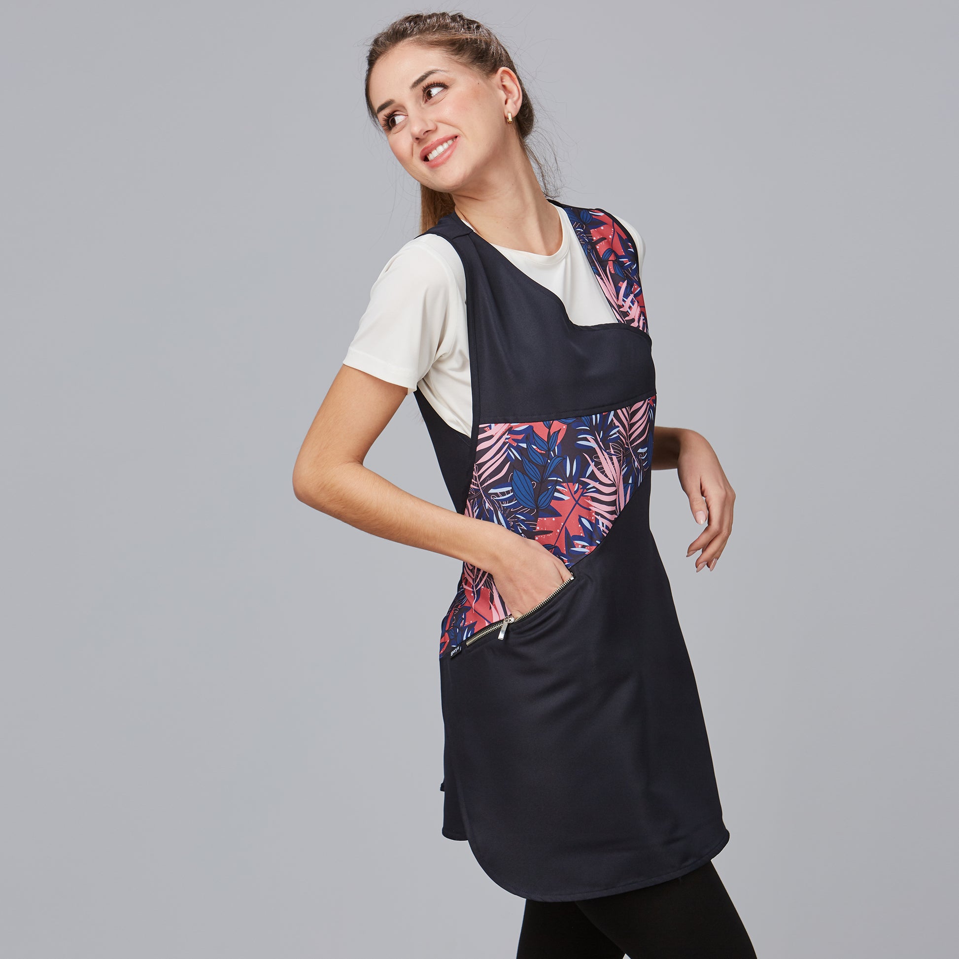 La casulla cremallera VERBENA está equipada con un bolsillo interior lateral, proporcionando espacio adicional para guardar herramientas y accesorios esenciales durante tu jornada laboral.