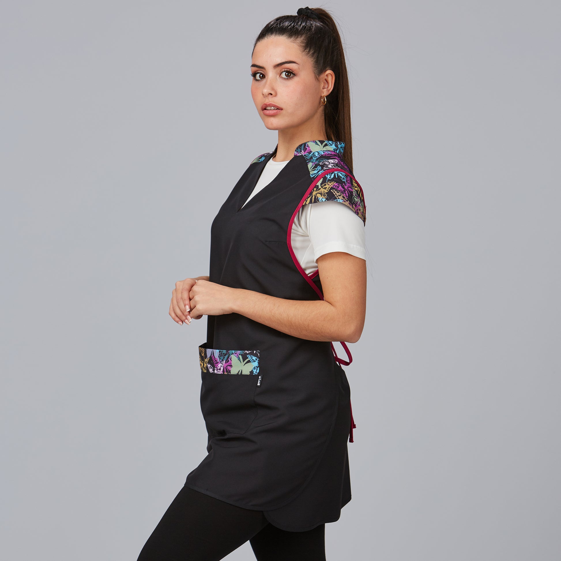El diseño estilizado y el estampado original de esta casulla te permiten destacar en la industria de la belleza, proyectando una imagen de profesionalismo y elegancia.
