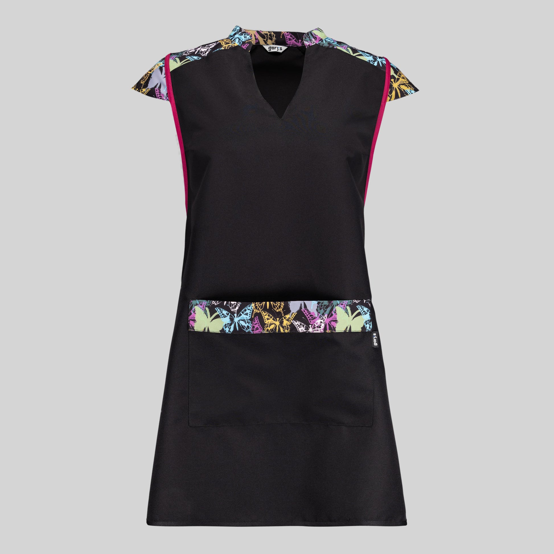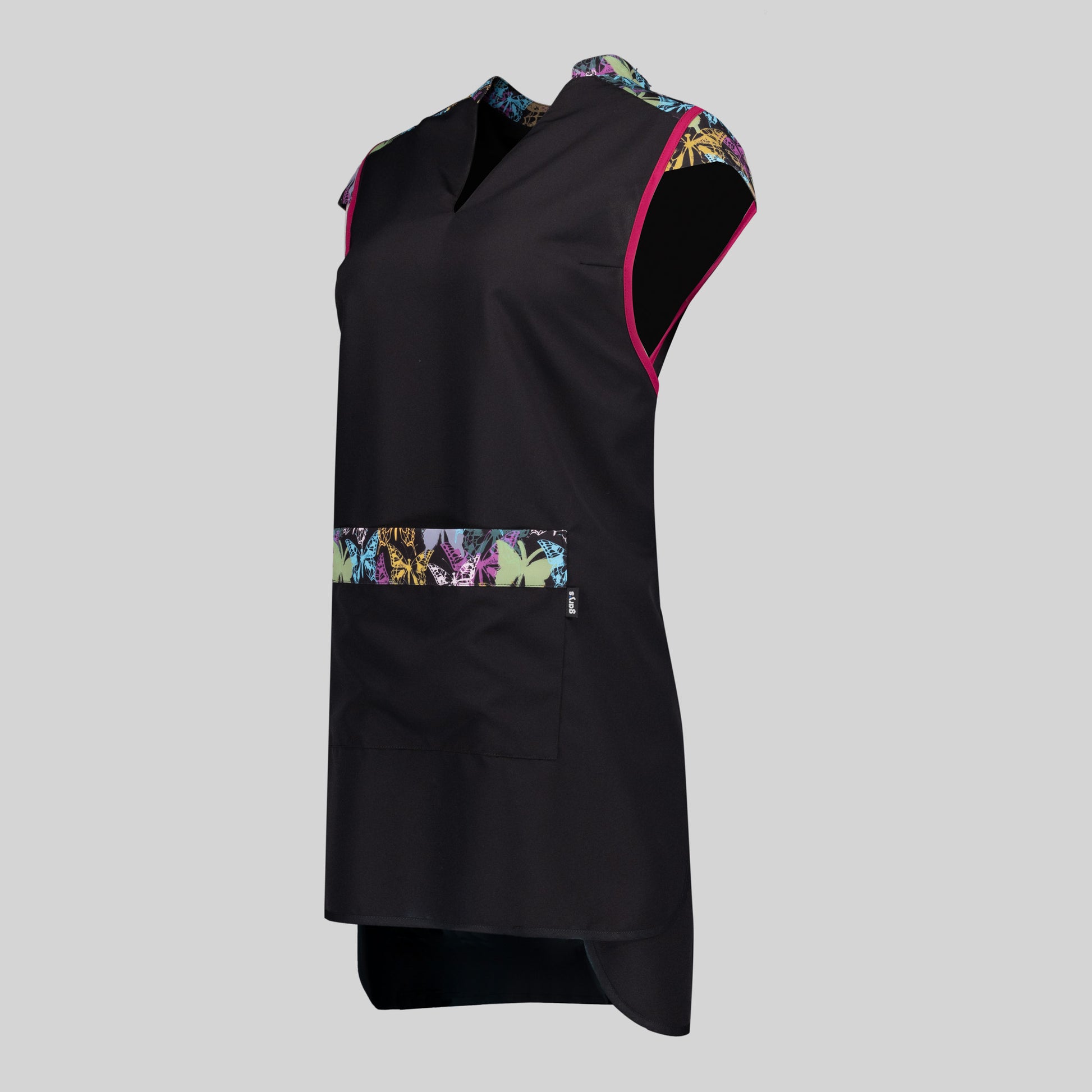 Esta casulla con manga corta en color negro se combina con un estampado único, agregando un toque de estilo y distinción a tu uniforme.