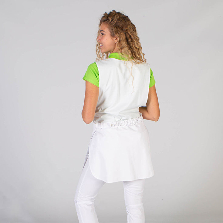 La casulla LUCIA se destaca por su diseño doble que brinda una protección adicional a tu ropa. Con un bolsillo interior delantero, podrás llevar contigo utensilios esenciales y herramientas de trabajo de forma conveniente.