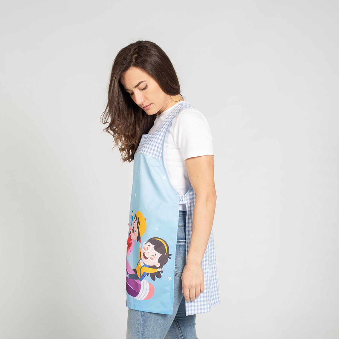 La casulla NIÑOS LÁPIZ presenta un diseño divertido que incluye imágenes de lápices de colores, creando un ambiente alegre y estimulante en el entorno escolar. Además, cuenta con un espacio para personalizar en el pecho, lo que permite añadir el nombre o algún detalle especial, haciendo que cada casulla sea única.