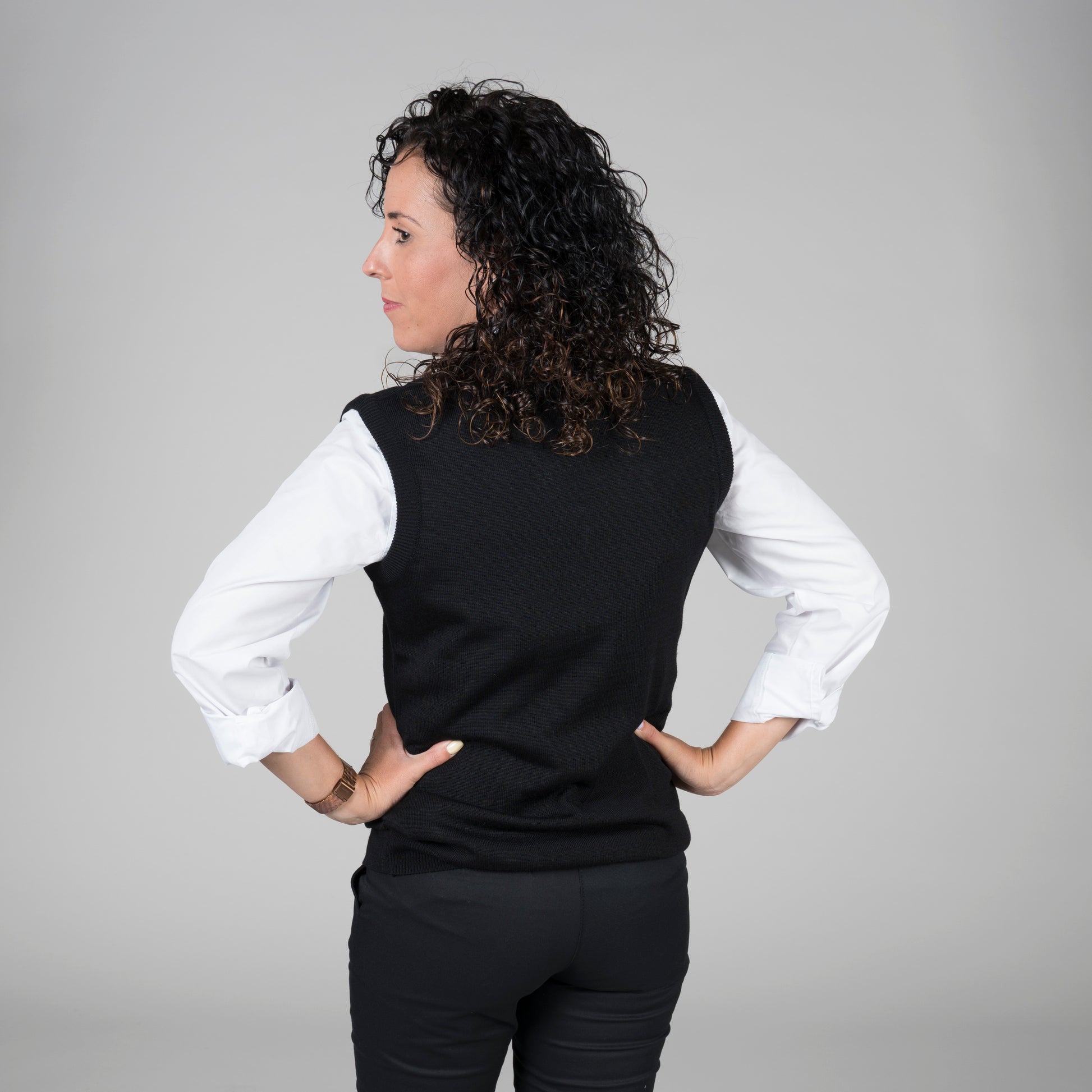 Sabemos que su trabajo puede involucrar largas horas de actividad constante, y es por eso que hemos elegido una mezcla de punto acrílico y lana merino para la confección de este chaleco. Esto garantiza una sensación de comodidad insuperable y le mantendrá fresca y confiada durante todo el día.
