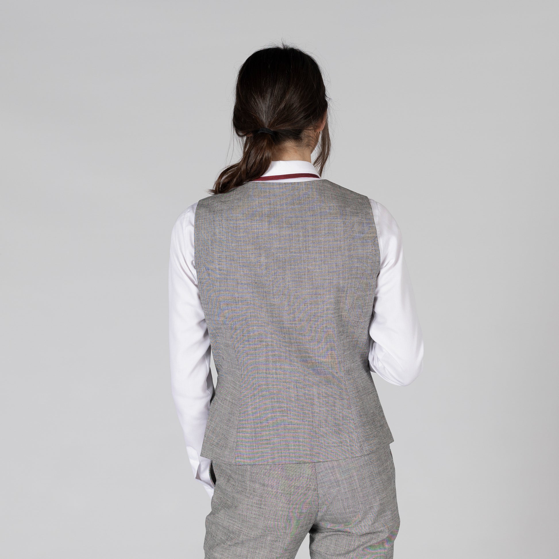 El chaleco está diseñado con atención a los detalles, incluyendo un cierre delantero derecho sobre izquierdo, pespunte de carga interior en el escote, cantos laterales y sisas, y una cola de ratón en el canto izquierdo. Estos detalles no solo añaden un toque de elegancia, sino que también aseguran la durabilidad de la prenda.