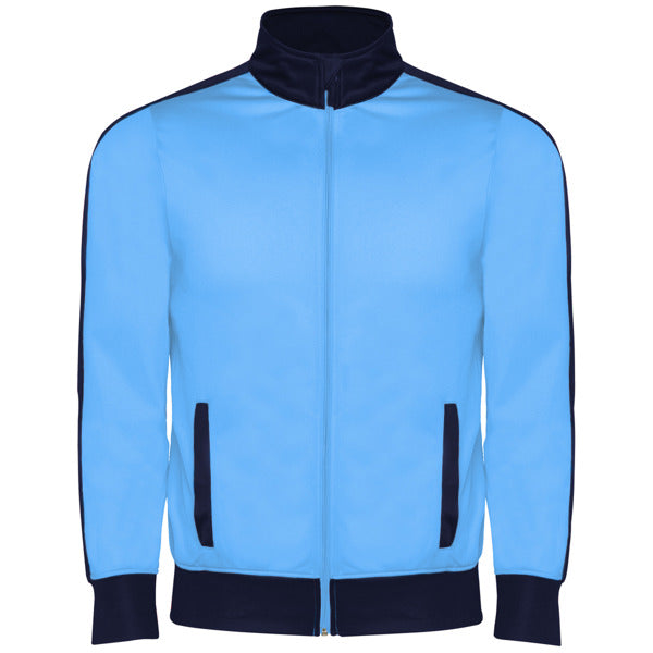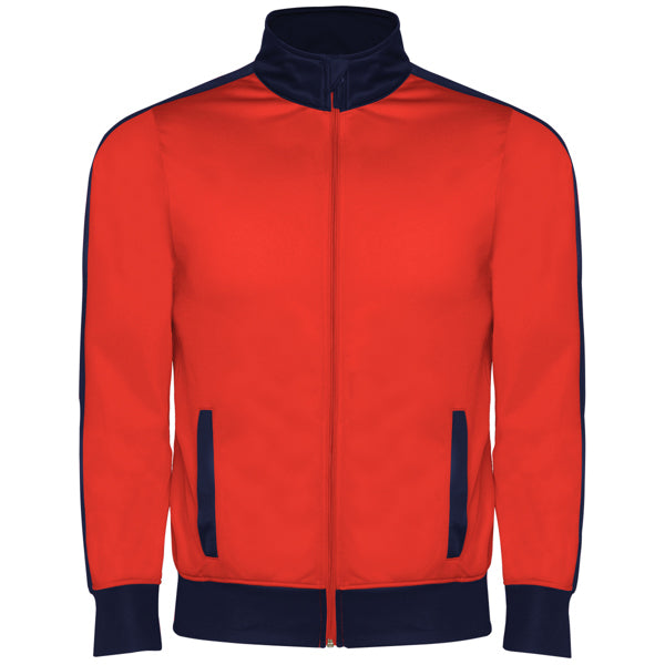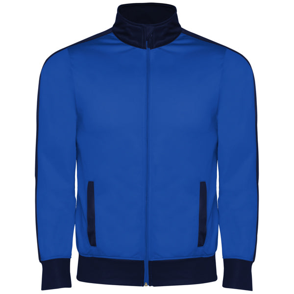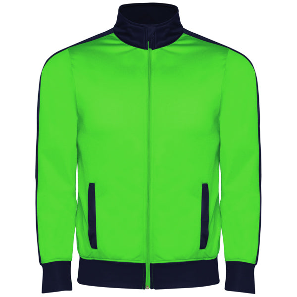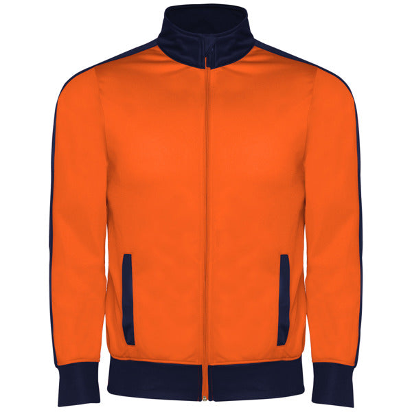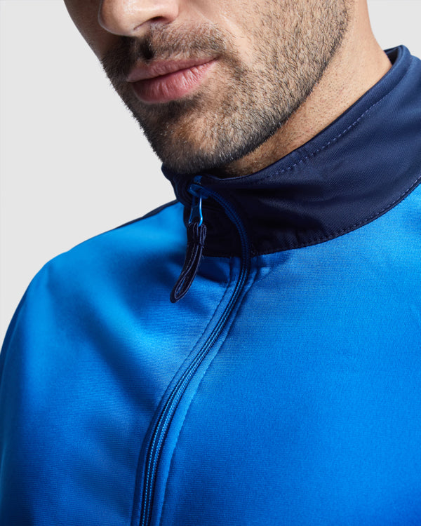 Chándal combinado de chaqueta y pantalón. ·Cuello alto con protector de cremallera. ·Bolsillos frontales con vivo en contraste. ·Puños y cintura en contraste en canalé 1x1. ·Cremallera central con cubrecosturas interior. ·Pantalón con cinturilla elástica y cordón ajustable con pespunte de seguridad y dos bolsillos laterales con vivo ancho. ·Tejido interior aterciopelado muy confortable. ·Cremallera en el bajo del pantalón.