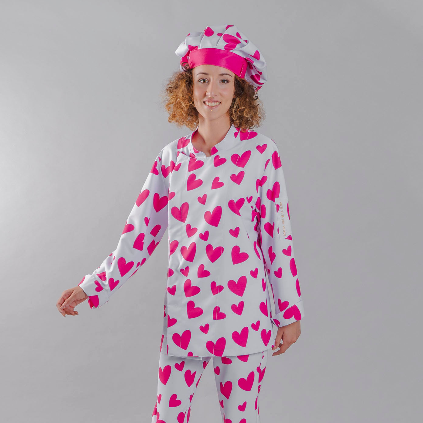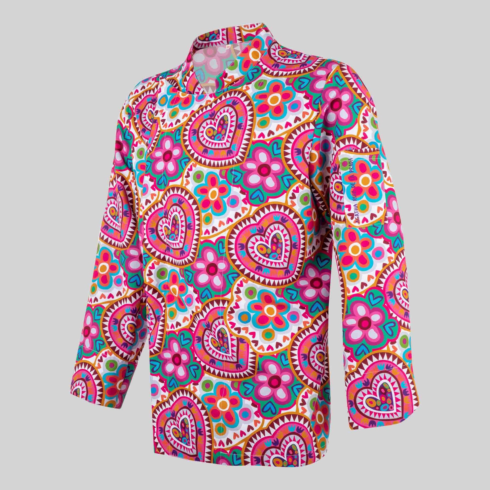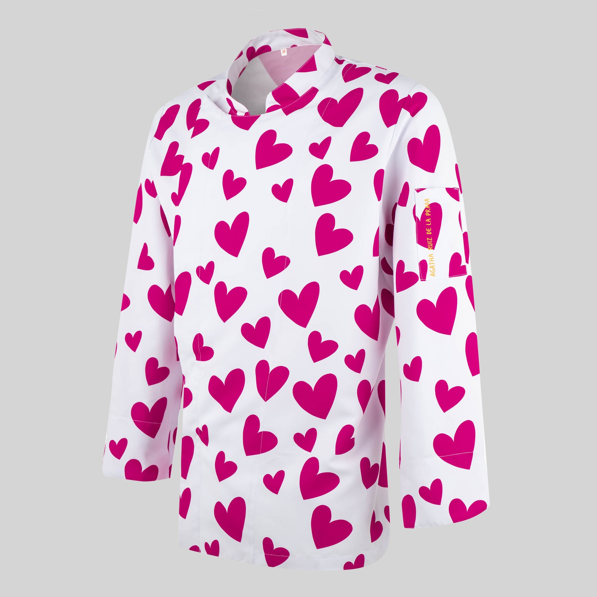 La chaqueta está disponible en dos estampados únicos: "Cuore Rosa" y "Mexicano", lo que te permite destacar en la cocina mientras mantienes una apariencia profesional.