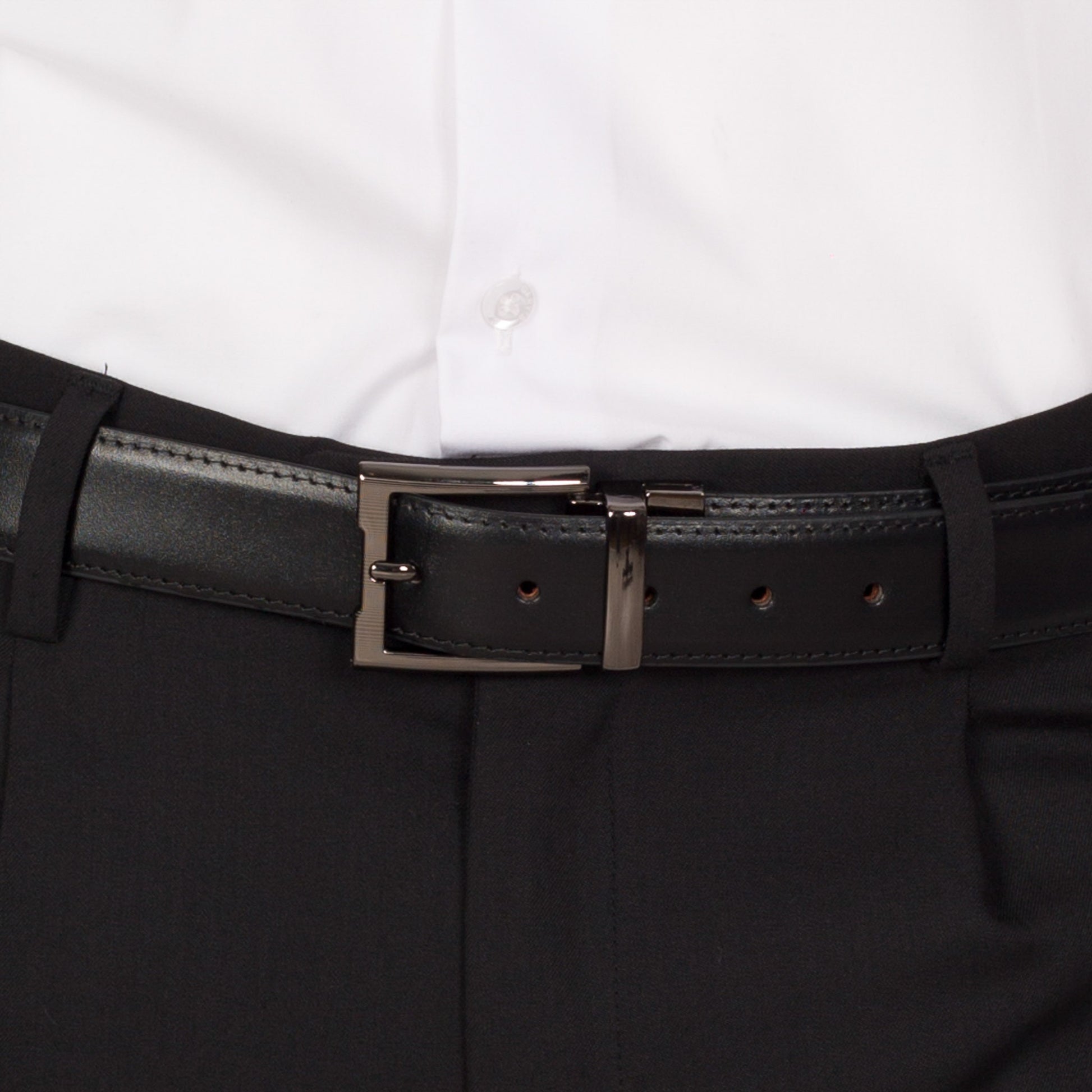 Este cinturón presenta un diseño reversible que te permite alternar entre piel negra y piel marrón con solo girarlo, ofreciéndote dos opciones de estilo en uno.